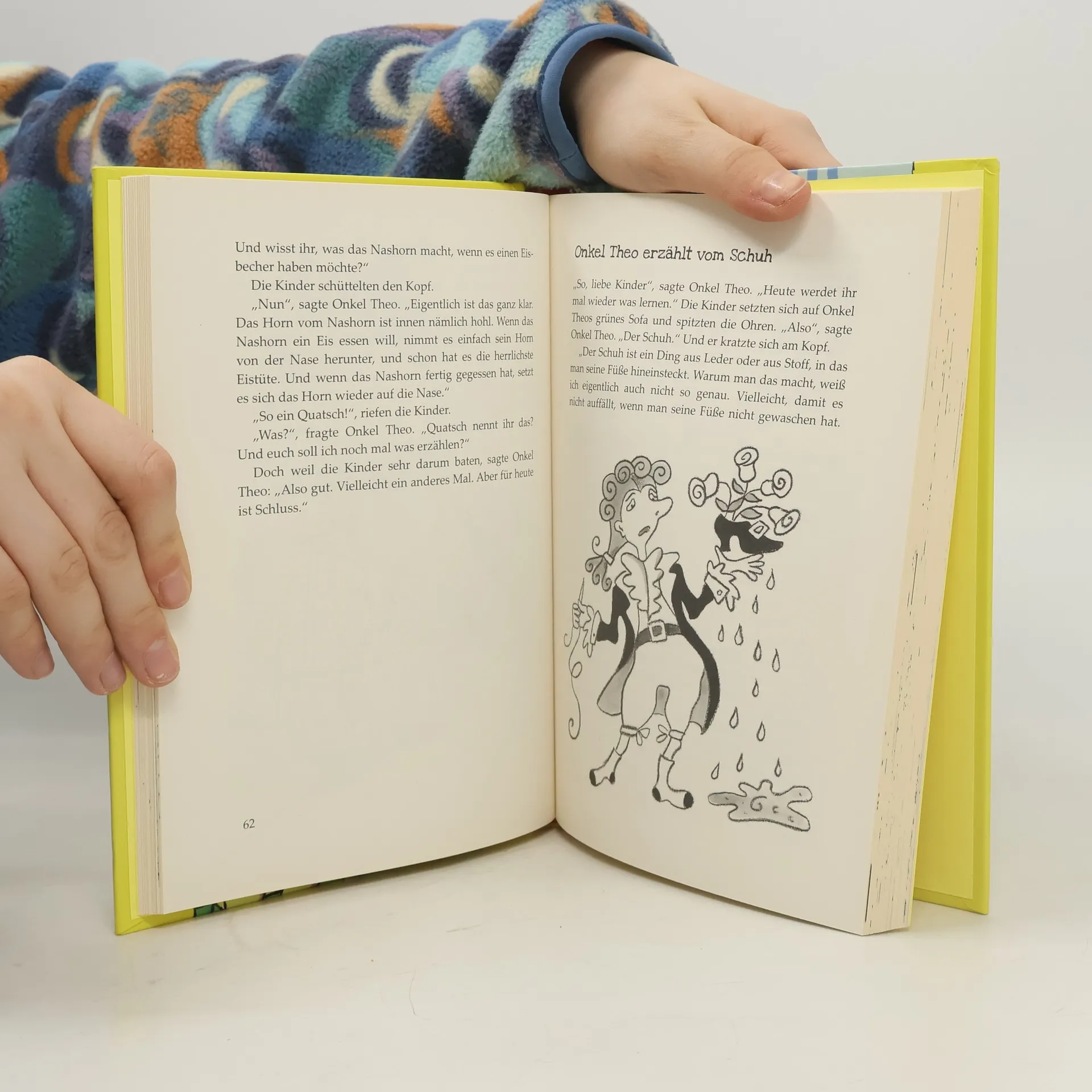 »So ein Quatsch!«, rufen die Kinder lachend, wenn Onkel Theo mal wieder eine seiner berühmten Lügengeschichten erzählt. Doch der lässt sich nicht beirren und erfindet eine verrückte Geschichte nach der anderen. Er erklärt, warum die Banane krumm ist, wie aus dem Hörnchen das Eichhörnchen wurde und warum das Kamel so gern Musik macht. Er erzählt von der kurzsichtigen Giraffe, dem klugen Hering und dem gefräßigen Radiergummi. Wenn ihm die Kinder dann nicht so recht glauben, ist Onkel Theo immer ein bisschen beleidigt und möchte eigentlich nie mehr eine Geschichte erzählen. Doch zum Glück überlegt er es sich jedes Mal wieder anders. 44 witzige Geschichten, bei denen man nicht jedes Wort glauben muss. "Absolut großartig!" Lesetipp der Stiftung Lesen. Gelistet bei Antolin.