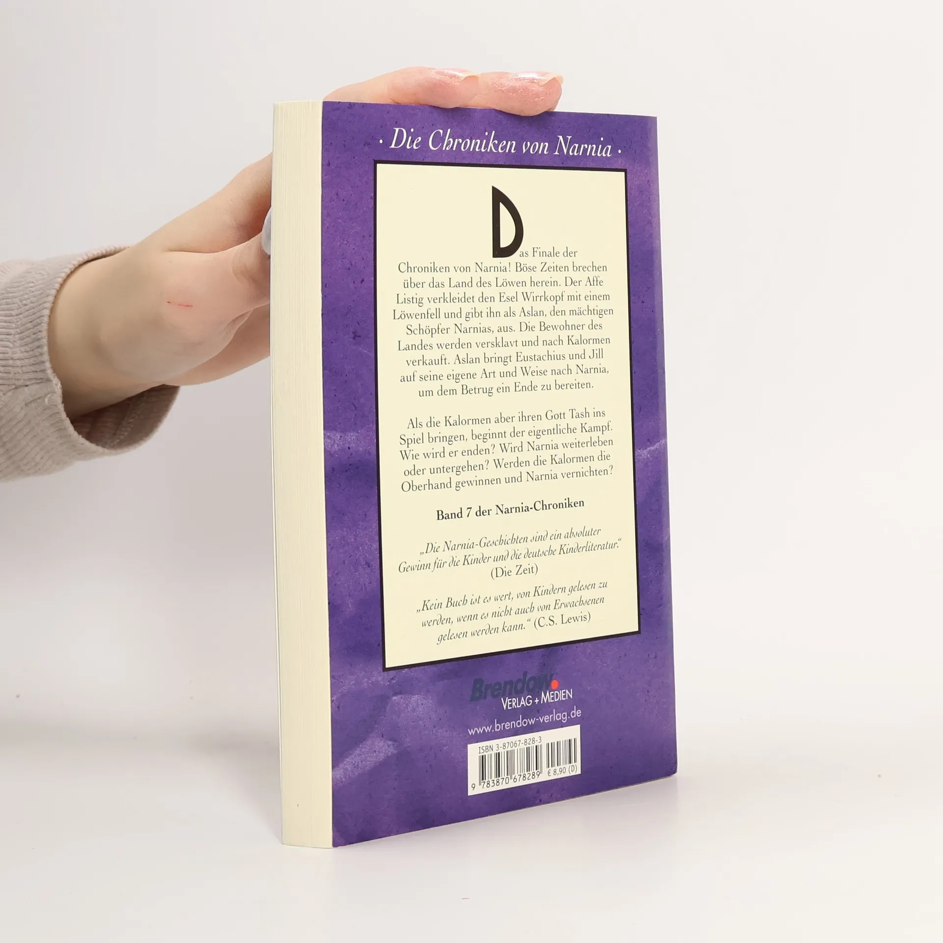 Alles bricht auseinander: Was gut und schön war in Narnia, scheint wertlos. Auf nichts ist mehr Verliass, die Bewohner des Landes werden versklavt und nach Kalormen verkauft. Es heißt, Aslan sei aufgetaucht und habe alles gutgeheißen. Doch wie kann das sein? Die Freunde Narnias kommen von jenseits des Wandschranks, um zu helfen. Der letzte Kampf und das Schicksal Narnias beginnt. Sind die Fronten zwischen Gut und Böse wirklich so klar, wie sie scheinen? Oder ist alles eins? Was wird überdauern? Der fulminante Abschluss der märchenhaften Narnia-Saga!