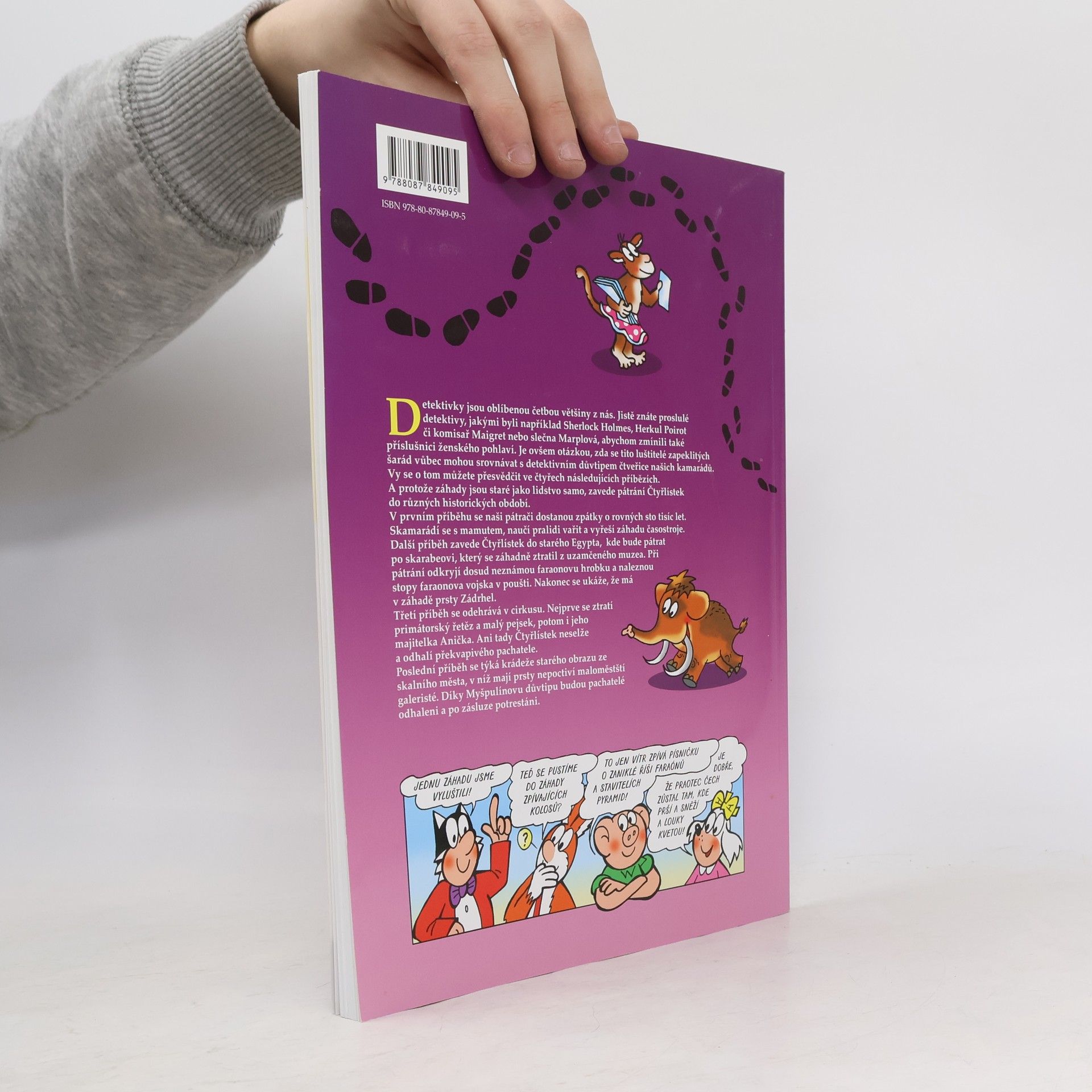 Z edice „4 příběhy“ jsme připravili novou knihu tentokrát s detektivní tematikou. Začínáme bláznivou cestou do pravěku. V Egyptě vypátráme vzácného zlatého skarabea. V cirkusu odhalíme nečekaného zloděje a dopadneme i lupiče cenného obrazu!