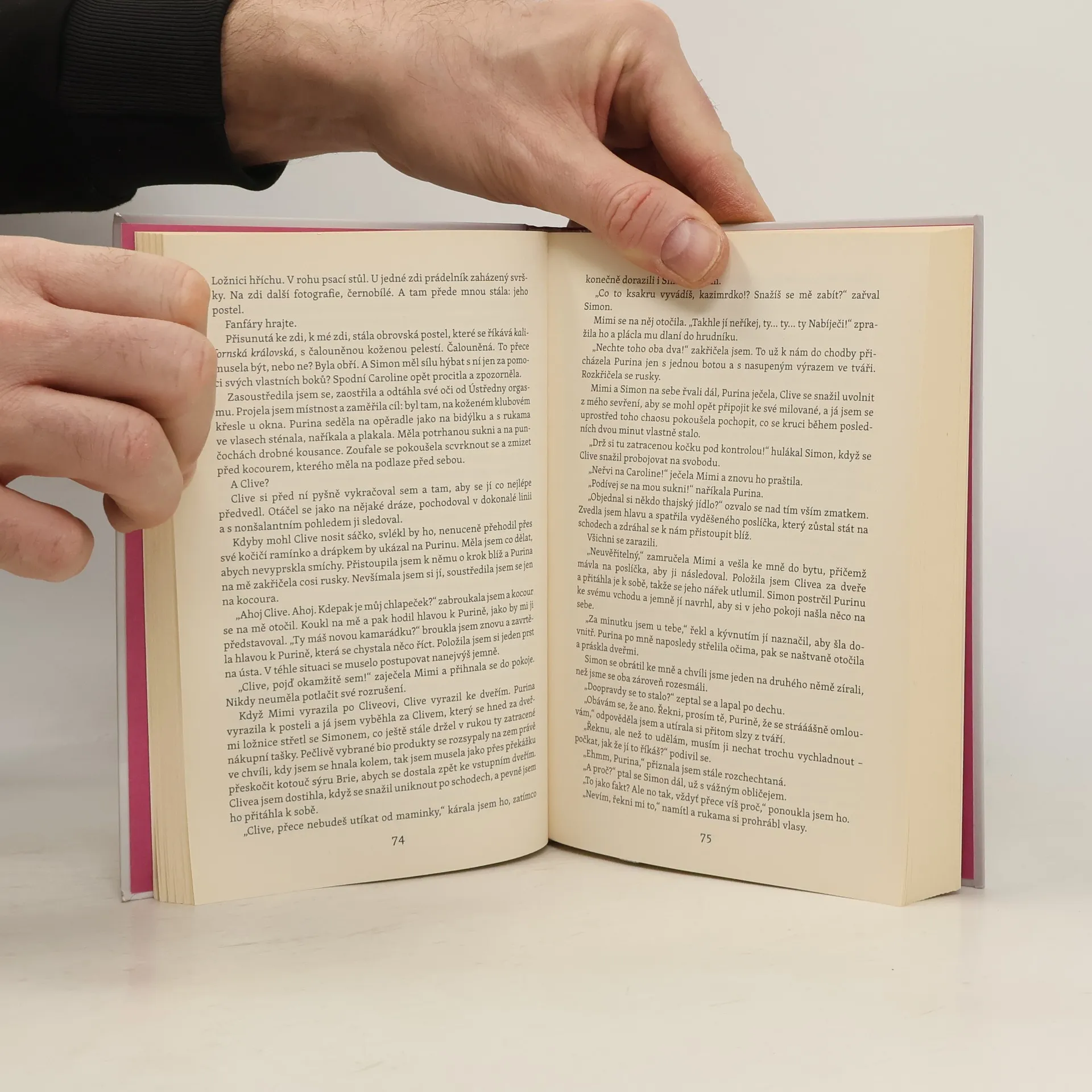 Caroline má fantastický byt v San Francisku a dokonalého kuchyňského robota, ale nemá Óčko! Caroline má skvěle našlápnutou kariéru, kancelář s výhledem na záliv a recept na výtečnou cuketovou buchtu, ale nemá Óčko!! Caroline má nejlepšího kocoura na světě, super kámošky a plný dekolt, ale nemá Óčko!!! A navíc, světe div se, stěnou její ložnice otřásá noc co noc její sexy soused, co si v posteli servítky rozhodně nebere. No, není to zákon schválnosti? Každé zasténání, naplácání a – bože, zamňoukání? – Caroline připomíná, že přichází nejen o spánek, ale že jí, na rozdíl od Nabíječových partnerek, chybí taky… Jo, uhádli jste, Óčko! Když bušení do zdi málem vyklepe Caroline z postele, rupnou jí nervy a oděná do sexuální frustrace a růžové noční košilky se svému sousedovi postaví tváří v tvář. Jenže jejich noční potyčka je, řekněme, jen začátek, protože s tenkými stěnami napětí mezi nimi roste…
