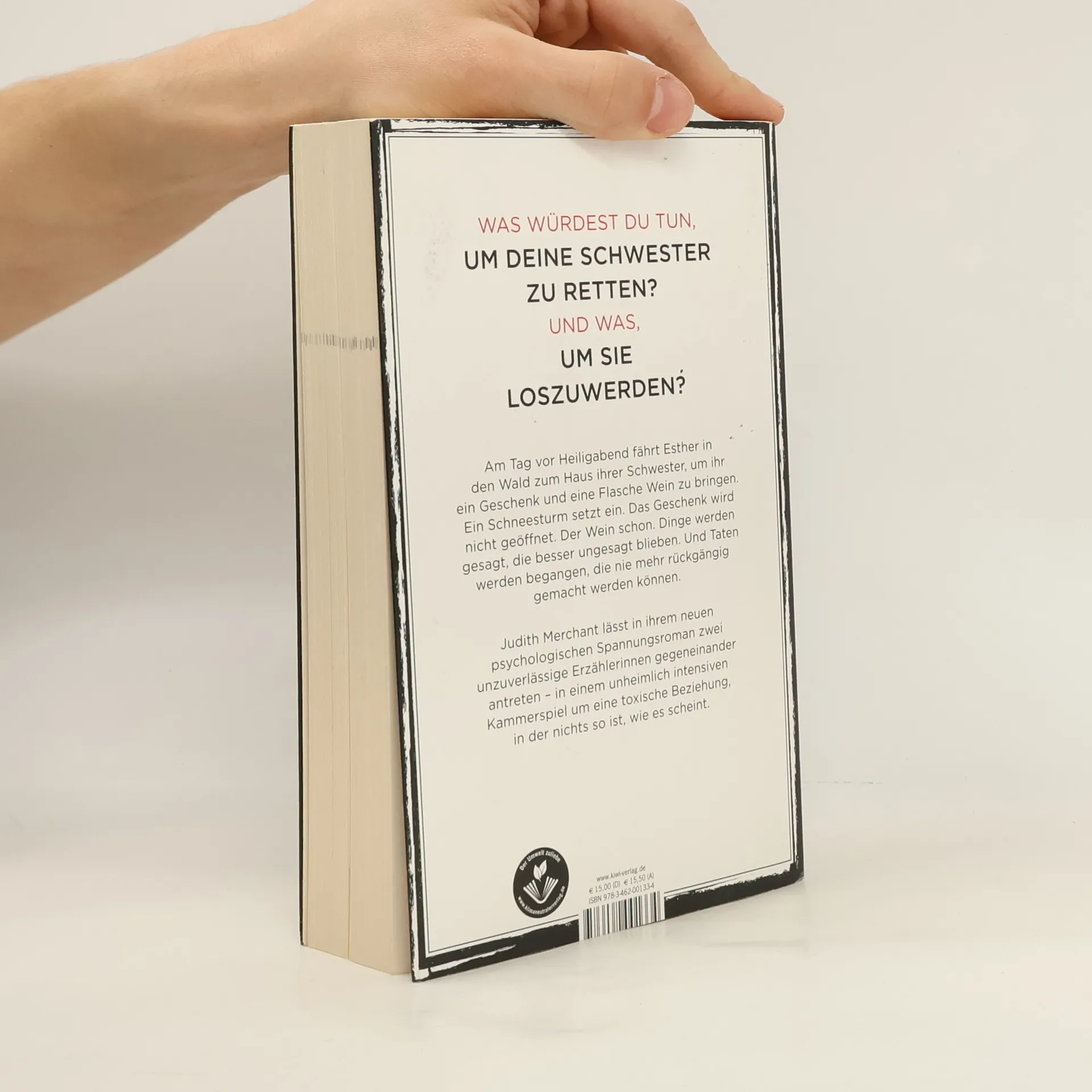 Was würdest du tun, um deine Schwester zu retten? Und was, um sie loszuwerden? Am Tag vor Heiligabend fährt Esther in den Wald zum Haus ihrer Schwester, um ihr ein Geschenk und eine Flasche Wein zu bringen. Ein Schneesturm setzt ein. Das Geschenk wird nicht geöffnet. Der Wein schon. Dinge werden gesagt, die besser ungesagt blieben. Und Taten werden begangen, die nie mehr rückgängig gemacht werden können. Eigentlich muss Esther ihr Weihnachtsfest mit Ehemann und Kindern in der Stadt vorbereiten: einkaufen, Tanne besorgen – es wäre genug zu tun. Doch ihre Schwester Sue, die seit ihrer Scheidung völlig allein in einem riesigen Haus tief im Wald lebt, geht ihr nicht aus dem Kopf. Und so setzt sie sich ins Auto und fährt los. Aber nur um nachzusehen, ob alles in Ordnung ist und ob Sue zumindest ihre Tabletten nimmt. In die Stadt einladen kann sie sie nicht. Denn was, wenn sie wieder durchdreht – wie letztes Jahr? Am Haus im Wald angekommen, stellt Esther fest, dass Sue sie loswerden will. Was hat sie zu verbergen? Ein Schneesturm setzt ein. Zum ersten Mal seit ihrer Kindheit kommen die Schwestern ins Gespräch, und kein Stein bleibt auf dem anderen – bis eine der beiden zum Messer greift. Während der Schnee alles verdeckt und jedes Geräusch erstickt ... Judith Merchant lässt in ihrem neuen psychologischen Spannungsroman zwei unzuverlässige Erzählerinnen gegeneinander antreten – in einem unheimlich intensiven Kammerspiel um eine toxische Beziehung, in der nichts so ist, wie es scheint.