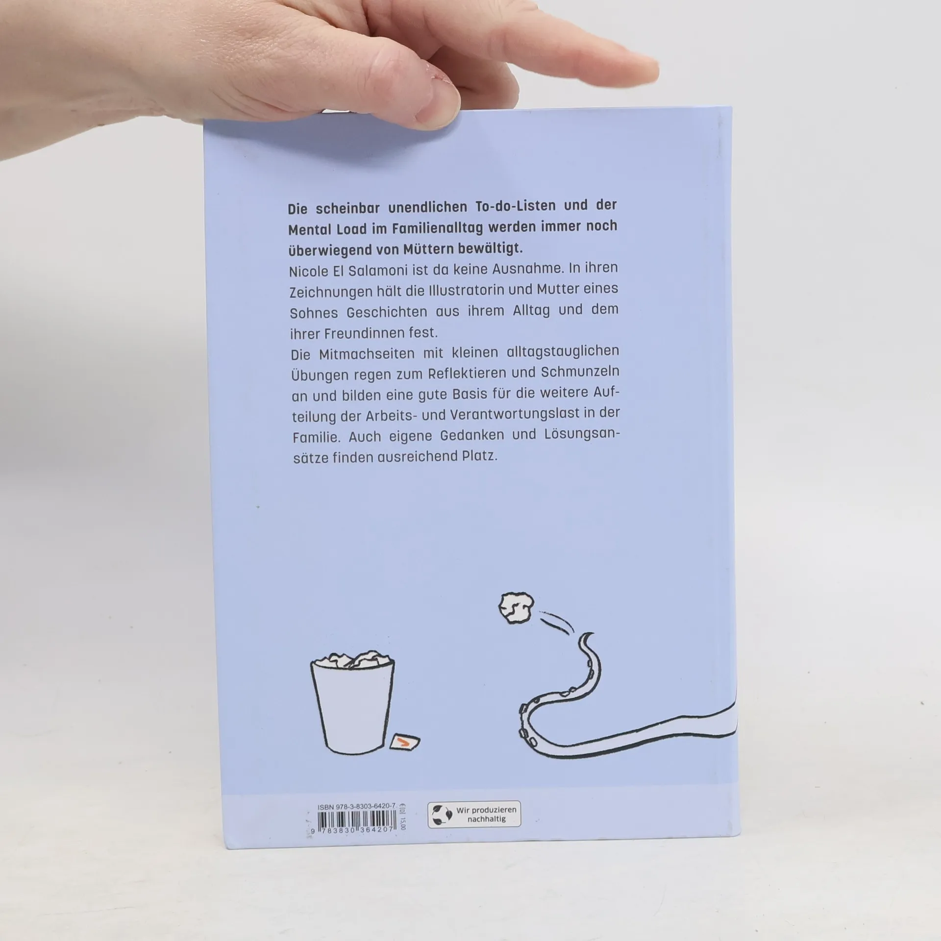 Mental Load mit Humor sichtbar machen: für eine gerechtere Aufteilung der Arbeits- und Verantwortungslast in der Familie Kindergeburtstag organisieren, an Arzttermine denken, Schulbrote schmieren, Wäsche waschen und einkaufen. Die scheinbar unendlichen To-Do-Listen und der Mental Load im Familienalltag werden immer noch überwiegend von Müttern bewältigt. Nicole El Salamoni ist da keine Ausnahme. In ihren Zeichnungen hält die Illustratorin und Mutter eines Sohnes Geschichten aus ihrem Alltag und dem ihrer Freundinnen fest. Die Mitmachseiten im Ratgeber mit kleinen alltagstauglichen Übungen und Tests regen zum Reflektieren und Schmunzeln an und bilden eine gute Basis für die weitere Aufteilung der Arbeits- und Verantwortungslast in der Familie. Auch eigene Gedanken und Lösungsansätze finden ausreichend Platz. Dieser Ratgeber enthält: Lustige Geschichten aus dem Familienalltag Kleine kurzweilige Mental-Load-Tests Viel Platz für eigene Notizen und Lösungen