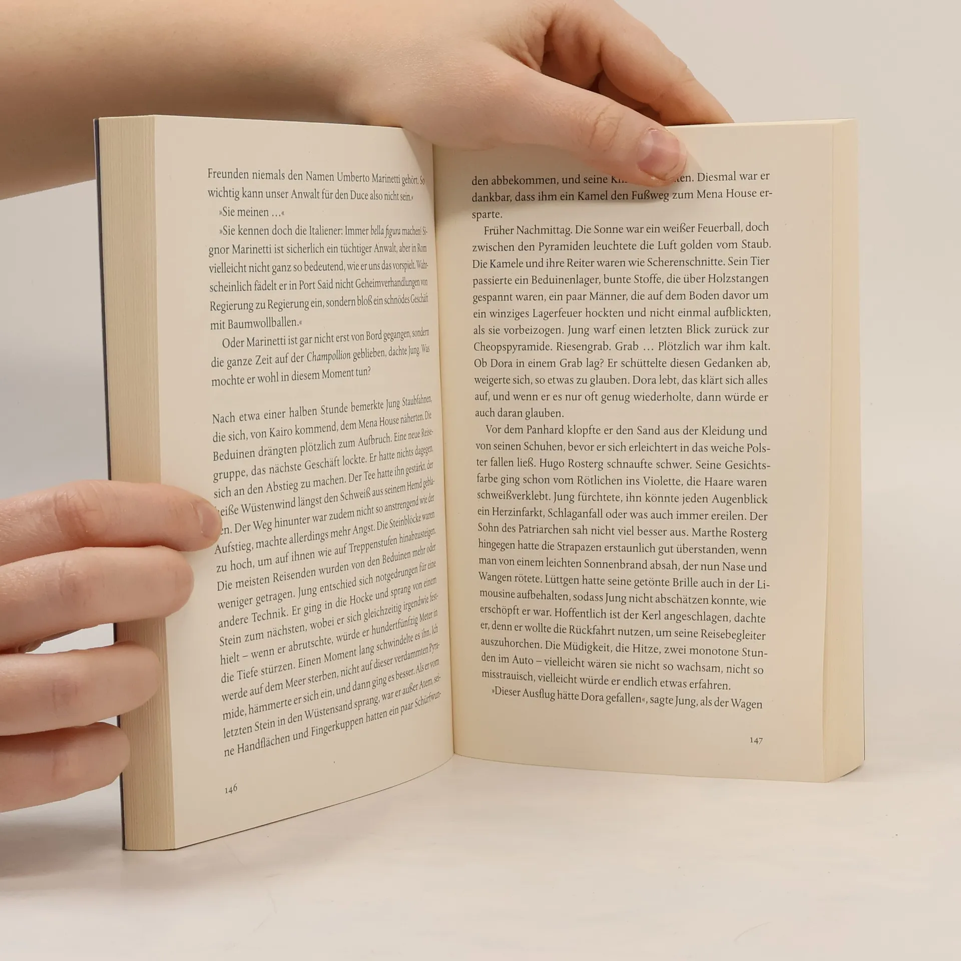 Spätsommer 1929, der letzte Sommer der Goldenen Zwanziger, ist geprägt von Luxus und Frivolität, während die Weltwirtschaftskrise naht. An Bord des Ozeanliners Champollion, der von Marseille in den Orient fährt, befinden sich illustre Passagiere: eine skandalumwitterte Nackttänzerin, ein mysteriöser römischer Anwalt, eine adelige englische Lady und ein Schläger aus der Unterwelt. Theodor Jung, ein Kriegsveteran und Fotoreporter der Berliner Illustrirten, soll eine Reportage über die Reise verfassen. Begleitet wird er von seiner Frau Dora, die aus einer Hamburger Kaufmannsfamilie stammt und nach Maskat reist, um mit den Gewürzen Arabiens zu handeln. Theodor hofft, dass die Reise ihre Ehe neu beleben kann, doch Doras Familie verachtet ihn, und der intrigante Prokurist Bertold Lüttgen hat eigene Interessen an Dora. Als sie nach wenigen Tagen spurlos verschwindet, wird die Reise für Theodor zum Albtraum. Nicht nur die Rostergs, sondern auch andere Passagiere und Besatzungsmitglieder behaupten, Dora nie an Bord gesehen zu haben. Die Dialoge funkeln wie Kristallgläser, und dank der Fähigkeit des Autors, die Atmosphäre der Zwanzigerjahre und das Leben auf dem Champollion lebendig darzustellen, wird der Leser tief in die Geschichte hineingezogen.
