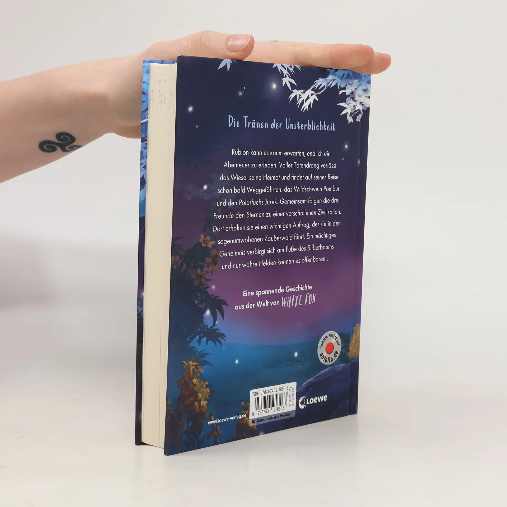 Rubion, der Held aus Eichendorf, sehnt sich nach einem Abenteuer in der weiten Welt. Er verlässt sein Heimatdorf und trifft bald auf Waschbären, die in Not sind und um Hilfe bitten. Gemeinsam mit seinen neuen Freunden begibt sich Rubion in den Zauberwald, wo sie den uralten Silberbaum entdecken, der ein mächtiges Geheimnis birgt. Diese spannende Geschichte aus der Welt von White Fox, geschrieben von dem chinesischen Bestseller-Autor Jiatong Chen, ist der fünfte Band der großen Tierfantasy für Leser ab 9 Jahren. Hier treffen Coolness und Magie auf Spannung, Action und Natur. Es erwartet die Leser ein packendes Abenteuer rund um ein gewitztes Wiesel, eine große Mission und eine gefährliche Reise. In dieser modernen Parabel sind Gut und Böse sowie Freunde und Feinde eng miteinander verbunden. Die stimmungsvollen Schwarz-Weiß-Illustrationen von Viola Wang ergänzen die Erzählung. Ideal für Fantasy-Fans von Woodwalkers und Animox. Der Titel ist bei Antolin gelistet. Die White Fox-Reihe umfasst mehrere Bände, darunter die Vorgeschichte und weitere Abenteuer im White-Fox-Universum. Zudem gibt es eine neue Reihe von Jiatong Chen über geheimnisvolle Traumwelten. Klimaneutrales Produkt – unterstützt ausgewählte Klimaprojekte!