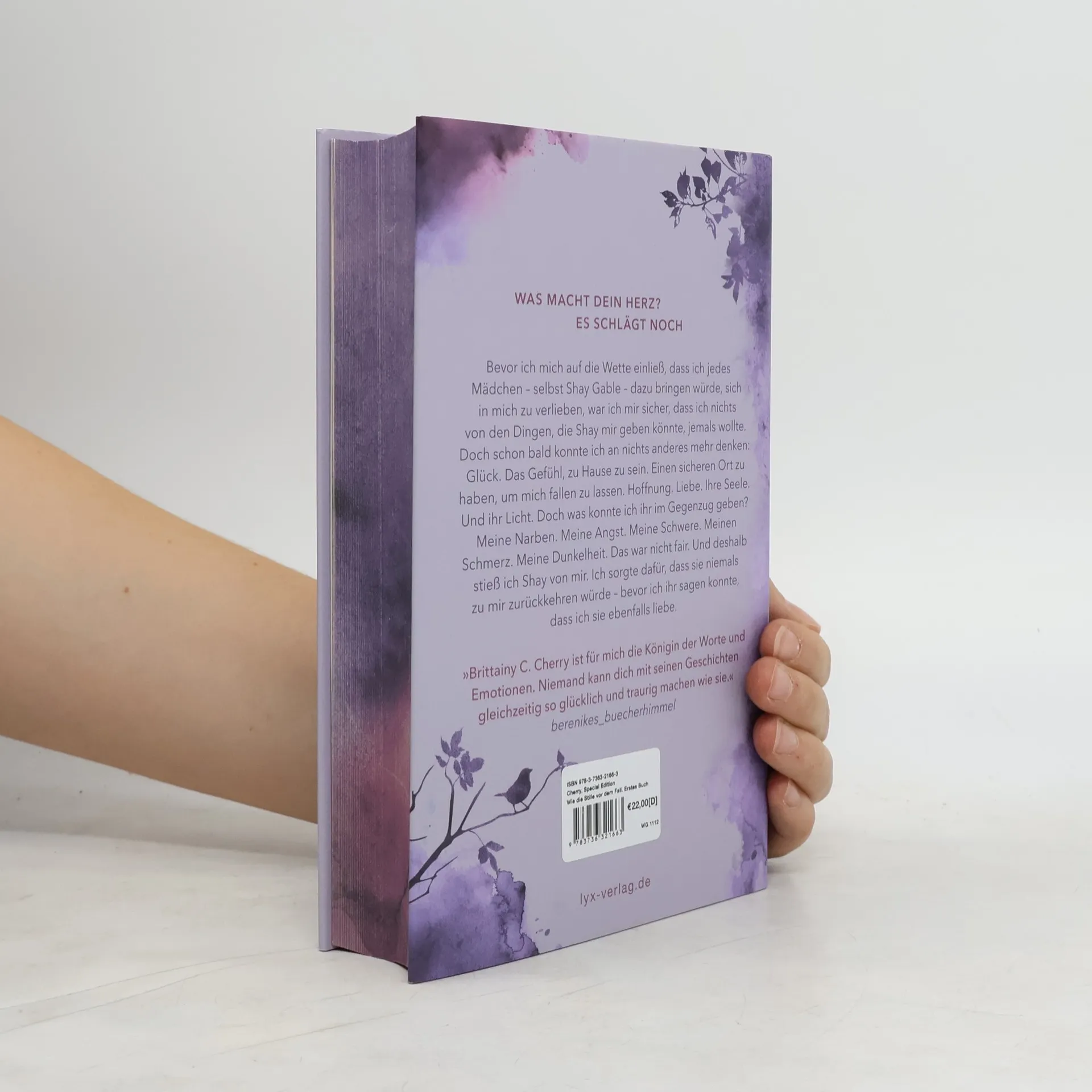 Die Special Edition von WIE DIE STILLE VOR DEM FALL. ERSTES BUCH - Limitierte Special Edition - Hardcover mit Schutzumschlag und neuem Cover - Mit Farbschnitt passend zu den Covern - Mit Illustrationen auf Vor- und Nachsatzpapier von @german. potato. art Was macht dein Herz? Es schlägt noch. Bevor ich mich auf die Wette einließ, dass ich jedes Mädchen - selbst Shay Gable - dazu bringen würde, sich in mich zu verlieben, war ich mir sicher, dass ich nichts von den Dingen, die Shay mir geben könnte, jemals wollte. Doch schon bald konnte ich an nichts anderes mehr denken: Glück. Das Gefühl, zu Hause zu sein. Einen sicheren Ort zu haben, um mich fallen zu lassen. Hoffnung. Liebe. Ihre Seele. Und ihr Licht. Doch was konnte ich ihr im Gegenzug geben? Meine Narben. Meine Angst. Meine Schwere. Meinen Schmerz. Meine Dunkelheit. Das war nicht fair. Und deshalb stieß ich Shay von mir. Ich sorgte dafür, dass sie niemals zu mir zurückkehren würde - bevor ich ihr sagen konnte, dass ich sie ebenfalls liebe. „Brittainy C. Cherry ist für mich die Königin der Worte und Emotionen. Niemand kann dich mit seinen Geschichten gleichzeitig so glücklich und traurig machen wie sie.“ berenikes_buecherhimmel Erster Teil des zweiten Bandes der herzzerreißenden CHANCES-Reihe von SPIEGEL-Bestseller-Autorin Brittainy C. Cherry