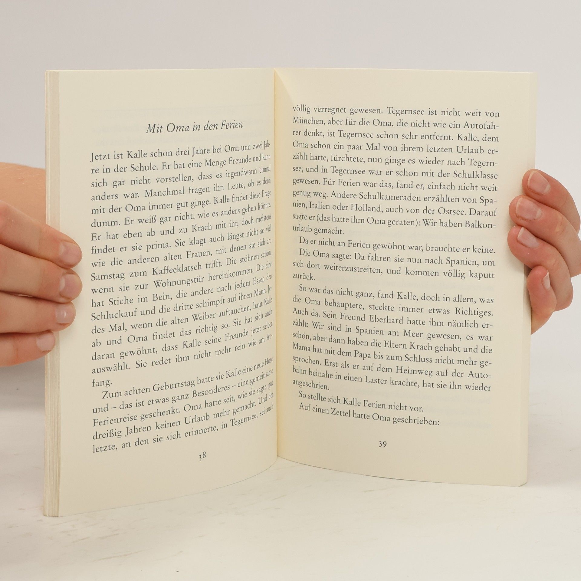Kalle wird mit 5 Jahren von seiner Oma aufgenommen. Fünf Jahre ist Kalle, als er seine Eltern verliert. Erst kann er es gar nicht begreifen. Seine Oma nimmt ihn zu sich. Da merkt Kalle, dass alles ganz anders ist als früher mit Vater und Mutter. Oma ist prima, aber - alt! Und Oma denkt: Hoffentlich kann ich den Jungen richtig erziehen - in meinem Alter! Sie erzählt Kalle von ›damals‹, als alles ganz anders war. Sie machen zusammen eine Reise und haben viel Spaß miteinander. Kalle ist zehn, als Oma krank wird. Da zeigt sich, dass auch sie ihn braucht.