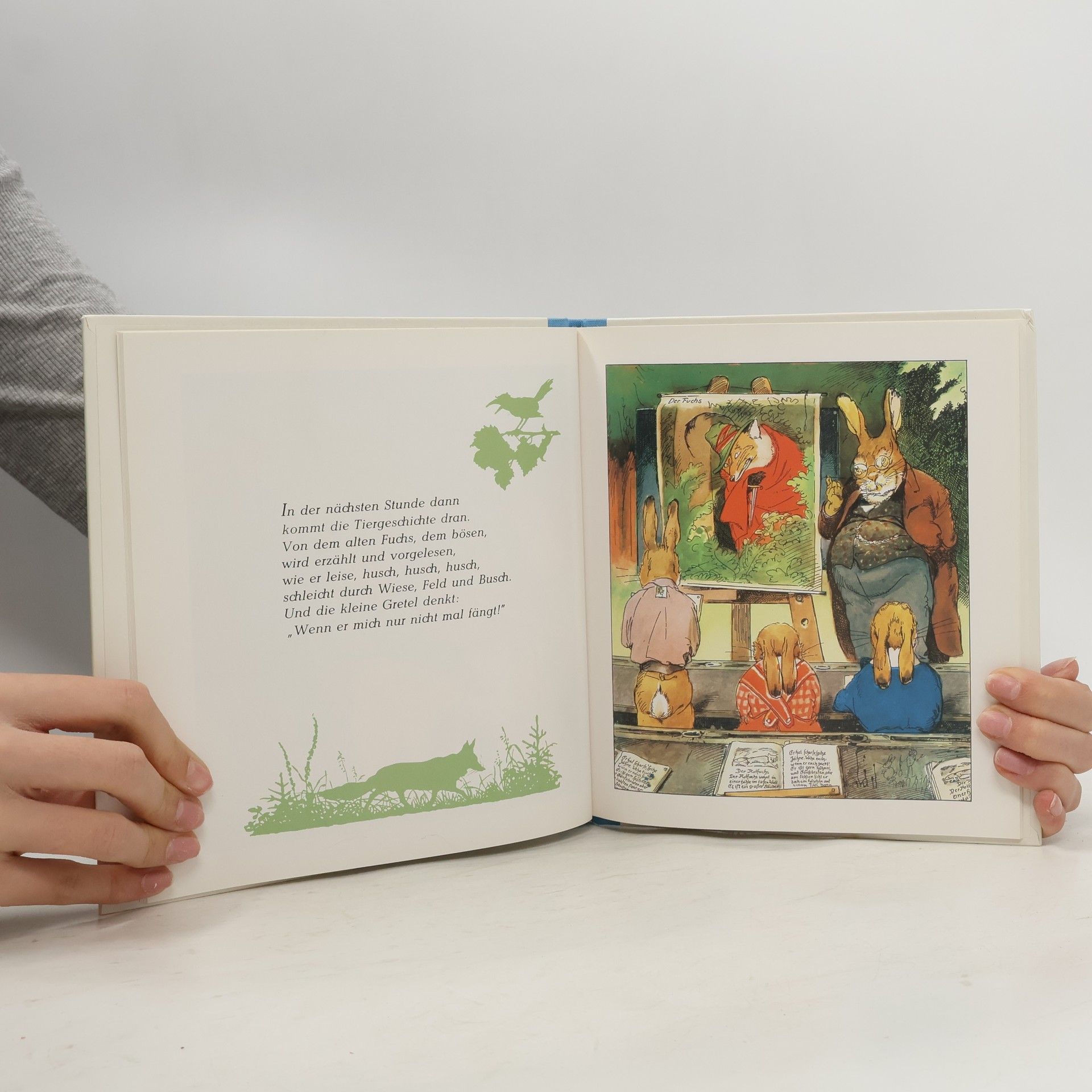 Auf geht es in die Häschenschule! Es ist der erste Schultag. Hans und Grete haben heute Pflanzenkunde und lernen, sich vor dem gefährlichen Fuchs in Acht zu nehmen. Der Lehrer bringt ihnen alles bei, was richtige Hasen wissen müssen - und dazu gehört natürlich auch das Ostereieranmalen. Die Häschenschule ist wohl das bekannteste Bilderbuch dieses Jahrhunderts. Wer kennt sie nicht, die Geschichte vom Hasenhans und Hasengretchen und ihren Schulkameraden?