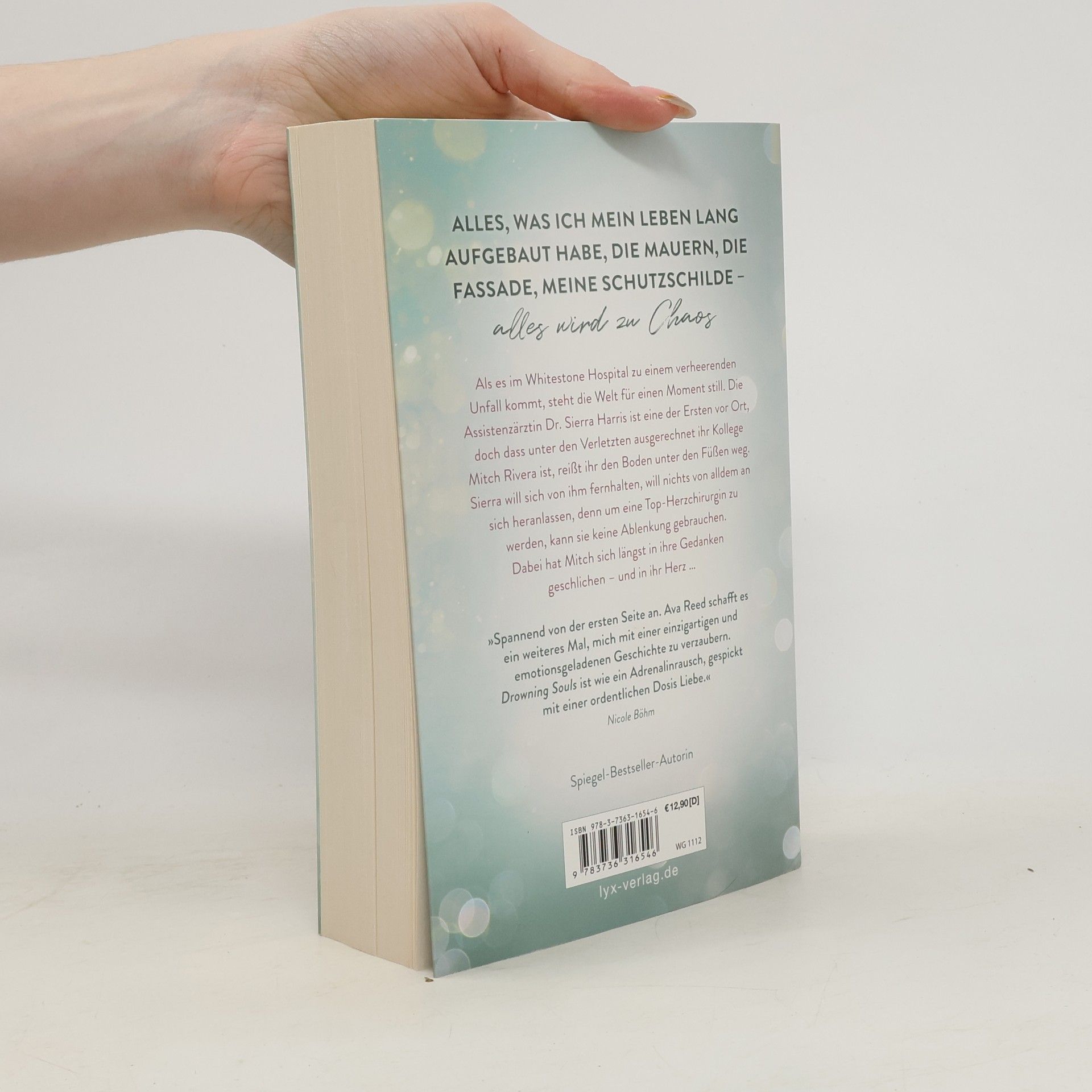 Alles, was ich mein Leben lang aufgebaut habe, die Mauern, die Fassade, meine Schutzschilde - alles wird zu Chaos Als es im Whitestone Hospital zu einem verheerenden Unfall kommt, steht die Welt für einen Moment still. Die Assistenzärztin Dr. Sierra Harris ist eine der Ersten vor Ort, doch dass unter den Verletzten ausgerechnet ihr Kollege Mitch Rivera ist, reißt ihr den Boden unter den Füßen weg. Sierra will sich von ihm fernhalten, will nichts von alldem an sich heranlassen, denn um eine Top-Herzchirurgin zu werden, kann sie keine Ablenkung gebrauchen. Dabei hat Mitch sich längst in ihre Gedanken geschlichen - und in ihr Herz ... „Spannend von der ersten Seite an. Ava Reed schafft es ein weiteres Mal, mich mit einer einzigartigen und emotionsgeladenen Geschichte zu verzaubern. Drowning Souls ist wie ein Adrenalinrausch, gespickt mit einer ordentlichen Dosis Liebe.“ NICOLE BÖHM Band 2 der vierbändigen Serie rund um die jungen Ärzt: innen des WHITESTONE HOSPITALS