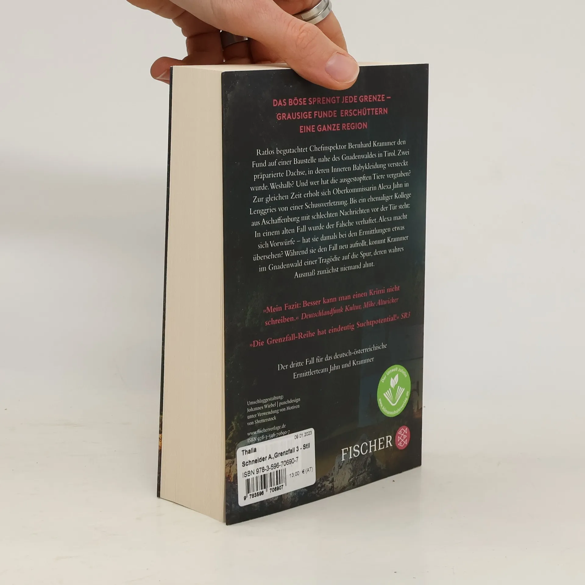 »Lassen Sie sich mit der Grenzfall-Serie auf die dunkle Seite der Alpen entführen. Allerfeinste Krimiunterhaltung!« Romy Fölck Der dritte Band der SPIEGEL-Bestseller-Serie um das deutsch-österreichische Ermittlerteam Alexa Jahn und Bernhard Krammer Ratlos begutachtet Chefinspektor Bernhard Krammer den Fund auf einer Baustelle am Ortsrand von Gnadenwald in Tirol. Zwei präparierte Dachse, in deren Inneren Babykleidung versteckt wurde. Weshalb? Und wer hat die ausgestopften Tiere vergraben? Zur gleichen Zeit erholt sich Oberkommissarin Alexa Jahn in Lenggries von einer Schussverletzung. Bis ein ehemaliger Kollege aus Aschaffenburg mit schlechten Nachrichten vor der Tür steht: In einem alten Fall wurde der Falsche verhaftet. Alexa macht sich Vorwürfe – hat sie damals bei den Ermittlungen etwas übersehen? Während sie den Fall neu aufrollt, kommt Krammer einer Tragödie auf die Spur, deren wahres Ausmaß zunächst niemand ahnt. »Mein Fazit: Besser kann man einen Krimi nicht schreiben.« Deutschlandfunk Kultur, Mike Altwicker »Hochspannend ... genial fügen sich wie bei einem Puzzle alle Teile zusammen.« Süddeutsche Zeitung Band 3 der packenden Krimiserie in der Grenzregion Deutschland – Österreich