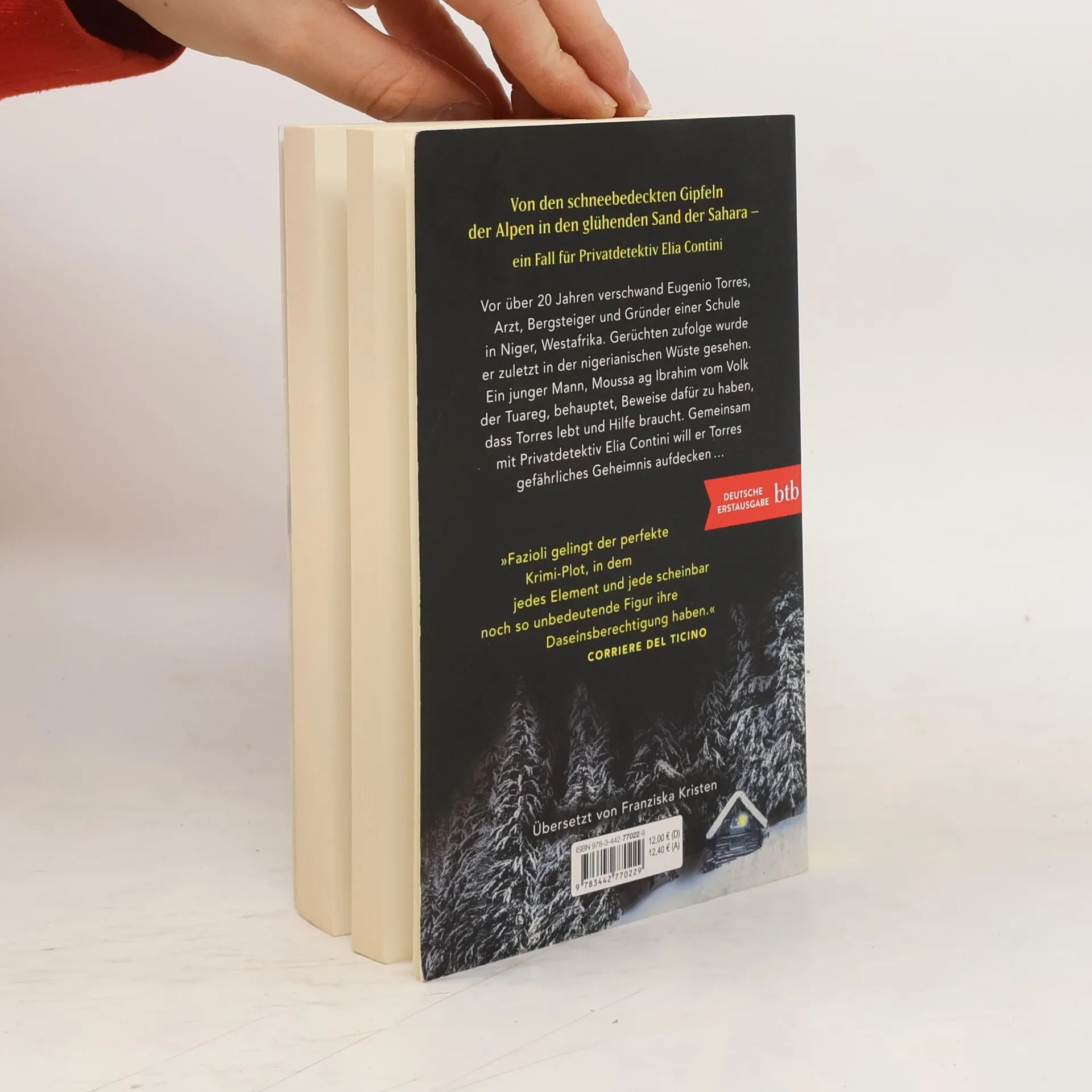 Ein neuer Fall für Privatdetektiv Elia Contini. Ein Krimi aus dem Tessin – für alle LeserInnen von Håkan Nesser Vor über 20 Jahren verschwand Eugenio Torres, ein bekannter Arzt, Bergsteiger und Gründer einer Schule in Niger, Westafrika. Jetzt, nach dem Tod seiner Frau, bitten die Kinder Privatdetektiv Elia Contini um Hilfe. Er soll herausfinden, was mit ihrem Vater damals passiert ist. Gerüchten zufolge wurde er zuletzt in der nigerianischen Wüste gesehen. Von dort kommt eines Tages ein junger Migrant in die Schweiz. Moussa ag Ibrahim gehört dem Volk der Tuareg an und behauptet, Beweise dafür zu haben, dass Torres lebt und Hilfe braucht. Der Detektiv und der junge Mann wollen Torres' gefährliches Geheimnis aufdecken. Zwei radikal gegensätzliche Kulturen treffen im beschaulichen Tessin aufeinander. Oder gibt es vielleicht doch Gemeinsamkeiten zwischen den schneebedeckten Gipfeln der Alpen und den unendlichen Weiten der Sahara?