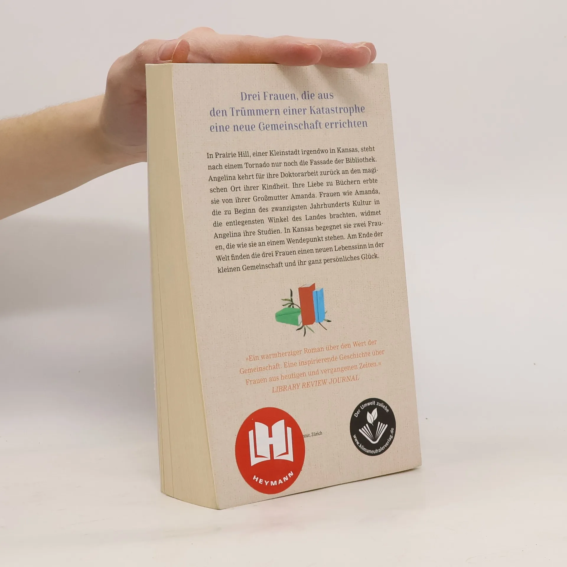 Mit ihrer Liebe zu Büchern schenken drei mutige Frauen einer zerstörten Kleinstadt neue HoffnungIn Prairie Hill, einer Kleinstadt irgendwo in Kansas, steht nach einem Tornado nur noch die Fassade der Bibliothek.Angelina kehrt für ihre Doktorarbeit zurück an den magischen Ort ihrer Kindheit. Ihre Liebe zum Lesen erbte sie von ihrer Großmutter Amanda. Frauen wie Amanda, die zu Beginn des zwanzigsten Jahrhunderts Kultur in die entlegensten Winkel des Landes brachten, widmet Angelina ihre Studien. In Kansas begegnet sie zwei Frauen, die wie sie an einem Wendepunkt stehen. Gemeinsam entwickeln sie eine Schaffenskraft, die der Kleinstadt neue Hoffnung gibt. Am Ende der Welt finden die drei Frauen einen neuen Lebenssinn und ihr ganz persönliches Glück.»Ein warmherziger Roman über den Wert der Gemeinschaft. Eine inspirierende Geschichte über Frauen aus heutigen und vergangenen Zeiten.« Library Review Journal