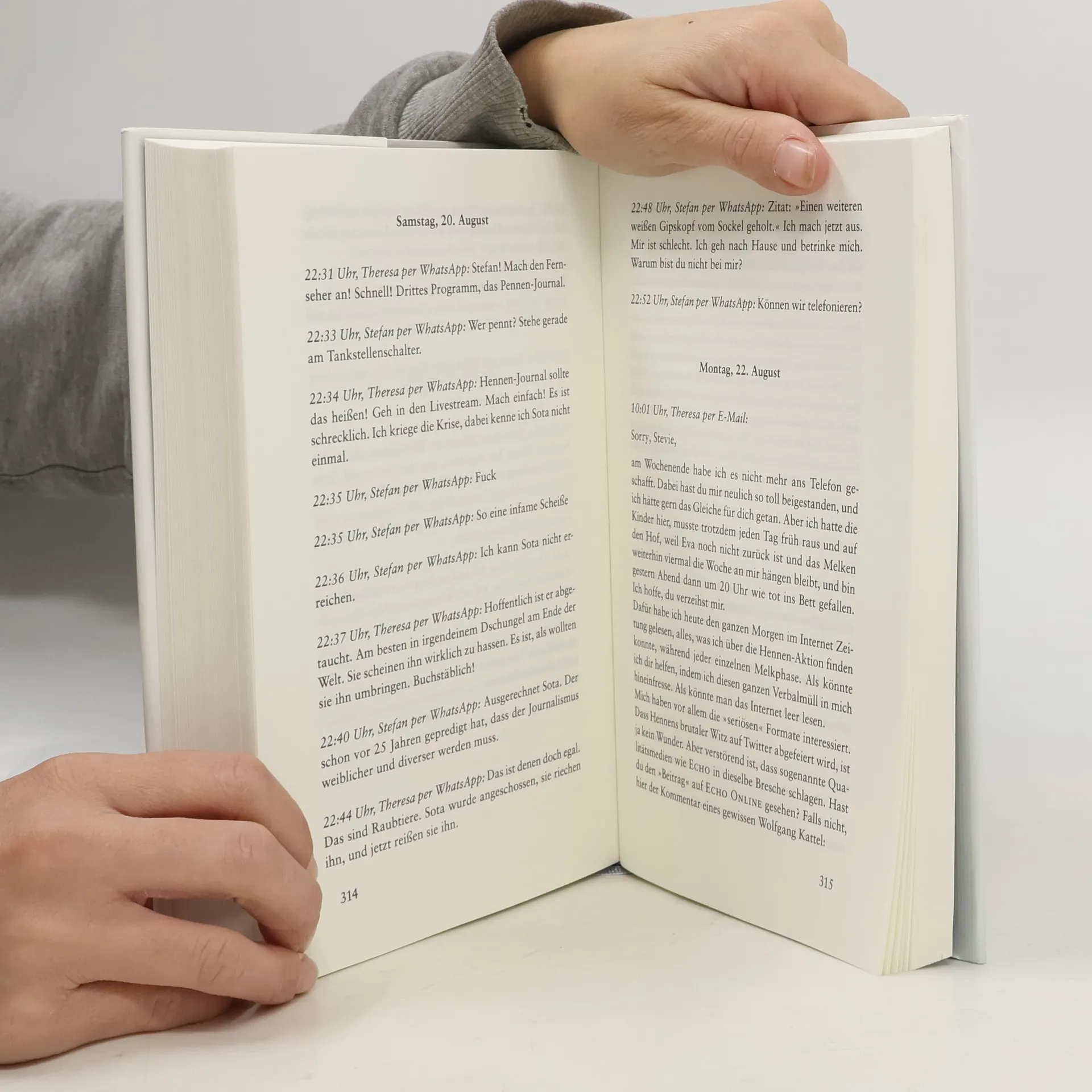 »Ein großer Gesellschaftsroman. Passt perfekt in unsere Zeit.« Christhard Läpple, ZDF Heute Journal Zwanzig Jahre sind vergangen: Als sich Stefan und Theresa zufällig in Hamburg über den Weg laufen, endet ihr erstes Wiedersehen in einem Desaster. Zu Studienzeiten waren sie wie eine Familie füreinander, heute sind kaum noch Gemeinsamkeiten übrig. Stefan hat Karriere bei Deutschlands größter Wochenzeitung DER BOTE gemacht, Theresa den Bauernhof ihres Vaters in Brandenburg übernommen. Aus den unterschiedlichen Lebensentwürfen sind gegensätzliche Haltungen geworden. Stefan versucht bei seiner Zeitung, durch engagierte journalistische Projekte den Klimawandel zu bekämpfen. Theresa steht mit ihrem Bio-Milchhof vor Herausforderungen, die sie an den Rand ihrer Kraft bringen. Die beiden beschließen, noch einmal von vorne anzufangen, sich per E-Mail und WhatsApp gegenseitig aus ihren Welten zu erzählen. Doch während sie einander näherkommen, geraten sie immer wieder in einen hitzigen Schlagabtausch um polarisierende Fragen wie Klimapolitik, Gendersprache und Rassismusvorwürfe. Ist heute wirklich jeder und jede gezwungen, eine Seite zu wählen? Oder gibt es noch Gemeinsamkeiten zwischen den Welten? Und können Freundschaft und Liebe die Kluft überbrücken?
