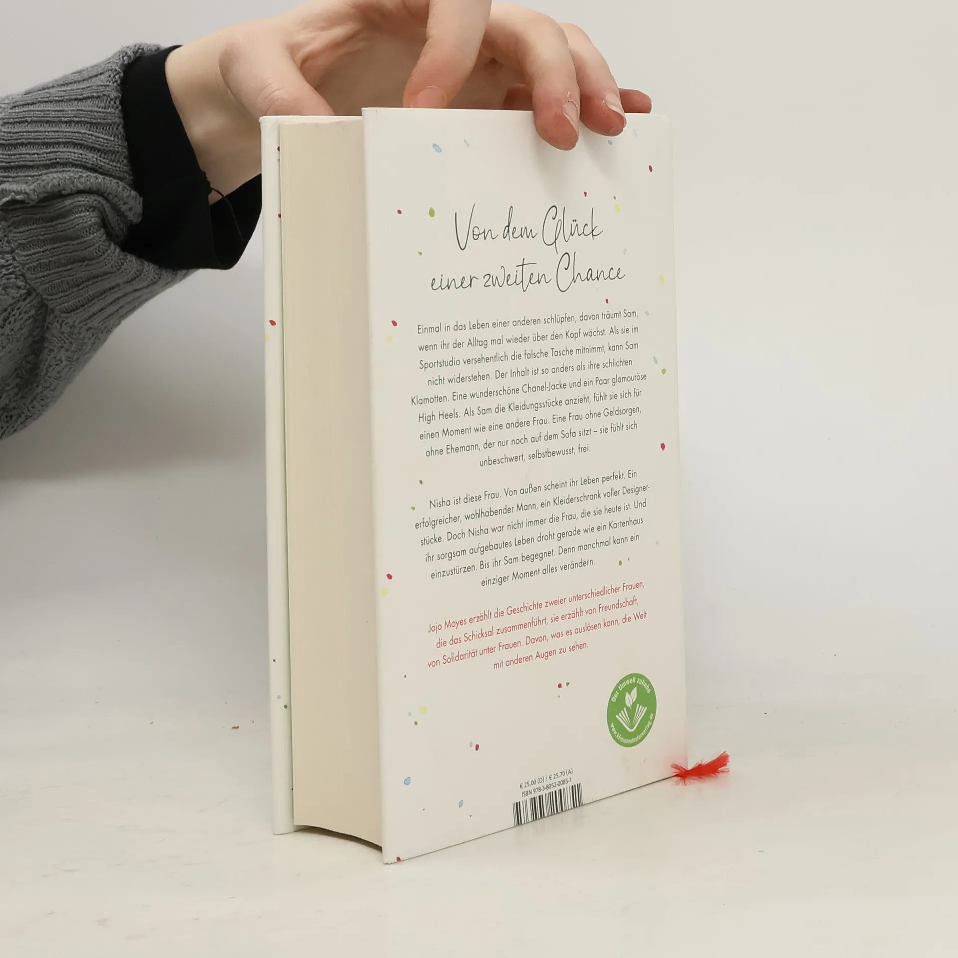Mit «Ein ganzes halbes Jahr» hat Jojo Moyes Millionen Leser: innen-Herzen erobert. Ihre Romane sind unvergleichlich, lassen uns mitfühlen, bringen uns zum Weinen und zum Lachen. In ihrem neuen Roman erzählt Jojo Moyes die Geschichte zweier ungleicher Frauen, die das Schicksal zusammenführt. Einmal in das Leben einer anderen schlüpfen, davon träumt Sam, wenn ihr der Alltag mal wieder über den Kopf wächst. Als sie im Sportstudio versehentlich die falsche Tasche mitnimmt, kann sie nicht widerstehen. Der Inhalt ist so anders als ihre schlichten Klamotten. Eine wunderschöne Chanel-Jacke und ein Paar glamouröse High Heels. Als Sam die Kleidungsstücke anzieht, fühlt sie sich für einen Moment wie eine andere Frau. Eine Frau ohne Geldsorgen, ohne Ehemann, der nur noch auf dem Sofa sitzt - sie fühlt sich unbeschwert, selbstbewusst, frei. Nisha ist diese Frau. Von außen scheint ihr Leben perfekt. Ein erfolgreicher, wohlhabender Mann, ein Kleiderschrank voller Designerstücke. Doch Nisha war nicht immer die Frau, die sie heute ist. Und ihr sorgsam aufgebautes Leben droht gerade wie ein Kartenhaus einzustürzen. Bis ihr Sam begegnet. Denn manchmal kann ein einziger Moment alles verändern. Jojo Moyes erzählt die Geschichte von Sam und Nisha, sie erzählt von Freundschaft, von Solidarität unter Frauen. Davon, was es auslösen kann, die Welt mit anderen Augen zu sehen. Und von dem Glück einer zweiten Chance.