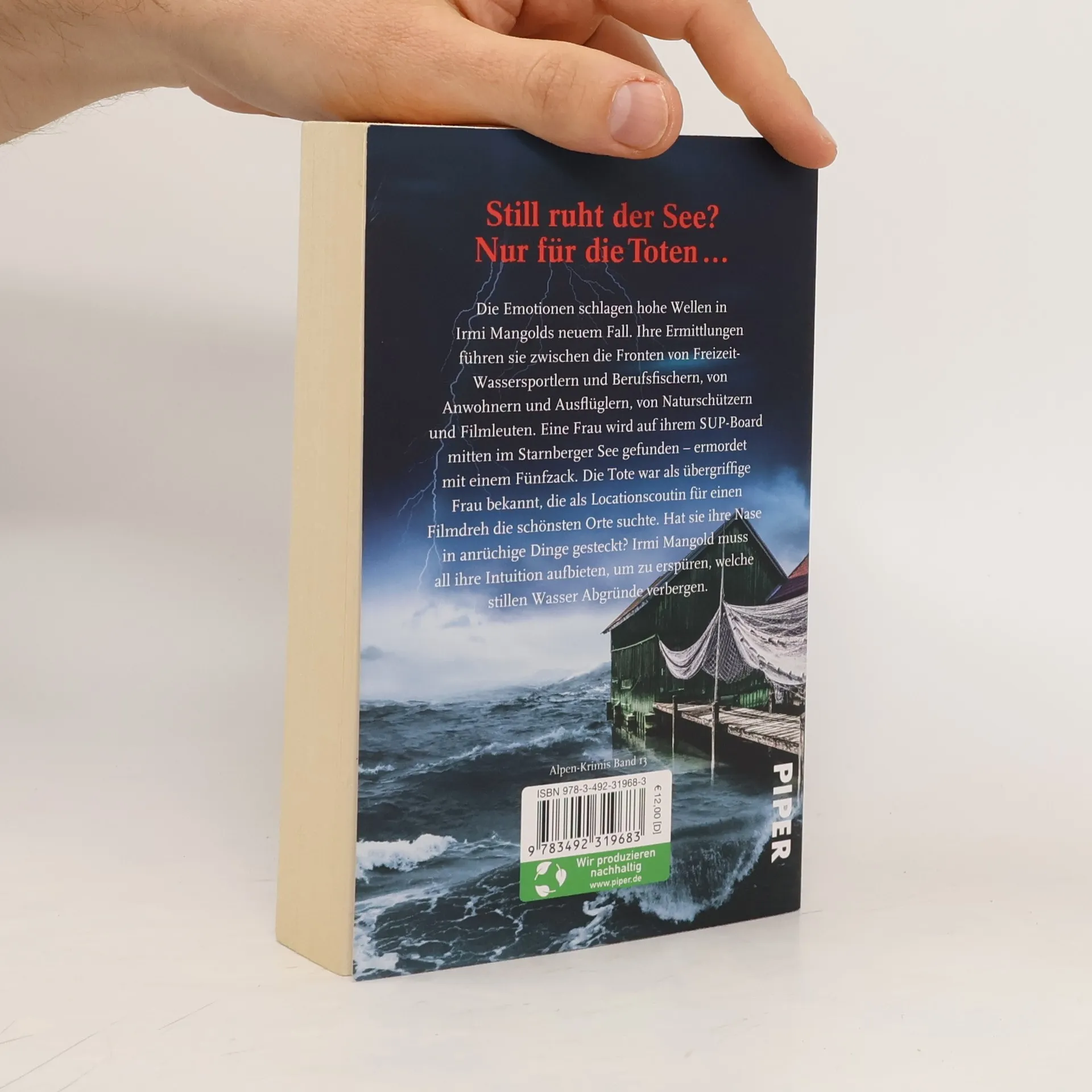 Spannung in Serie: Nicola Förgs Alpen-Krimis bieten Leserinnen und Lesern Lokalkolorit, brisante aktuelle Themen um Natur- und Umweltschutz und eine intelligent geplottete Krimi-Handlung. Für »Hohe Wogen«, Band 13 ihrer beliebten Krimi-Reihe, wählt die SPIEGEL-Bestsellerautorin den Starnberger See als idyllischen Schauplatz für einen ungewöhnlichen Mord: Eine Frau wird auf ihrem SUP-Board mitten im See gefunden – getötet mit einem Fünfzack. Irmi Mangolds Ermittlungen führen sie zwischen die Fronten von Freizeit-Wassersportlern und Berufsfischern, von Anwohnern und Ausflüglern, von Naturschützern und Erholung Suchenden. Die Emotionen schlagen hohe Wellen in diesem neuen Fall. Die Tote war vielen in der Region als übergriffige Frau bekannt, die als Locationscoutin für einen Filmdreh die schönsten Orte suchte. Hat sie ihre Nase in anrüchige Dinge gesteckt? Irmi Mangold muss all ihre Intuition aufbieten, um zu erspüren, welche stillen Wasser Abgründe verbergen. »Nicola Förg ist wieder ein großartiger Roman gelungen. Bei jedem neuen Thema lernt man etwas dazu. Es ist immer wieder ein Vergnügen, mit Irmi Mangold und ihrem Team auf Täterjagd zu gehen.« Radiolounge