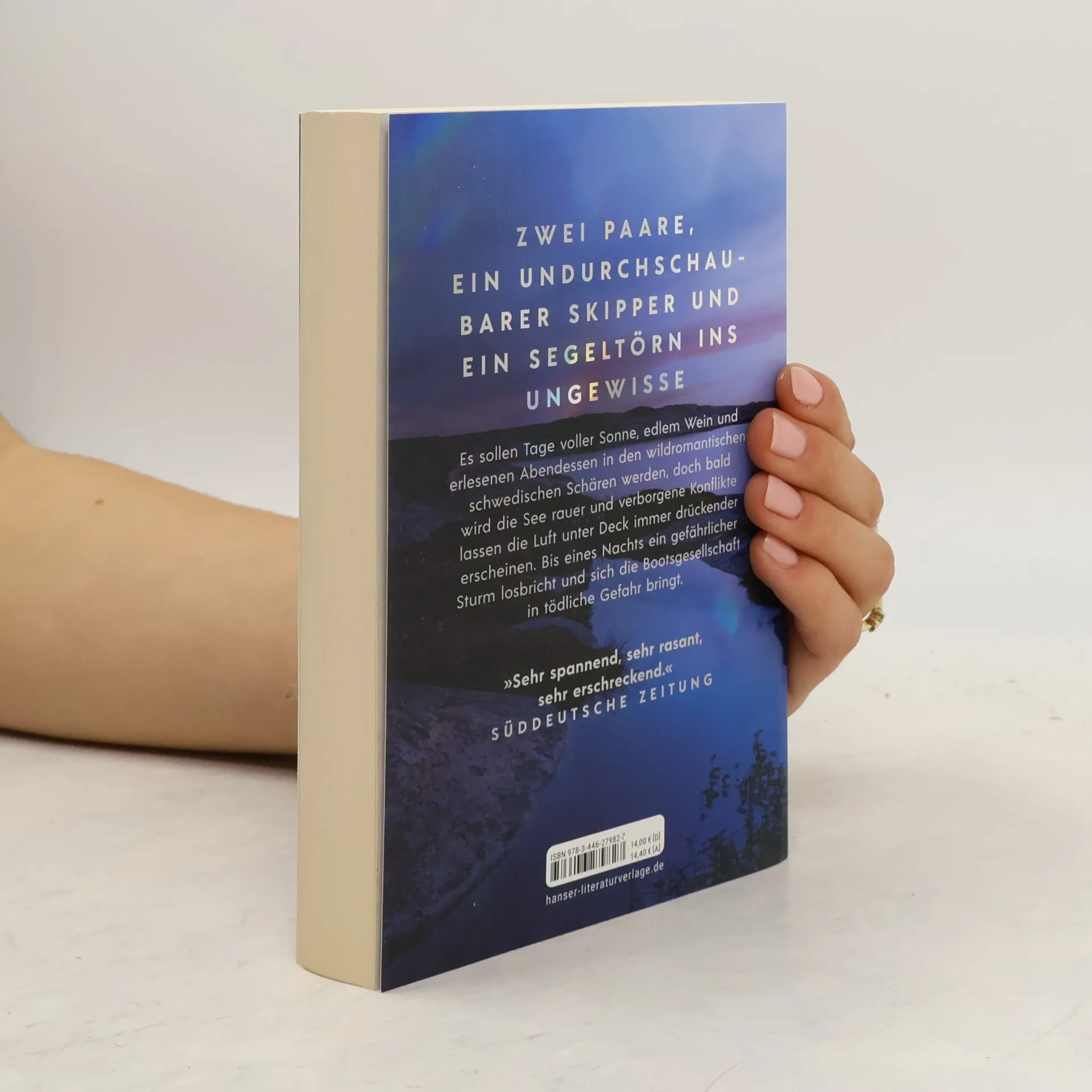 Ein Segeltörn ins Ungewisse – nach „Unter Wasser Nacht“ entführt der neue Roman von Bestsellerautorin Kristina Hauff in die wildromantischen schwedischen Schären Ein Segeltörn in die wildromantischen schwedischen Schären – Caroline und ihr Mann Andreas erfüllen sich damit einen lang gehegten Traum. Auch Andreas’ junger Anwaltskollege und seine Freundin sind an Bord sowie der undurchschaubare, faszinierende Skipper Eric. Der Urlaub beginnt mit frischem sonnigen Wetter und erlesenen Abendessen, doch bald wird die See rauer und verborgene Konflikte lassen die Luft unter Deck immer drückender erscheinen. Bis eines Nachts ein gefährlicher Sturm losbricht. Mit spannenden Wendungen und atmosphärischen Naturschilderungen erzählt Kristina Hauff von dem, was unter der Oberfläche eines scheinbar perfekten Lebens brodelt. Und von einer Nacht, deren tödliche Bedrohung folgenschwere Wahrheiten ans Licht bringt.