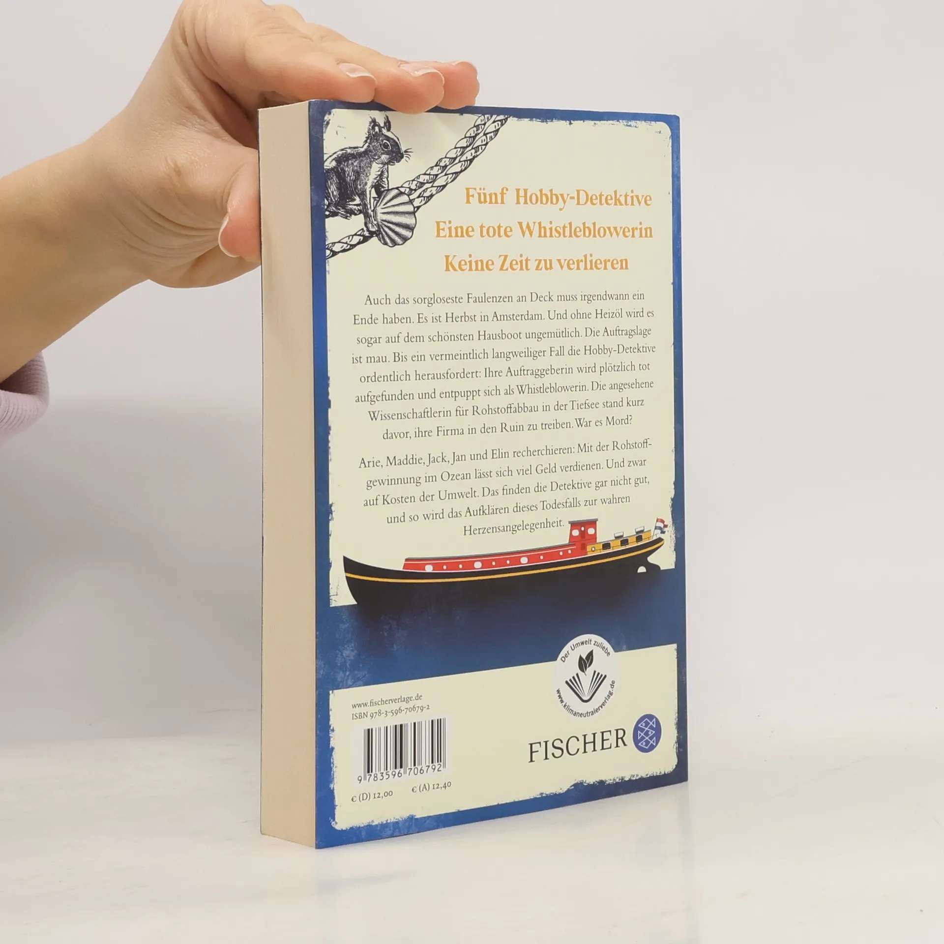 Fünf Hobby-Detektive. Eine tote Whistleblowerin. Keine Zeit zu verlieren Auch das sorgloseste Faulenzen an Deck muss irgendwann ein Ende haben. Es ist Herbst in Amsterdam. Und ohne Heizöl wird es sogar auf dem schönsten Hausboot ungemütlich. Die Auftragslage ist mau. Bis ein vermeintlich langweiliger Fall die Hobby-Detektive ordentlich herausfordert: Ihre Auftraggeberin wird plötzlich tot aufgefunden und entpuppt sich als Whistleblowerin. Die angesehene Expertin für den Rohstoffabbau in der Tiefsee stand kurz davor, ihre Firma in den Ruin zu jagen. Mord? Arie, Maddie, Jack, Jan und Elin recherchieren: Mit der Rohstoffgewinnung im Ozean lässt sich viel Geld machen. Und zwar auf Kosten der Umwelt. Finden die Detektive gar nicht gut, und so wird das Aufklären dieses Todesfalls zur wahren Herzensangelegenheit. Der zweite Wohlfühl-Krimi mit der Amsterdamer Hausboot-Detektei