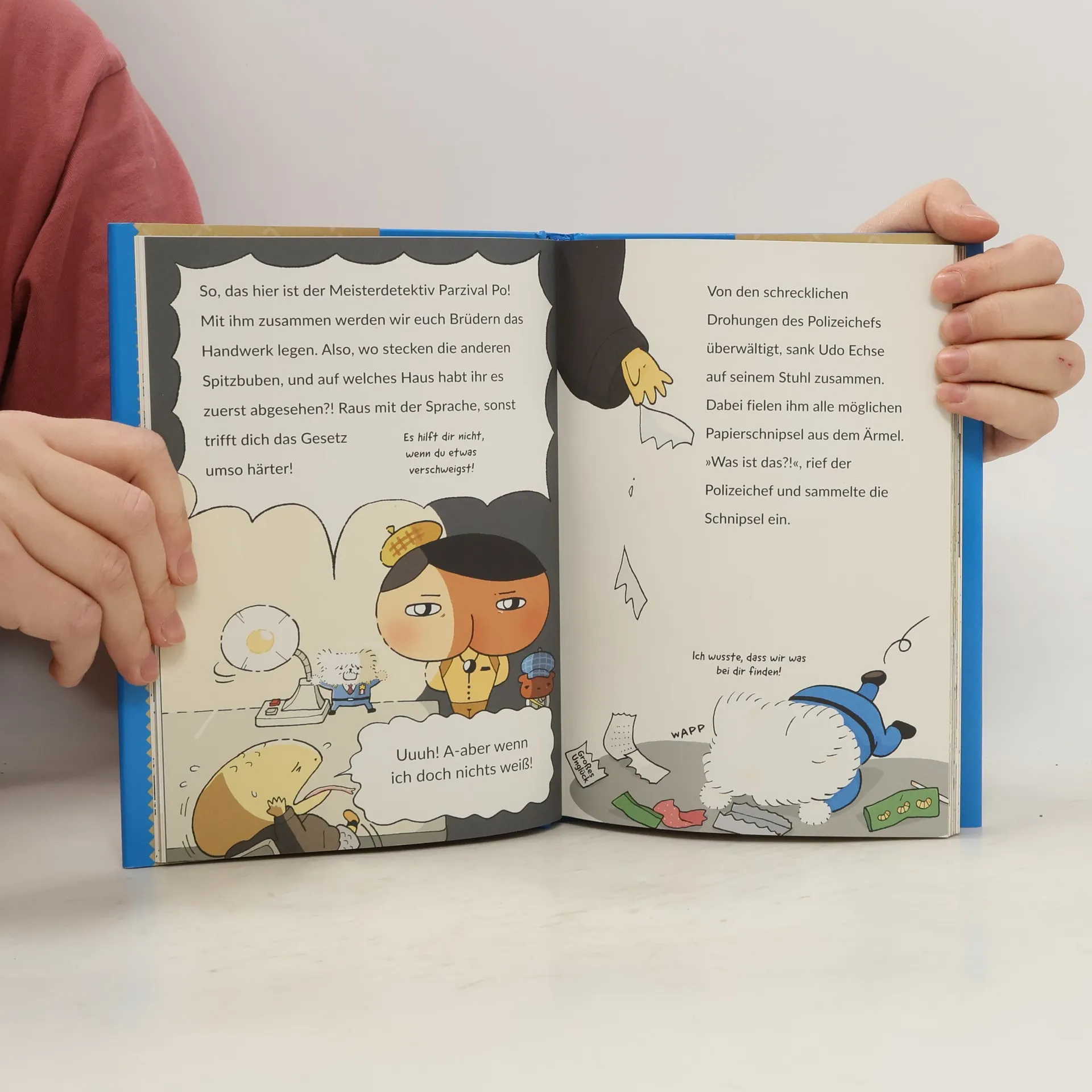 Die schärfsten »grauen Zellen« seit Hercule Poirot Der dritte Band der sensationellen Reihe um den Meisterdetektiv Parzival Po. Es heißt, dass eine gefürchtete Einbrecherbande in der Stadt ist, die die Häuser reicher Leute ausrauben will. Parzival Po tüftelt einen ausgefuchsten Plan aus. Lässt der die geniale Tarnung der Räuber auffliegen? Jeder Band erhält noch eine kleine Bonusgeschichte. In diesem Band muss Parzival Po herausfinden, was sich hinter dem Spuk im Friseursalon verbirgt. Mitratekrimi und Beschäftigungsbuch: Zwischen den einzelnen Etappen beim Lösen des Falls können die Kinder nicht nur wilde Vermutungen anstellen, wer wohl der Übeltäter ist, sondern sie können auf Wimmelbildern oder Labyrinthen kleine Popos suchen, die ziemlich raffiniert im Bild versteckt sind (Auflösung auf der letzten Seite). Zu diesem Buch finden Sie Quizfragen auf antolin. de