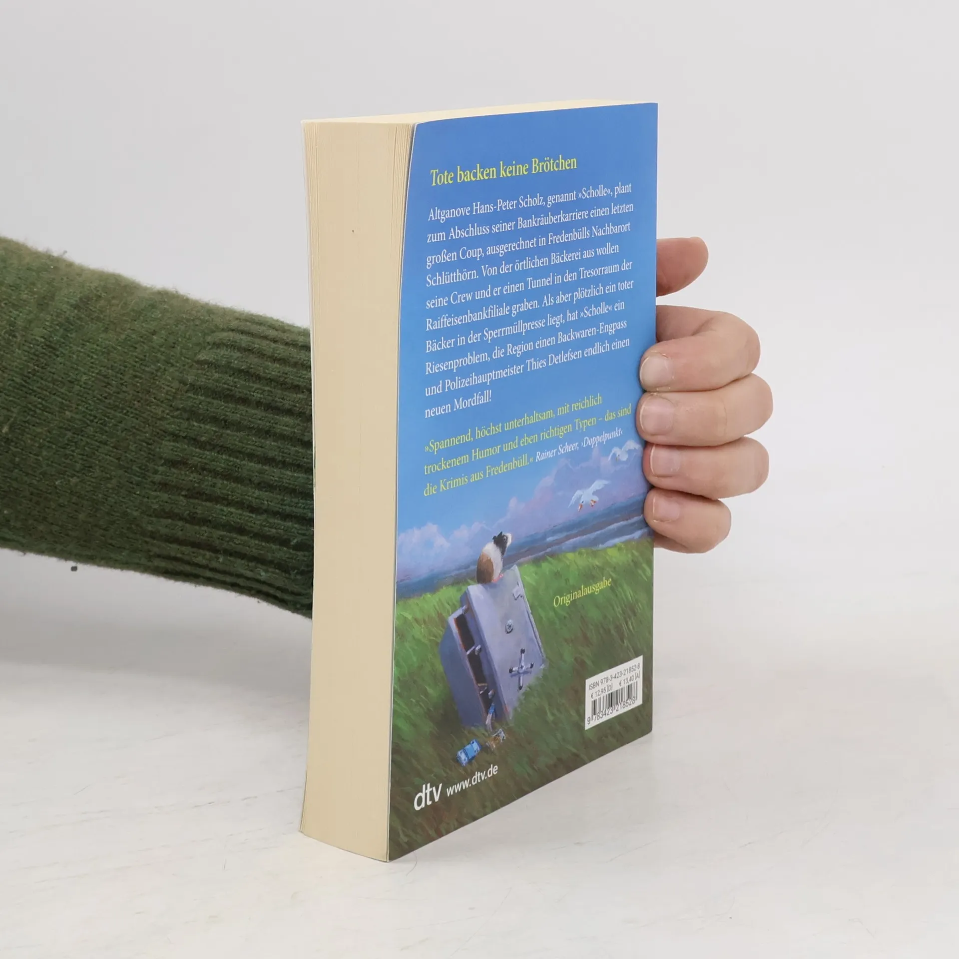 Tote backen keine Brötchen Altganove Hans–Peter Scholz, genannt »Scholle«, plant mit seinen früheren Bandenmitgliedern den letzten großen Coup seines Lebens. Doch statt dem Casino Travemünde wird es die Raiffeisenbank in Fredenbülls Nachbarort Schlütthörn. Von der örtlichen Bäckerei aus will die Bande einen Tunnel in den Tresorraum graben. Da trifft es sich gut, dass Scholles Knastbruder Timo als gelernter Bäcker gerade die verwaiste Bäckerei im Ort übernommen hat. Als aber eines Morgens ein Toter in schwarz-weiß karierter Bäckerhose in der Sperrmüllpresse aufgefunden wird, geraten Scholles Grabungsarbeiten ins Stocken, die Region hat einen Backwarenengpass und der unterbeschäftigte Polizeihauptmeister Thies Detlefsen endlich wieder einen Mordfall!