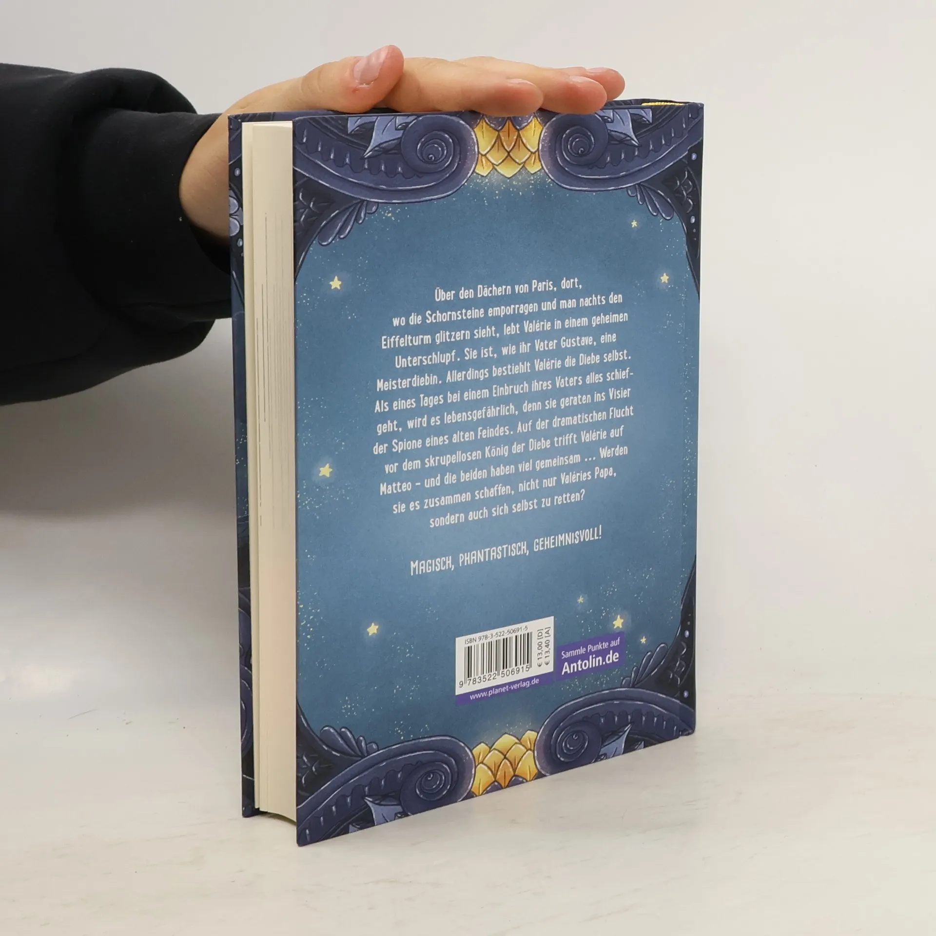 Eine kleine Meisterdiebin mit großem Gerechtigkeitssinn! Eine Stadt, in der es nur so glitzert und funkelt, die unzählige magische Winkel und verborgene Ecken hat: Paris! Und über den Dächern, dort, wo die Schornsteine emporragen, lebt Valérie. Sie ist, wie ihr Vater, eine Meisterdiebin. Allerdings bestiehlt Valérie die Diebe selbst. Als eines Tages bei einem Einbruch ihres Vaters Gustave alles schief geht, was nur schief gehen kann, geraten die beiden ins Visier der gefährlichen Spione eines alten Feindes. Auf der Flucht trifft Valérie Matteo - ebenso gut im Anschleichen und Stehlen wie sie selbst. Nur gemeinsam werden sie es schaffen, sich und Gustave zu retten. Magisch, phantastisch, geheimnisvoll – eine Geschichte für Kinder ab 10 Jahren