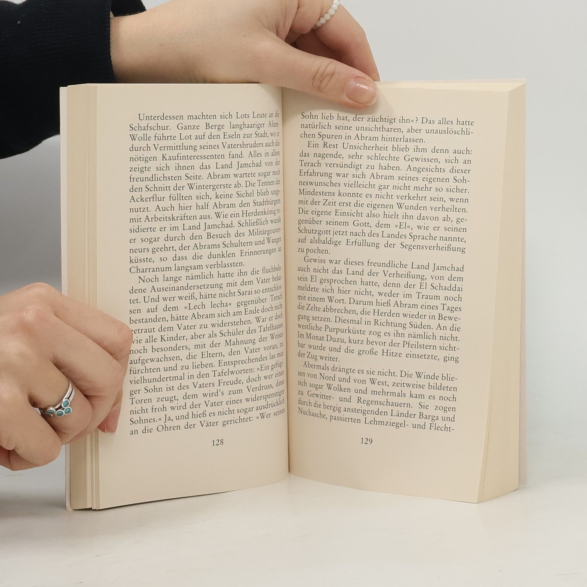 Um seinen eigenen Weg zu gehen, muss Abram mit seinem übermächtigen Vater und dessen Göttern brechen. Mit seiner Frau Sarai macht er sich auf ins Verheißene Land und überantwortet sich ganz der Führung seines eigenen Gottes, der ihm im Traum erscheint. Doch dies ist nur der Anfang eines beschwerlichen und gefährlichen Weges. Selbst am Ziel, im Gelobten Land, bleibt Abram ein Geprüfter. Die Verheißung seines Gottes, dass er viele Nachkommen haben wird, scheint sich nicht zu erfüllen, denn Sarai wird nicht schwanger.