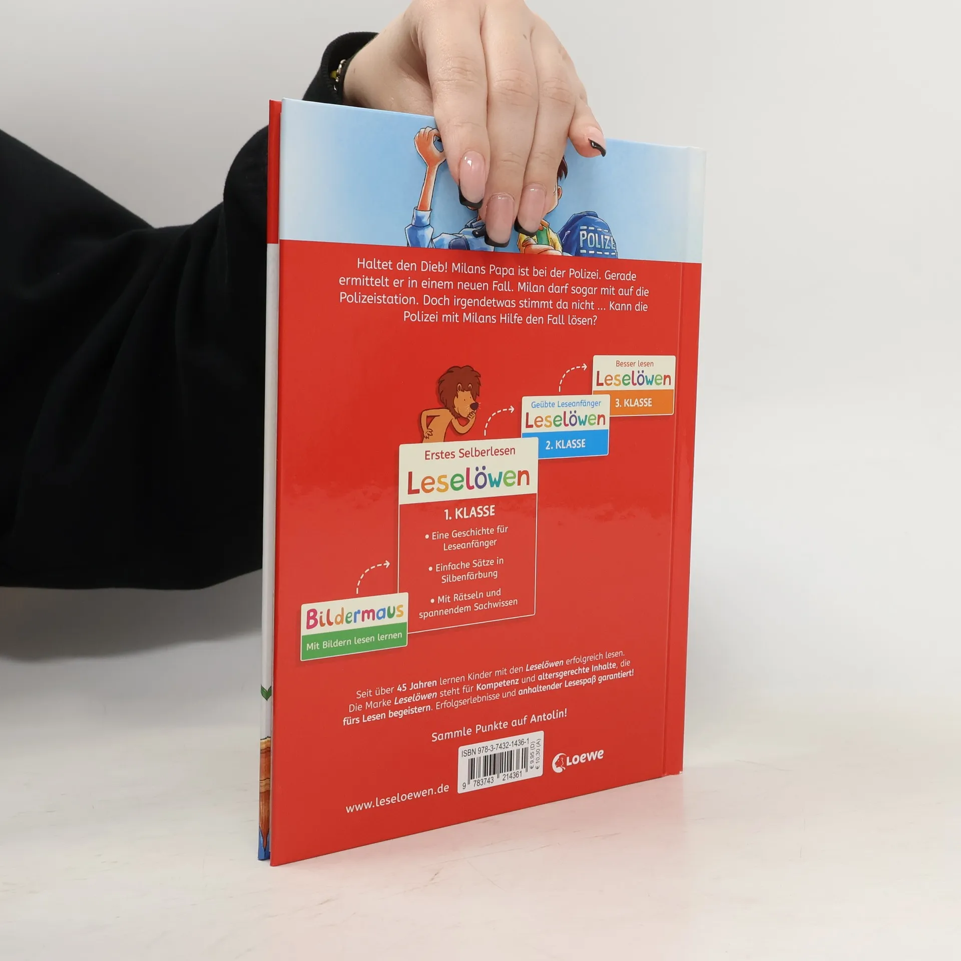 Das Buch ist bei deiner Buchhandlung vor Ort und bei vielen Online-Buchshops erhältlich! Haltet den Dieb! Milans Papa ist bei der Polizei. Gerade ermittelt er in einem neuen Fall. Milan darf sogar mit auf die Polizeistation. Doch irgendetwas stimmt da nicht … Kann die Polizei mit Milans Hilfe den Fall lösen? Schenke deinem Kind das bewährte Erfolgskonzept zum Lesenlernen. Lesenlernen ganz einfach - mit den Erstlesebüchern der Reihe Leselöwen für die 1. Klasse . Die Kinderbuch-Bestseller unterstützen mit vielen Extras das Textverständnis von Kindern ab 6 Jahren : Eine spannende Polizeigeschichte rund um einen kniffligen Fall Mit Silbenfärbung zum leichteren Lesenlernen Seit über 45 Jahren lernen Kinder mit den Leselöwen erfolgreich lesen Über 27 Millionen verkaufte Exemplare – Die Nr. 1 in Deutschland, Österreich und der Schweiz Spannende Erstlesebücher, unverzichtbar zum Lesenlernen mit Spaß Von Lehrkräften mitentwickelt und empfohlen, von Grundschüler*innen getestet Einfache, kurze Sätze in großer Fibelschrift unterstützen optimal den Leselern-Prozess Genau auf die Interessen und Lesefähigkeiten von Grundschüler*innen ausgerichtet Mit Frage- und Übungsteil zur Förderung des Textverständnisses Inklusive spannendem „Schon gewusst“-Sachwissen Abwechslungsreiche Quizfragen auf Antolin steigern die Lesemotivation Klimaneutrales Produkt – Wir unterstützen ausgewählte Klimaprojekte!