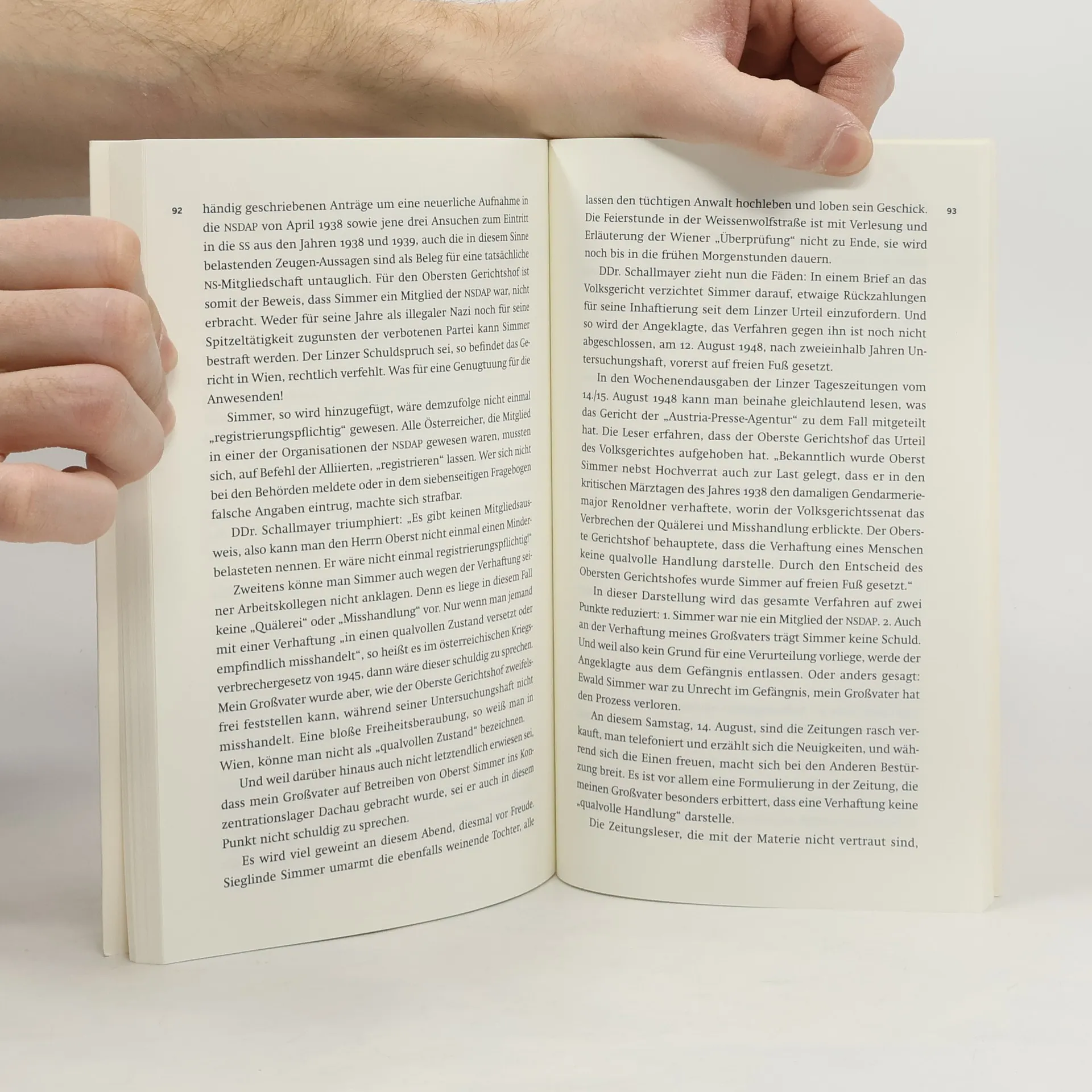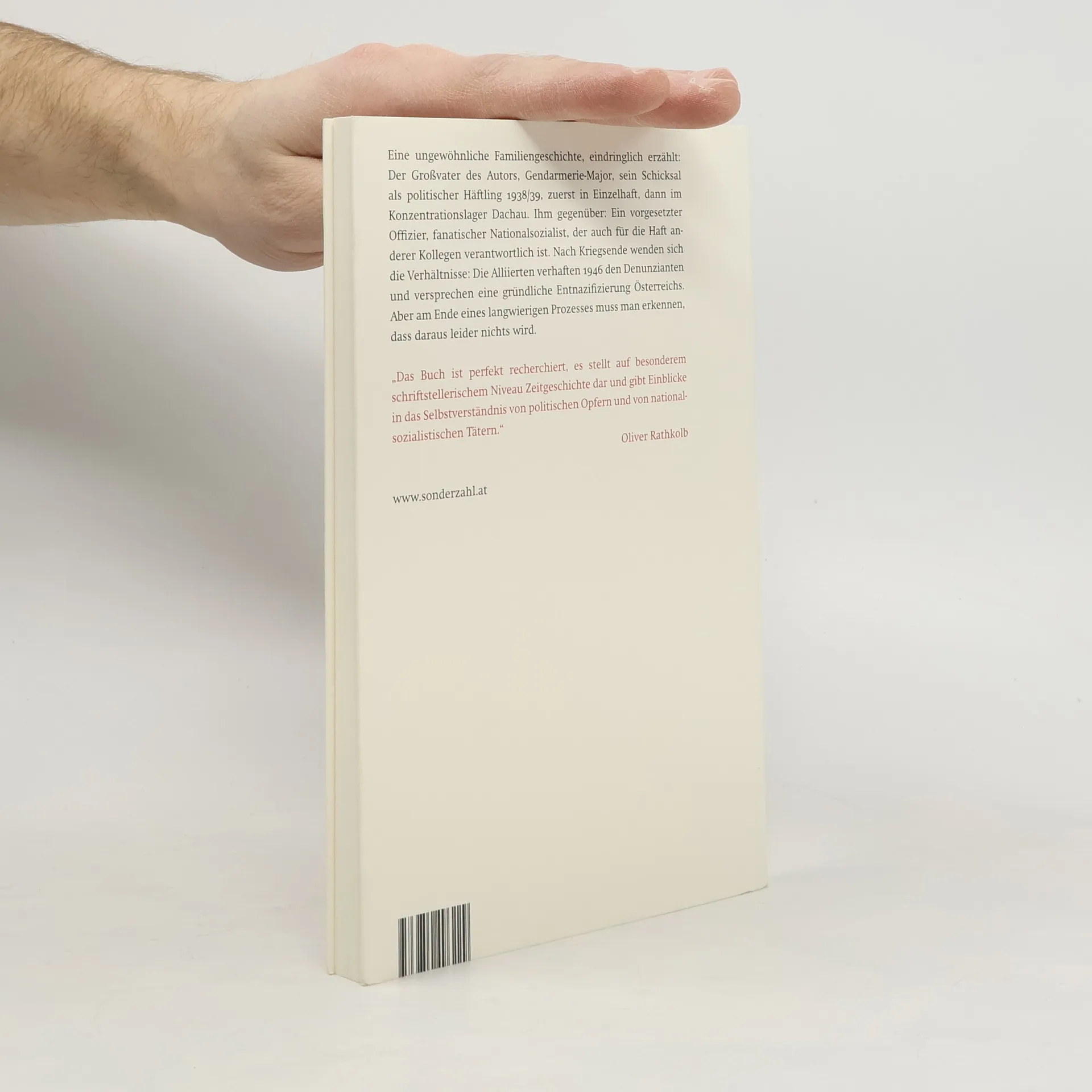 Eine ungewöhnliche Familiengeschichte wird eindringlich erzählt: Der Großvater des Autors, ein Gendarmerie-Major, wird 1938/39 als politischer Häftling in Einzelhaft und im Konzentrationslager Dachau festgehalten. Sein Vorgesetzter, ein fanatischer Nationalsozialist, ist verantwortlich für die Haft anderer Kollegen. Nach dem Krieg werden die Verhältnisse umgedreht: 1946 verhaften die Alliierten den Denunzianten und versprechen eine gründliche Entnazifizierung Österreichs, doch der langwierige Prozess führt zu enttäuschenden Ergebnissen. Am 13. März 1938 wird der Gendarmerie-Major Alois Renoldner in Linz verhaftet. Trotz seiner Versuche, sich vor einem Richter zu verteidigen, scheitert er und wird ins KZ Dachau überstellt. Nach seiner Entlassung wird er zwangspensioniert, kann aber nie über die Demütigungen und Folterungen während seiner Haft sprechen. Ewald Simmer, der fanatische Nazi, wird nach dem Krieg verhaftet, kann jedoch dank eines geschickten Anwalts und durch konsequentes Leugnen seiner NS-Vergangenheit als unbescholtener Mann in die Gesellschaft zurückkehren. Die Geschichte thematisiert das Opfer, das um ein mildes Urteil für den Täter bittet, und den Täter, der sich als Opfer präsentiert. Auch die Tante des Autors, Martha, spielt eine Rolle, als sie als 16-Jährige einen Brief an Adolf Hitler schreibt, um ihren Vater aus dem KZ zu befreien – eine wahre Begebenheit.