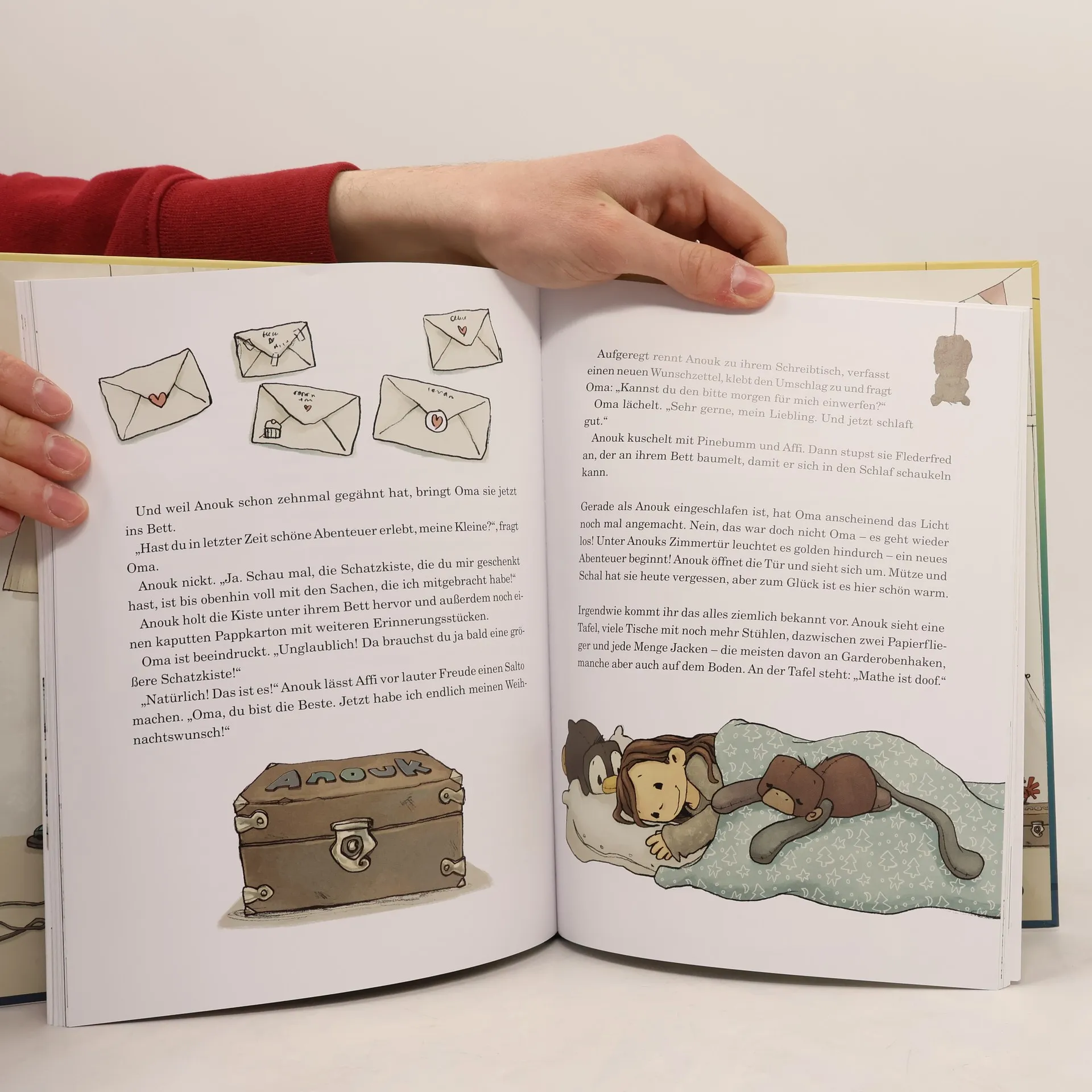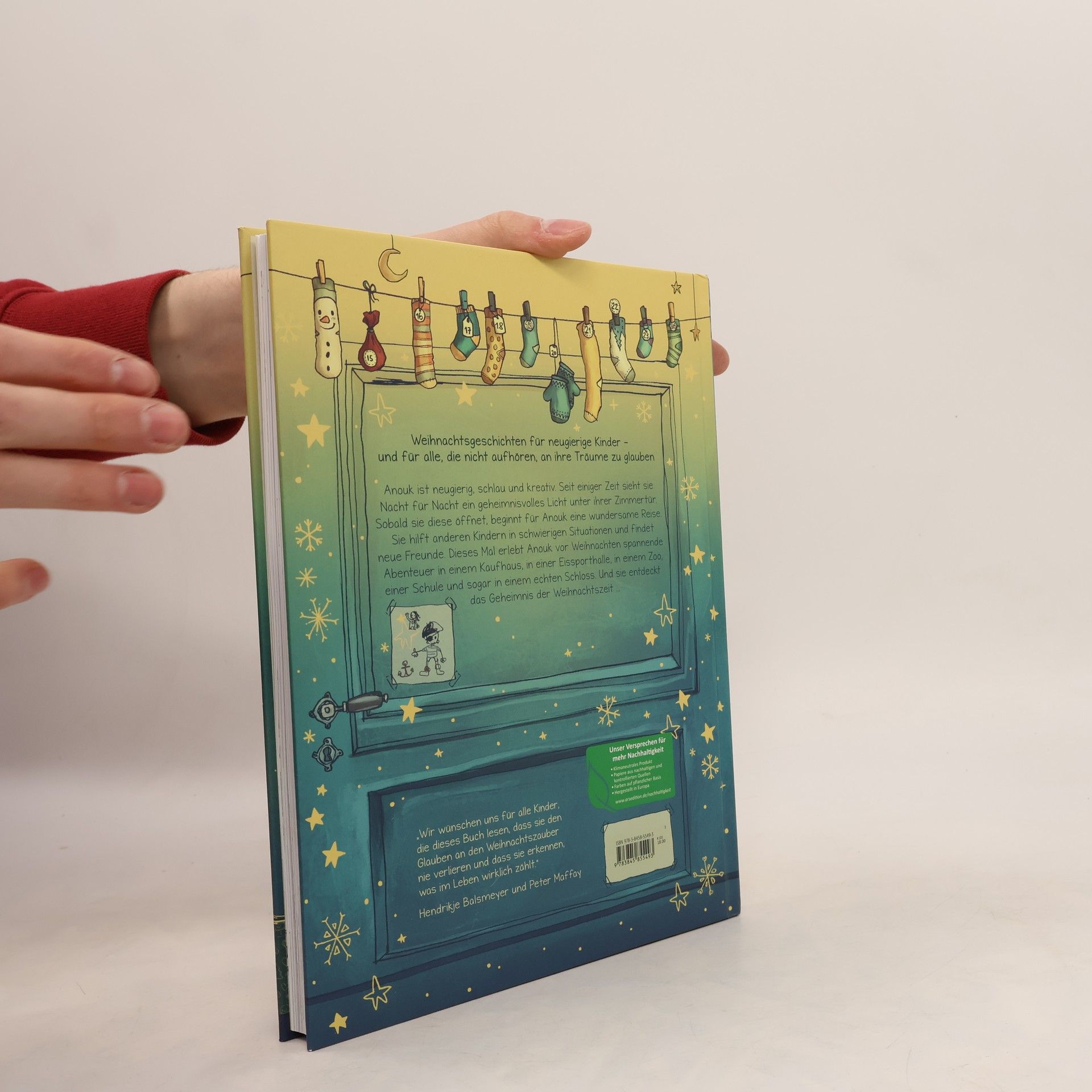 Stimmungsvolles Weihnachtsbuch von Hendrikje Balsmeyer und Peter Maffay, wunderschön illustriert von Joëlle Tourlonias. Die Geschichten vermitteln soziale Werte, regen die Fantasie an und stärken das Selbstvertrauen der Kinder. Ideal für Mädchen und Jungen ab etwa 5 Jahren, ist es ein liebevoll gestaltetes Adventsbuch für die ganze Familie, das die Vorweihnachtszeit bereichert. Anouk, neugierig und kreativ, entdeckt ein geheimnisvolles Licht unter ihrer Zimmertür, das sie auf wundersame Reisen führt. Sie hilft anderen Kindern in schwierigen Situationen und findet neue Freunde. Anouks Abenteuer führen sie vor Weihnachten in ein Kaufhaus, eine Eissporthalle, einen Zoo, eine Schule und ein Schloss, wo sie das Geheimnis der Weihnachtszeit entdeckt. Die Geschichten sind perfekt zum Vorlesen für die vier Adventssonntage und bieten abgeschlossene Kapitel, die sich ideal als Gutenachtgeschichten eignen. Sie sind pädagogisch wertvoll und fördern wichtige Botschaften sowie die Fantasie. Dieses Vorlesebuch ist ein wunderschönes Ritual für Eltern und Kinder, um den Tag gemeinsam ausklingen zu lassen und ein Gefühl von Sicherheit und Ruhe zu vermitteln. Es stärkt Werte wie Selbstvertrauen und soziale Verantwortung.