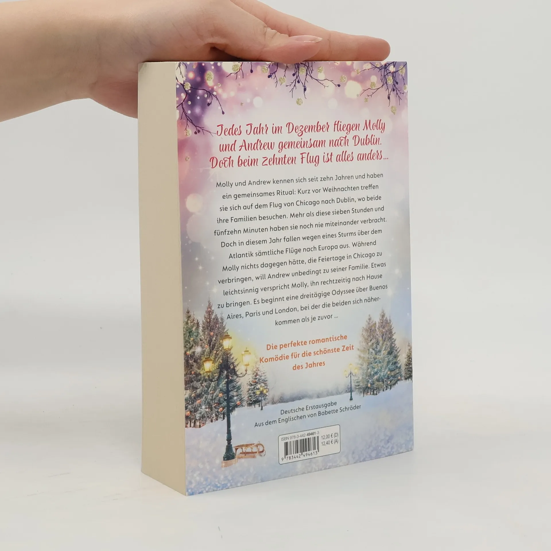 Die perfekte romantische Komödie zum Fest der Liebe Jedes Jahr im Dezember fliegen Molly und Andrew gemeinsam nach Dublin. Doch beim zehnten Flug ist alles anders … Molly und Andrew kennen sich seit zehn Jahren und haben ein gemeinsames Ritual: Kurz vor Weihnachten treffen sie sich auf dem Flug von Chicago nach Dublin, wo beide ihre Familie besuchen. Mehr als diese sieben Stunden und fünfzehn Minuten haben sie noch nie miteinander verbracht. Doch in diesem Jahr fallen wegen eines Sturms über dem Atlantik sämtliche Flüge nach Europa aus. Während Molly nichts dagegen hätte, die Feiertage in Chicago zu verbringen, will Andrew unbedingt zu seiner Familie. Etwas leichtsinnig verspricht Molly, ihn rechtzeitig nach Hause zu bringen. Es beginnt eine dreitägige Odyssee über Buenos Aires, Paris und London, bei der die beiden sich näherkommen als je zuvor …