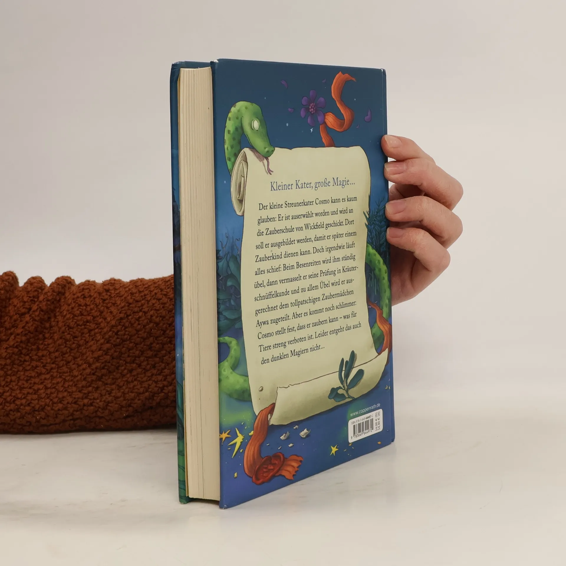 Der kleine Streunerkater Cosmo kann es kaum glauben: Er ist als Tiergefährte auserwählt worden und wird an die Zauberschule von Wickfield geschickt. Dort soll er ausgebildet werden, damit er später einem Zauberkind dienen kann. Doch irgendwie läuft alles schief: Beim Besenreiten wird ihm ständig übel, dann vermasselt er seine Prüfung in Kräuterschnüffelkunde und zu allem Übel wird er ausgerechnet dem tollpatschigen Zaubermädchen Aywa zugeteilt. Doch es kommt noch schlimmer: Cosmo stellt fest, dass er zaubern kann – was für Tiere streng verboten ist. Und das entgeht auch den dunklen Magiern nicht ...