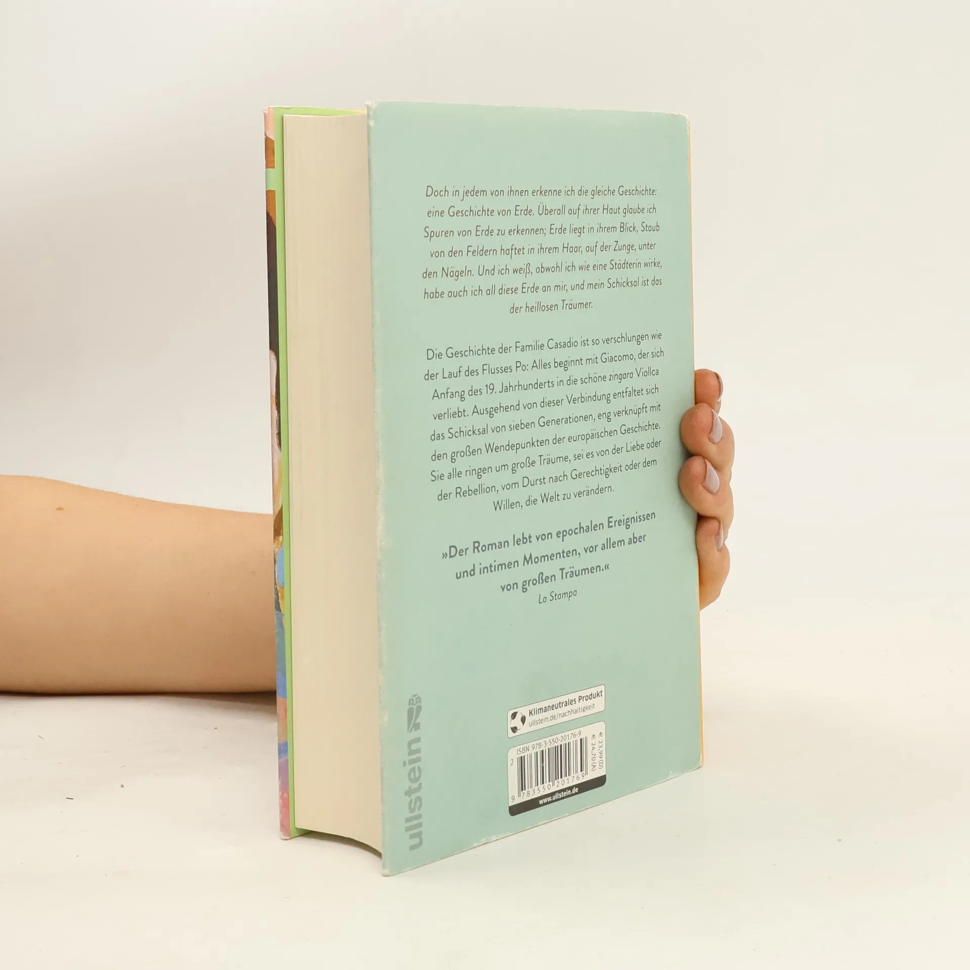 »Ein Epos voller Drama, Leidenschaft und Liebe.« Freundin Ein Dorf in der Lombardei zu Beginn des neunzehnten Jahrhunderts: Als ein Wagenzug des fahrenden Volkes nach sintflutartigen Regenfällen gezwungen ist, in Stellata zu überwintern, nimmt das Schicksal seinen Lauf. Der schwermütige Giacomo Casadio verliert sein Herz an Viollca, eine Frau mit rabenschwarzer Mähne und Federn im Haar. Die beiden bekommen einen Sohn, der sich am Grab seines Vaters weiter lebhaft mit ihm – und mit anderen Toten – unterhält. Doch damit nicht genug. Für ihren Enkel Achill, der das Gewicht eines Atemzugs messen will, und Neve, die mitten im Sommer in einem Schneesturm zur Welt kommt, und auch für die kühne Donata, die über ihren Idealen sich selbst vergisst, hält das Leben die Herausforderung bereit, weder den Kopf in den Wolken zu verlieren noch in den Fluten unterzugehen. »So klingen spannende Familiengeschichten und An den Ufern von Stellata ist voll von ihnen.« Stern