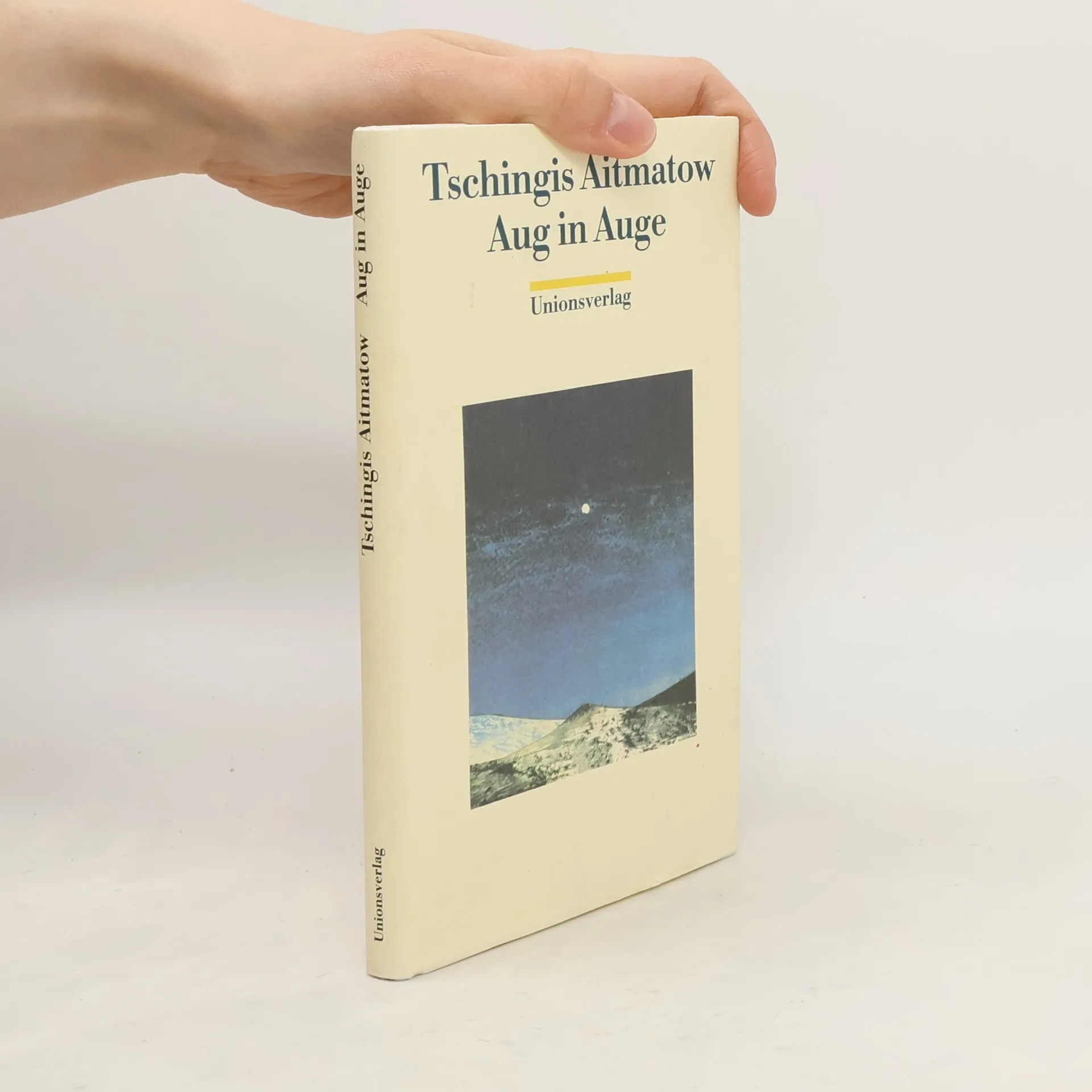 Als der Militärzug mitten in der Nacht bei der kleinen kirgisischen Bahnstation anhält, löst sich ein Schatten von einem Waggon. Ismail ist als Deserteur heimlich von der Front zurückgekehrt. Sejde will zu ihm halten. Welche Frau hat in diesen Tagen schon das Glück, ihren Mann bei sich zu haben! Sie versteckt ihn und bietet dem ganzen Dorf und den Polizeikommissaren die Stirn. Im tiefsten Winter schleppt sie Nahrung in die Berge, wo sie selbst und das ganze Dorf doch Hunger leiden. Aber Furcht, Existenznot und Misstrauen verändern den Menschen. Etwas Ungutes taucht in den Tiefen von Ismails Augen auf. »Aug in Auge« ist Aitmatows Erstling, ein Jahr vor »Dshamilja« erschienen.