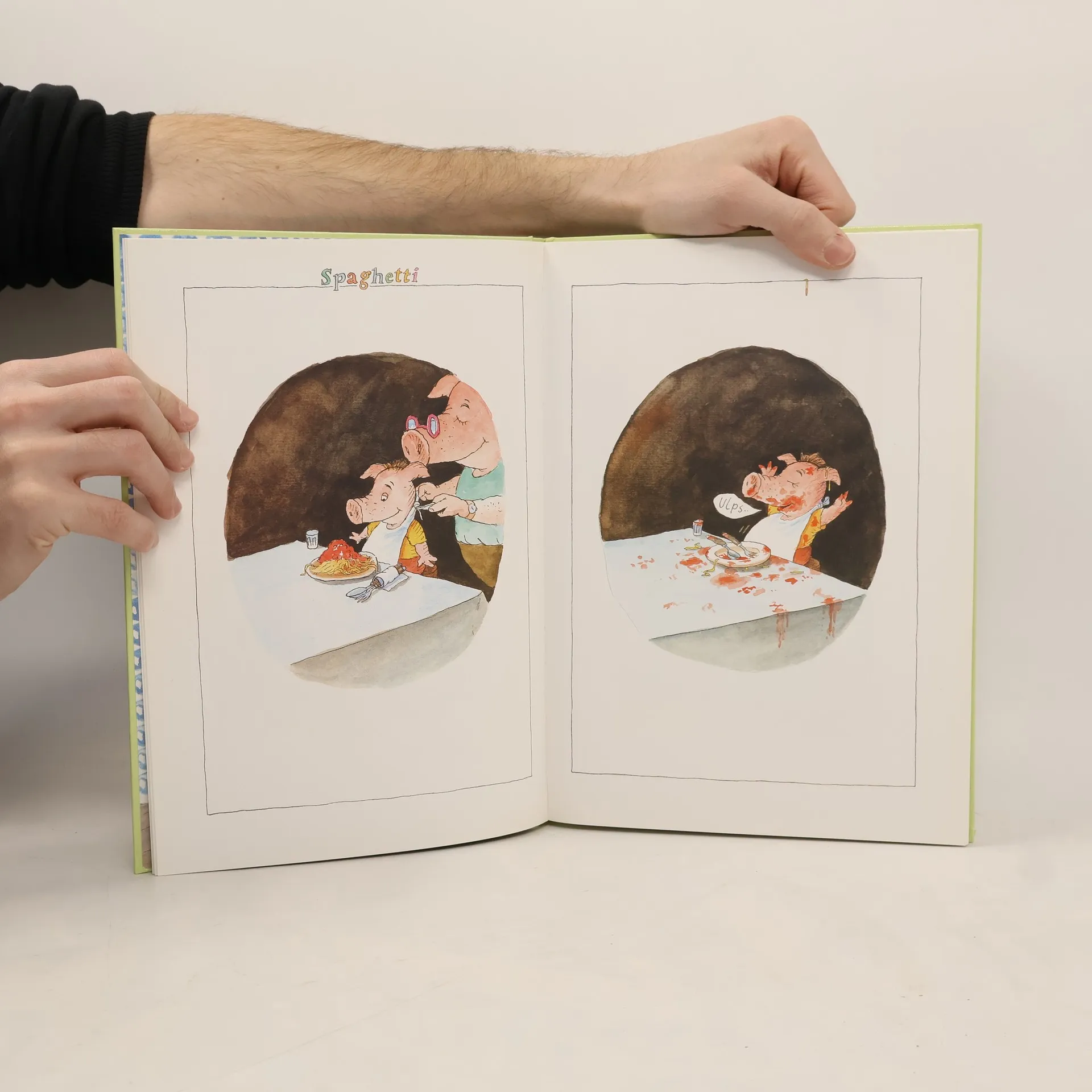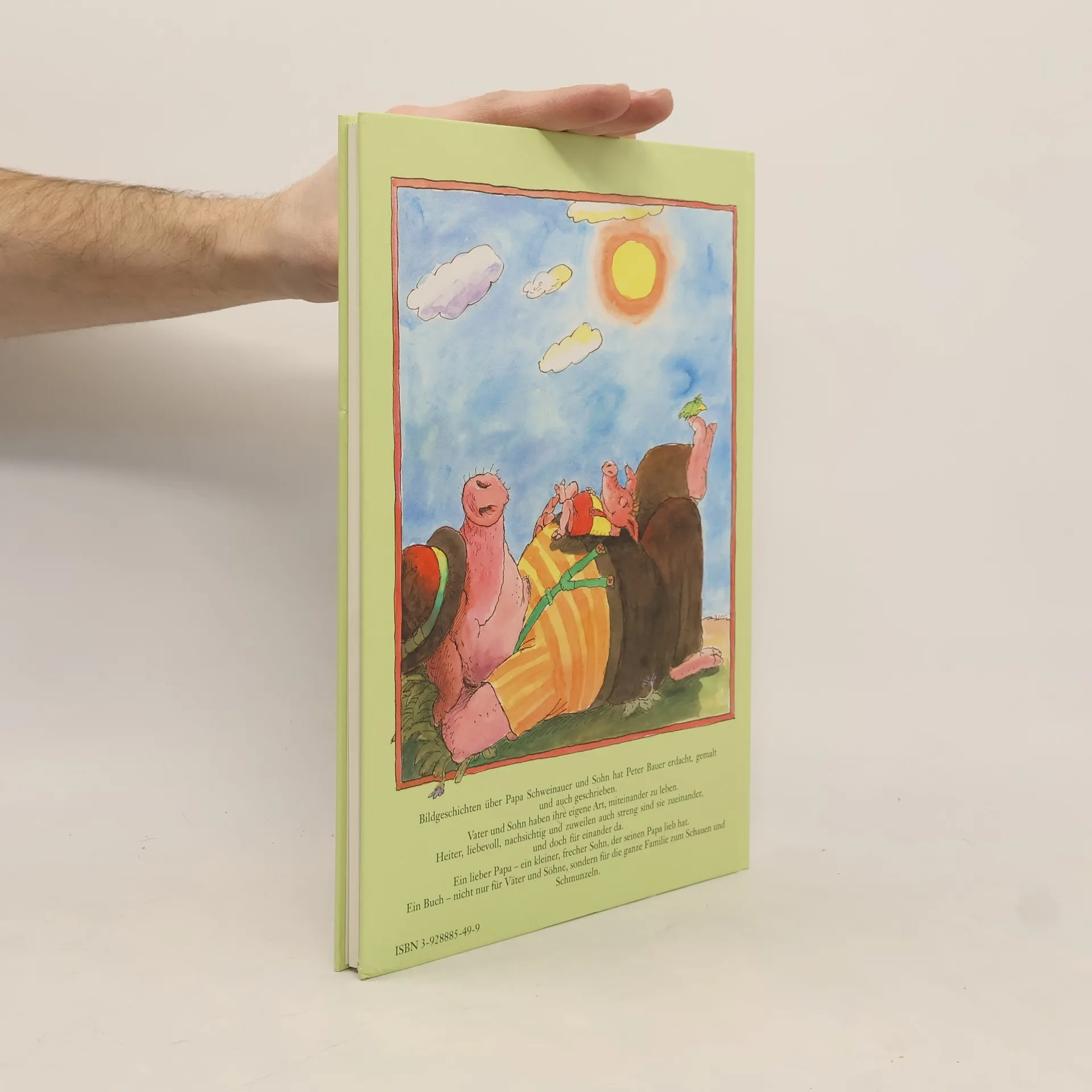 Textlose Bildergeschichten über die skurrilen, lustigen und typischen Erlebnisse von Vater und Sohn Schwein.