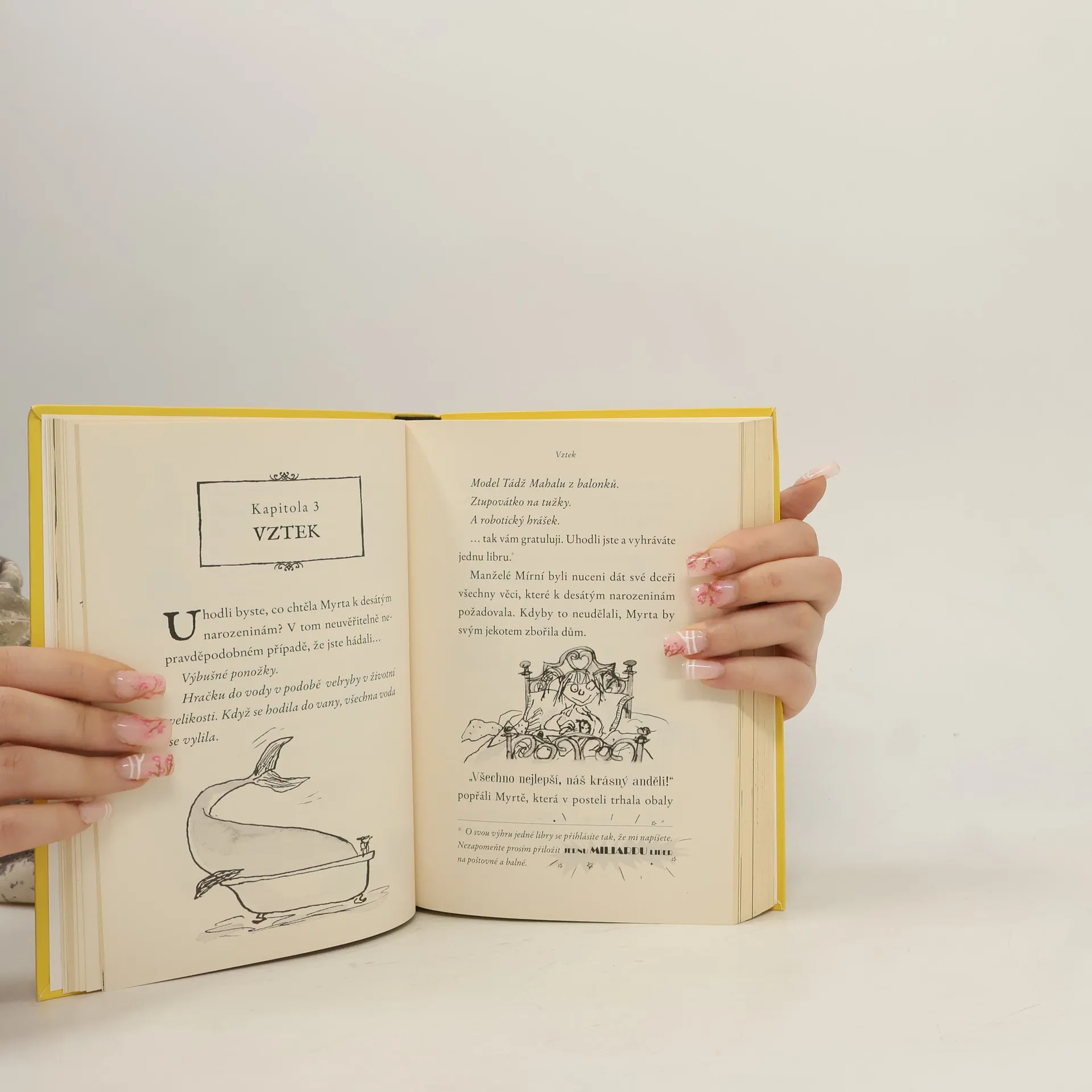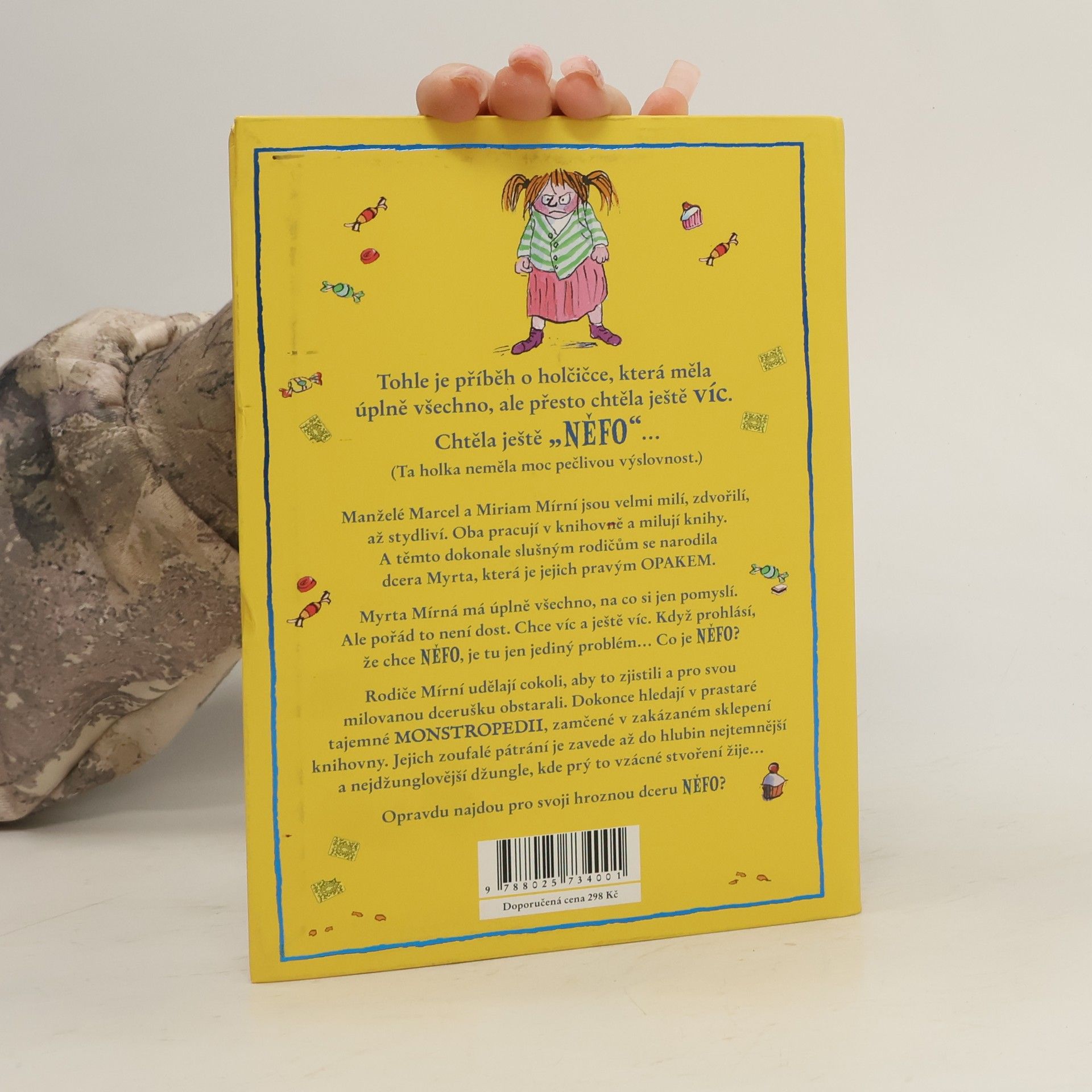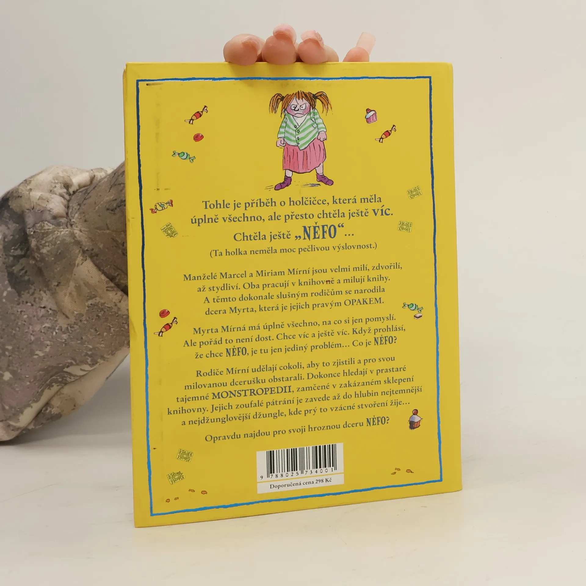 Myrta Mírná má všechno, na co si vzpomene. Jenže mít všechno jí pořád ještě není dost. Chce víc, víc a ještě víc! Když přijde se svým dalším přáním, má to malý háček. Nikdo neví, co to je. Myrtini trpěliví rodiče však udělají cokoli, jen aby jejich dceruška byla šťastná. Pátrají v zaprášených svazcích encyklopedie netvorů v tajných strašidelných sálech knihovny. Vydají se do neprobádaného nitra nejdivočejší džungle, kde se ukrývají nevídaní živočichové. Bude ale jejich zoufalá snaha korunována úspěchem? Další k popukání zábavný, poněkud tajuplný příběh o neuvěřitelně laskavých rodičích a jejich děsivě příšerné dceři napsal fenomenální David Walliams a ilustracemi opatřil báječný Tony Ross.