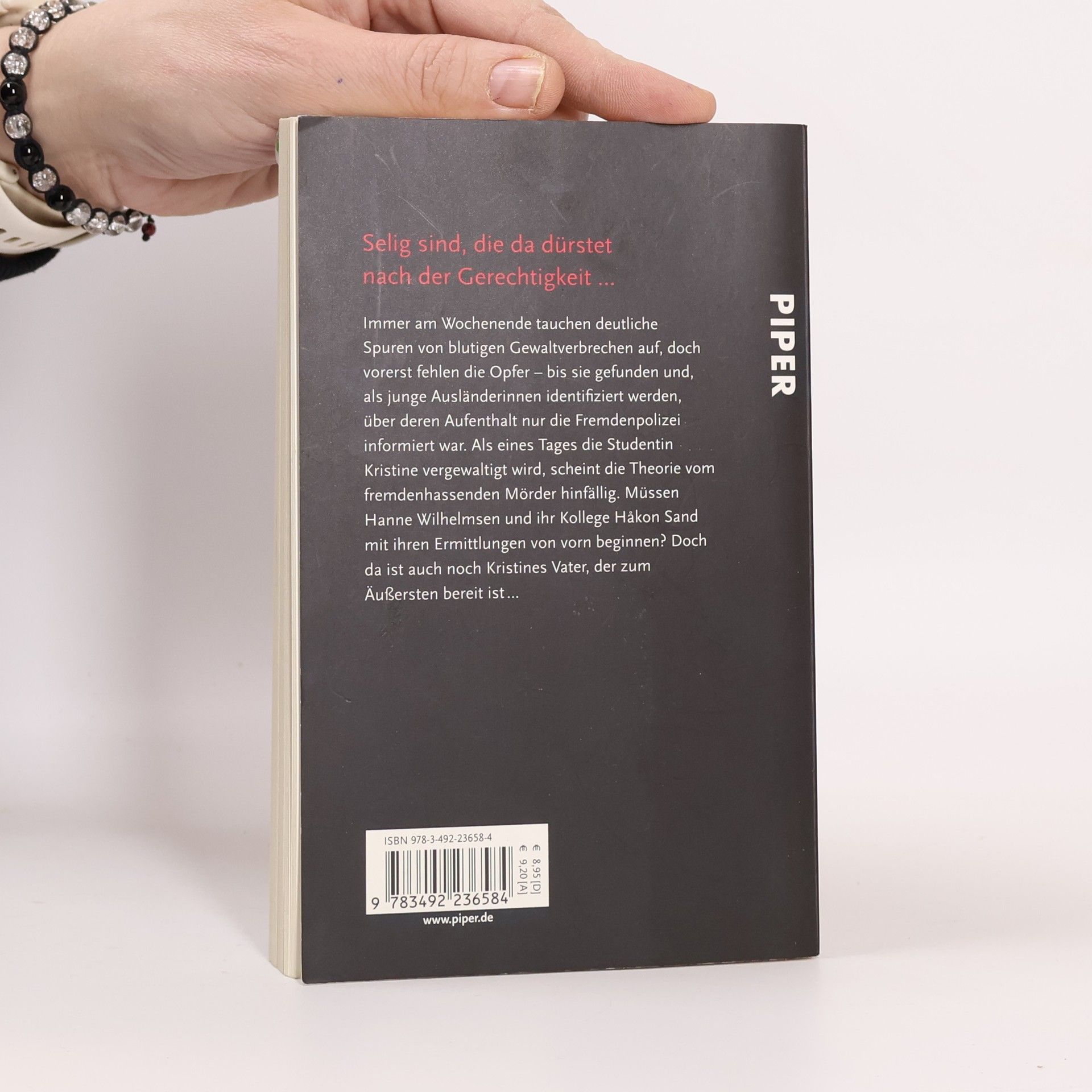 Immer am Wochenende tauchen deutliche Spuren von blutigen Gewaltverbrechen auf, doch vorerst fehlen die Opfer – bis sie gefunden und als junge Ausländerinnen identifiziert werden, über deren Aufenthalt nur die Fremdenpolizei informiert war. Als eines Tages die Studentin Kristine vergewaltigt wird, scheint die Theorie vom fremdenhassenden Mörder hinfällig. Müssen Hanne Wilhelmsen und ihr Kollege Håkon Sand mit ihren Ermittlungen von vorn beginnen? Doch da ist auch noch Kristines Vater, der zum Äußersten bereit ist …