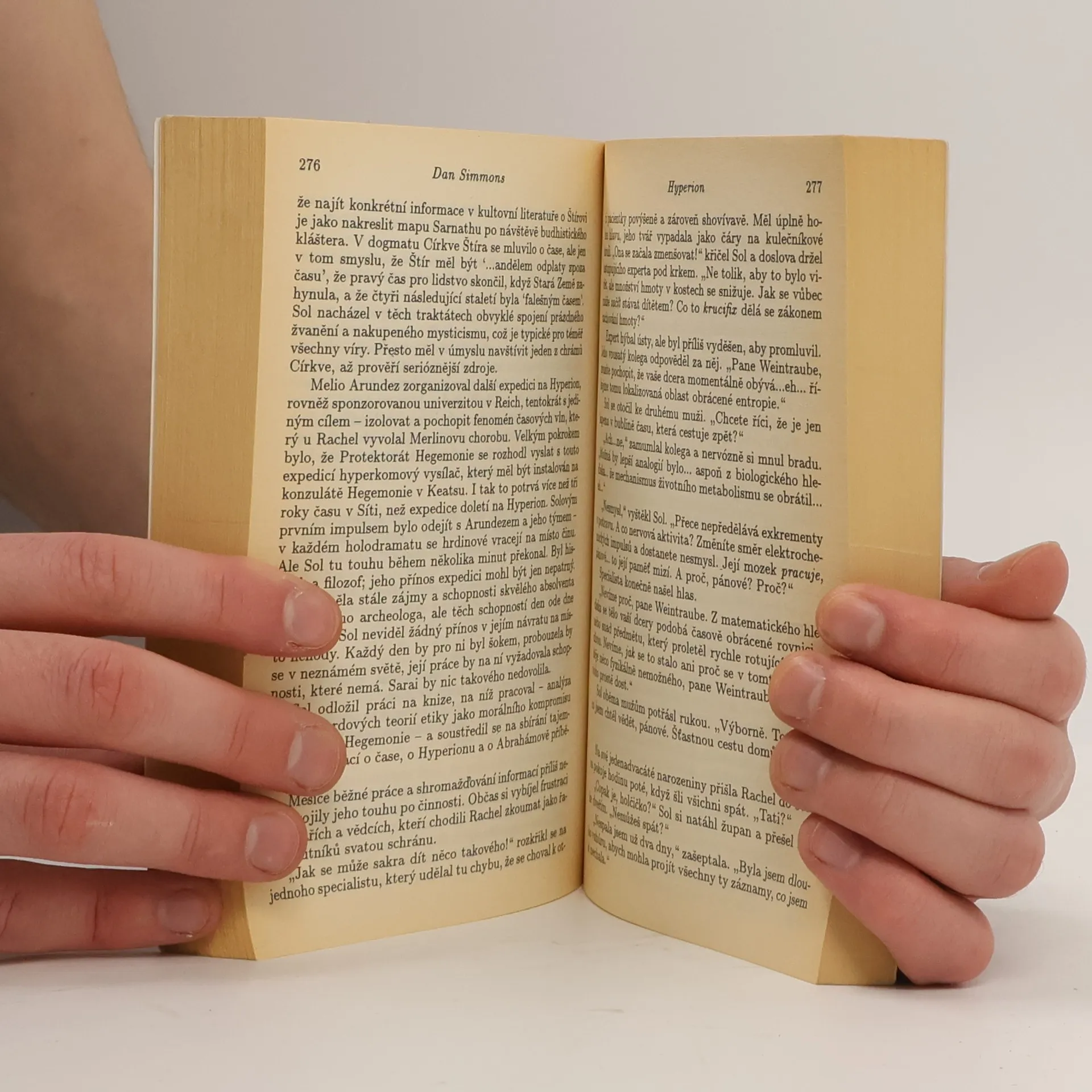 První kniha hyperionského cyklu. Na planetě zvané Hyperion, mimo dosah zákonů Hegemonie Člověka, čeká bytost zvaná Štír. Někteří ho uctívají. Někteří se ho bojí. A někteří přísahají, že ho zničí. V údolí Hrobek Času se obrovské Artefakty s neznámým obsahem pohybují proti proudu Času. Štír čeká... V předvečer Armageddonu, kdy se celá Galaxie připravuje k válce, se sedm poutníků vydává na poslední Pouť na Hyperion, aby nalezli odpovědi na nevyřešené hádanky svých životů. Každý v sobě nese zoufalou naději - a strašné tajemství. A jeden z nich možná drží v rukou osud celého lidstva...