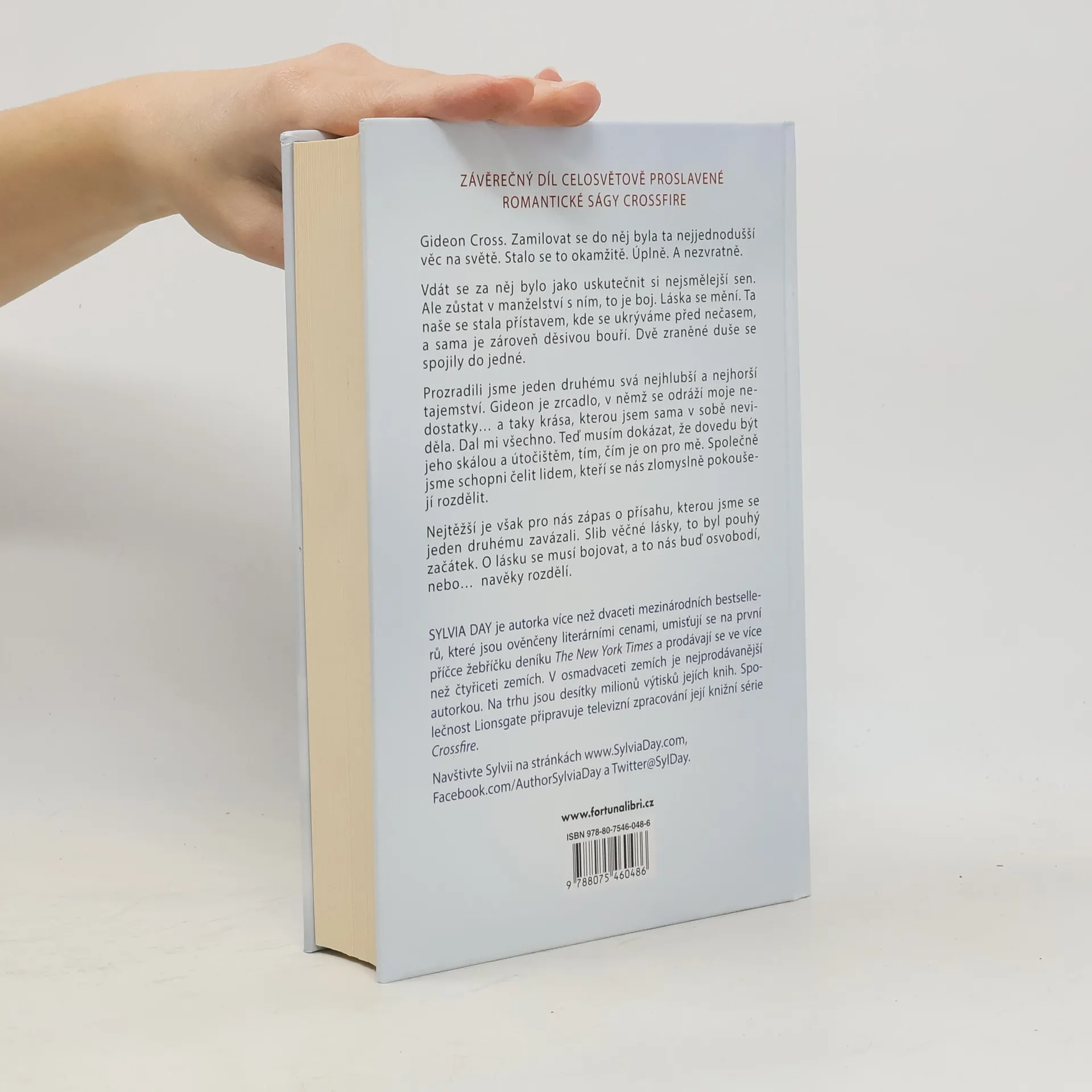 Dvě zraněné duše se spojily do jedné ZÁVĚREČNÝ DÍL CELOSVĚTOVĚ PROSLAVENÉ ROMANTICKÉ SÁGY CROSSFIRE Gideon Cross. Zamilovat se do něj byla ta nejjednodušší věc na světě. Stalo se to okamžitě. Úplně. A nezvratně. Vdát se za něj bylo jako uskutečnit si nejsmělejší sen. Ale zůstat v manželství s ním, to je boj. Láska se mění. Ta naše se stala přístavem, kde se ukrýváme před nečasem, a sama je zároveň děsivou bouří. Dvě zraněné duše se spojily do jedné. Prozradili jsme jeden druhému svá nejhlubší a nejhorší tajemství. Gideon je zrcadlo, v němž se odráží moje nedostatky… a taky krása, kterou jsem sama v sobě neviděla. Dal mi všechno. Teď musím dokázat, že dovedu být jeho skálou a útočištěm, tím, čím je on pro mě. Společně jsme schopni čelit lidem, kteří se nás zlomyslně pokoušejí rozdělit. Nejtěžší je však pro nás zápas o přísahu, kterou jsme se jeden druhému zavázali. Slib věčné lásky, to byl pouhý začátek. O lásku se musí bojovat, a to nás buď osvobodí, nebo… navěky rozdělí.