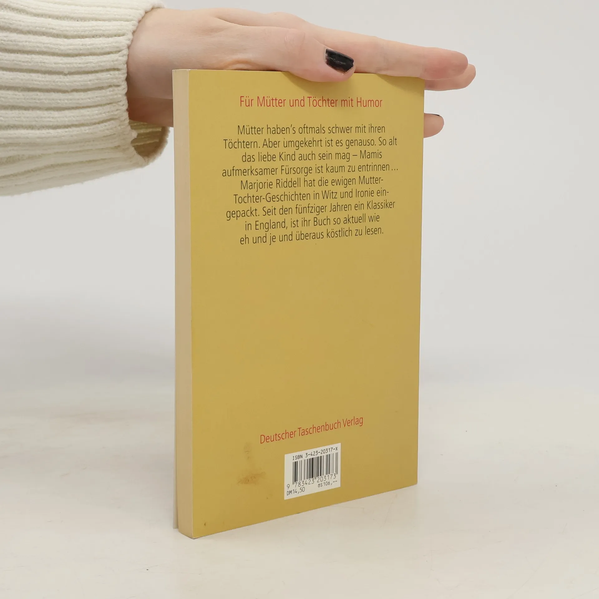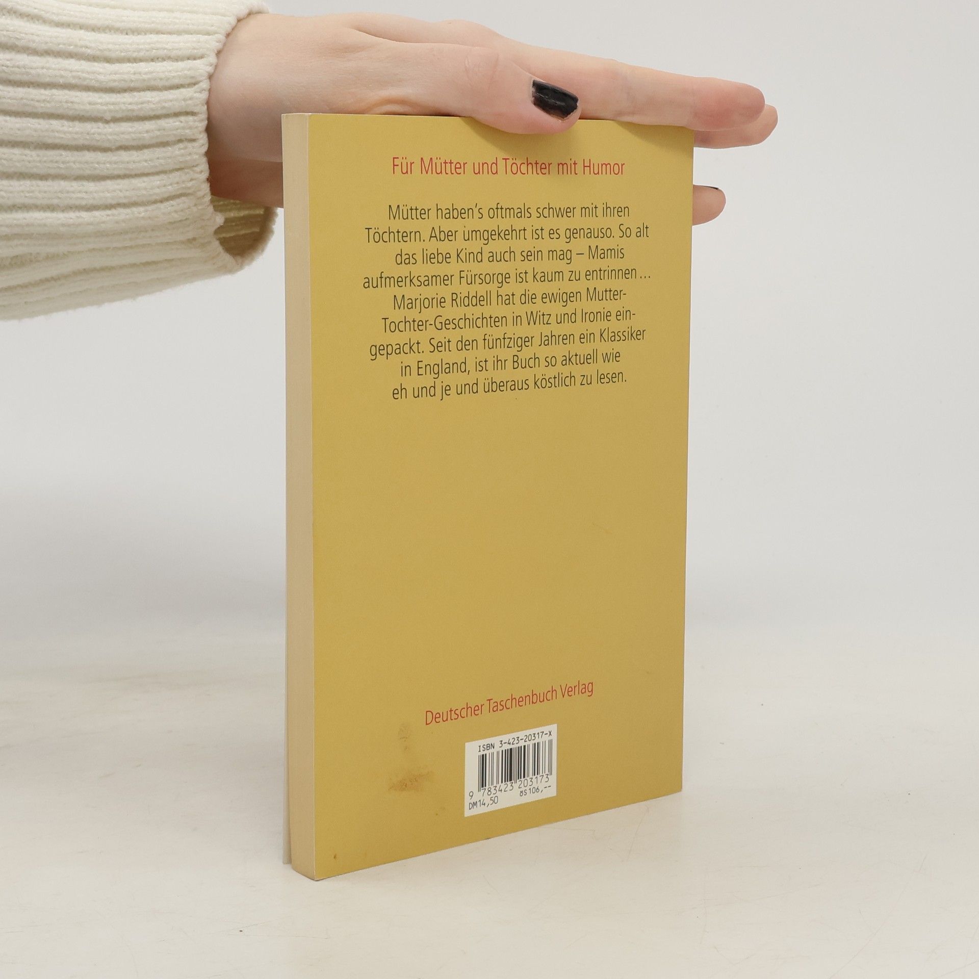 Marjorie Riddell packt die ewigen Mutter-Tochter-Geschichten in Witz und Ironie ein: Sei es diese gewisse Art der Fürsorglichkeit oder der mehr oder minder gut verschleierte Versuch von Bevormundung, sei es der zarte Hinweis darauf, was die Nachbarn wohl denken werden, seien es gutgemeinte Verkupplungsversuche mit Männern, die man ganz bestimmt nicht will. Über Generationen hinweg erfüllen fast alle Mütter diese Stereotypen, und fast alle Töchter reagieren bei solchen Übergriffen mit Erheiterung bis Entnervung. - "Mamis ganzer Stolz" enthält eine Sammlung von Kolumnen, die zuerst in dem englischen Satiremagazin "Punch" erschienen sind. In England längst ein Klassiker und Kultbuch.§