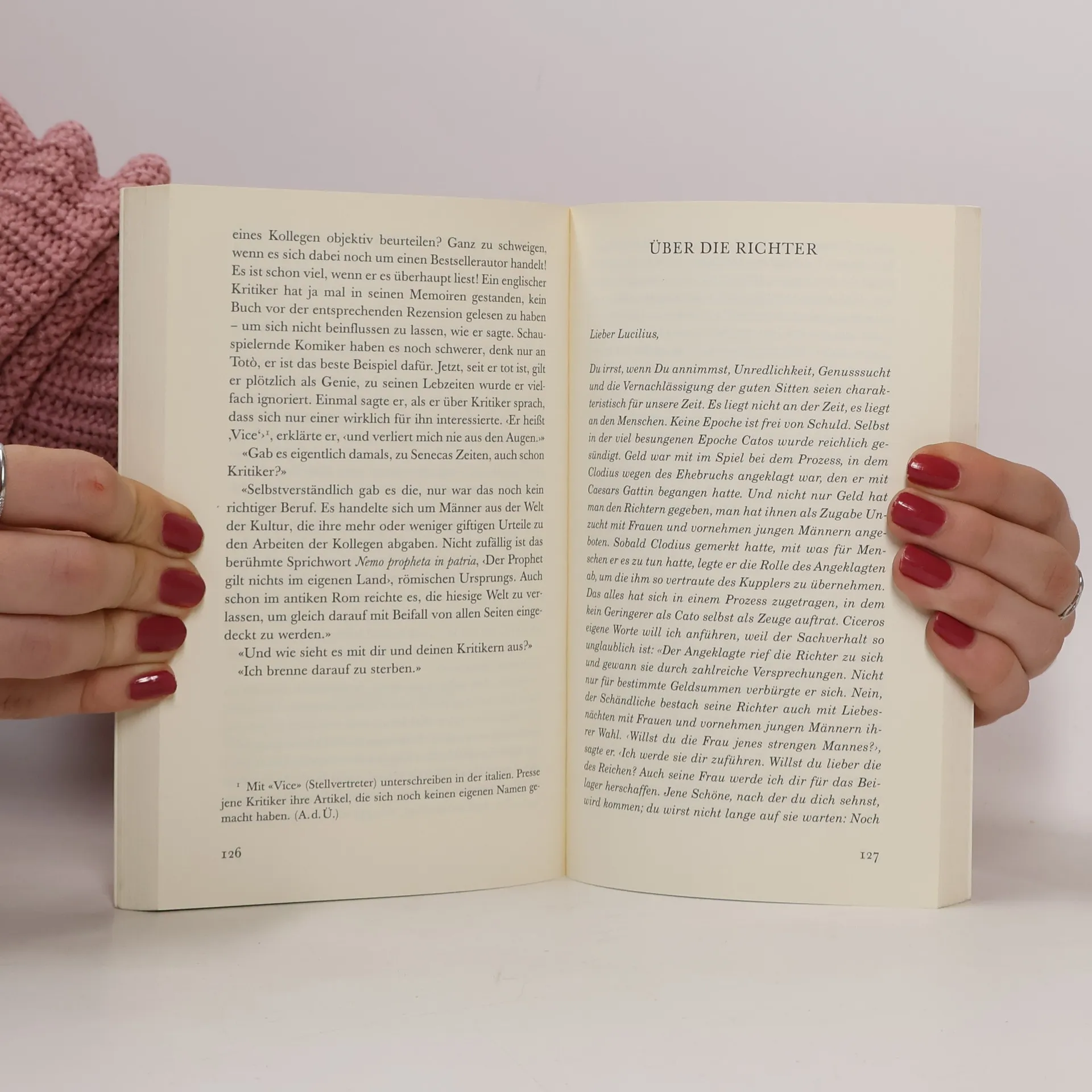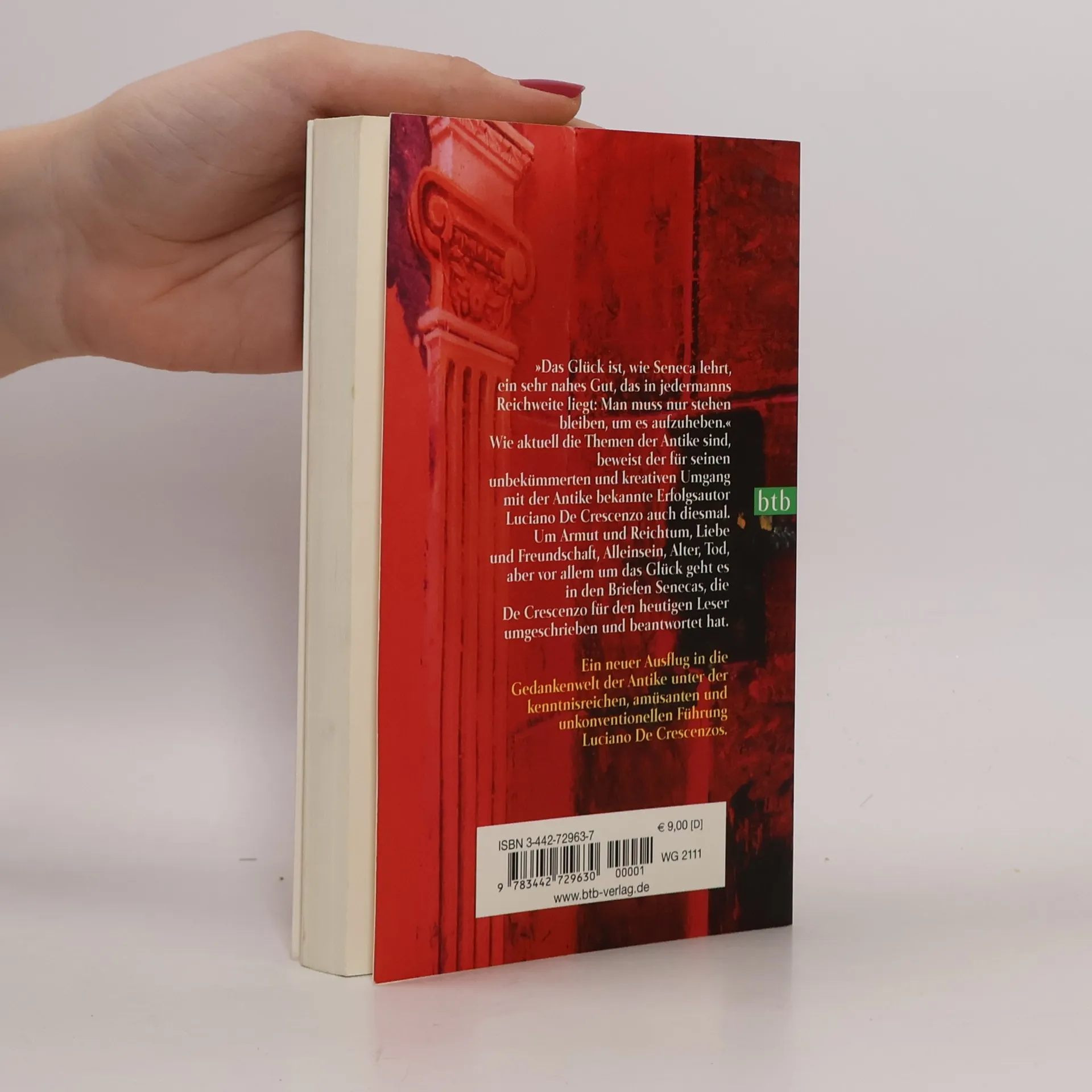 Bestsellerautor Luciano De Crescenzo mit einem Glücks-Ratgeber der besonderen Art - Philosophie respektlos gegen den Strich gebürstet! Beim Kramen im Keller seines Hauses nahe den römischen Kaiserforen entdeckt Luciano De Crescenzo eine Kiste mit antiken Pergamenten. Der römische Philosoph Seneca hat sich hier mit seinen berühmten „moralischen“ Briefen an Lucilius (entstanden ab 62 n. Chr.) verewigt. De Crescenzo ist begeistert von dem lebensnahen und kurzweiligen Werk des alten Stoikers und macht sich daran, dessen Briefe zu beantworten. Zur Diskussion der antiken Themen und Thesen hat sich De Crescenzo ein modernes Gegenüber geschaffen, die junge und hübsche Archäologin Alessia. Während sie ihm beim Sichten und Konservieren der kostbaren Briefe hilft, entwickelt sie sich bald zu seiner philosophischen Sparringspartnerin. Ihre temperamentvollen Gespräche drehen sich um Alter und Tod, Wahrheit und Eitelkeit, Einsamkeit und Liebe. Doch im Zentrum ihrer Gedanken steht wie bei Seneca immer der Zusammenhang von Zeit und Glück.