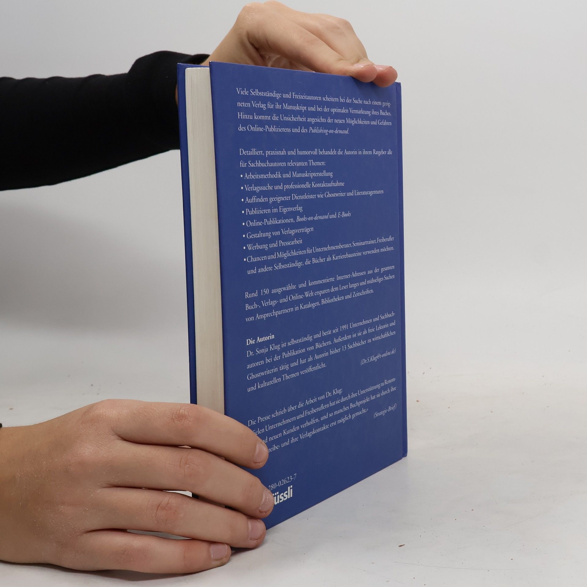 Viele Selbständige und Freizeitautoren scheitern bei der Suche nach einem geeigneten Verlag für ihr Manuskript und bei der optimalen Vermarktung ihres Buches. Ausserdem sind sie unsicher angesichts der Möglichkeiten und Risiken des Online-Publizierens und des Publishing on demand. Auf diese Problematik geht die Autorin detailliert und praxisnah ein. Im Mittelpunkt des Ratgebers stehen die Themen Arbeitsmethodik, Manuskripterstellung, Verlagssuche, Publizieren im Eigenverlag, im Internet und als Book on demand.