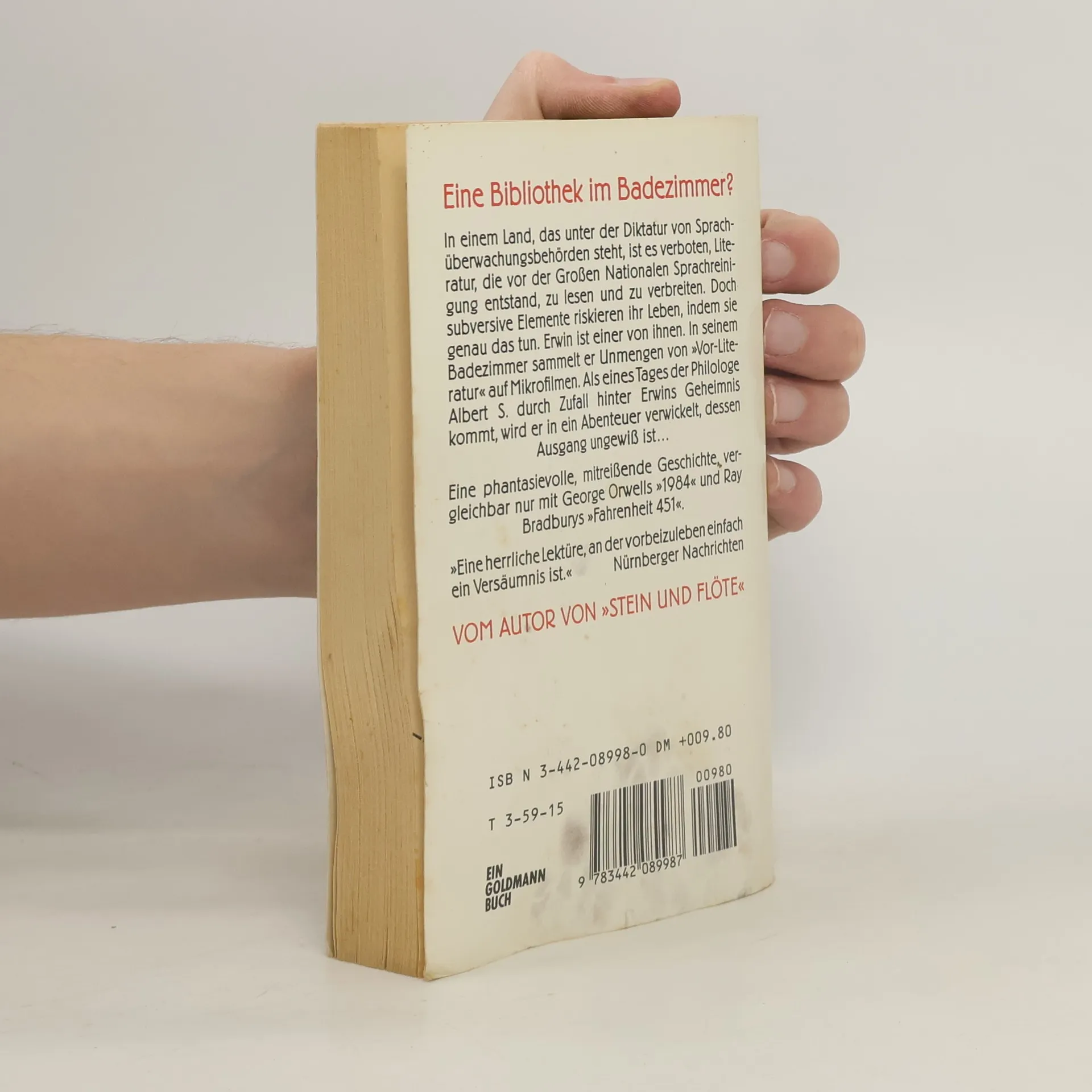 Ein fantasievoller, fesselnder Roman von Hans Bemmann, dem Autor des Beststellers »Stein und Flöte«: In einem Staat, in dem Bücher verboten sind, gibt es nur wenige, die Widerstand leisten. Unter ihnen ist Erwin, der in seinem Badezimmer ein Literaturarchiv von verbotenen Schriften angelegt hat. Von seinem nahezu unzugänglichen Hinterhaus aus wird unter Lebensgefahr die Literatur aus der Zeit vor »Großen Nationalen Sprachreinigung« weiterverarbeitet. Als eines Tages der pflichtbewusste Beamte Albert S. auf Erwins Geheimnis stößt, ist er fasziniert davon und beginnt, Nachforschungen über die Literatur der »Vor-Zeit« anzustellen – ohne zu ahnen, auf welches Abenteuer er sich dabei einlässt …