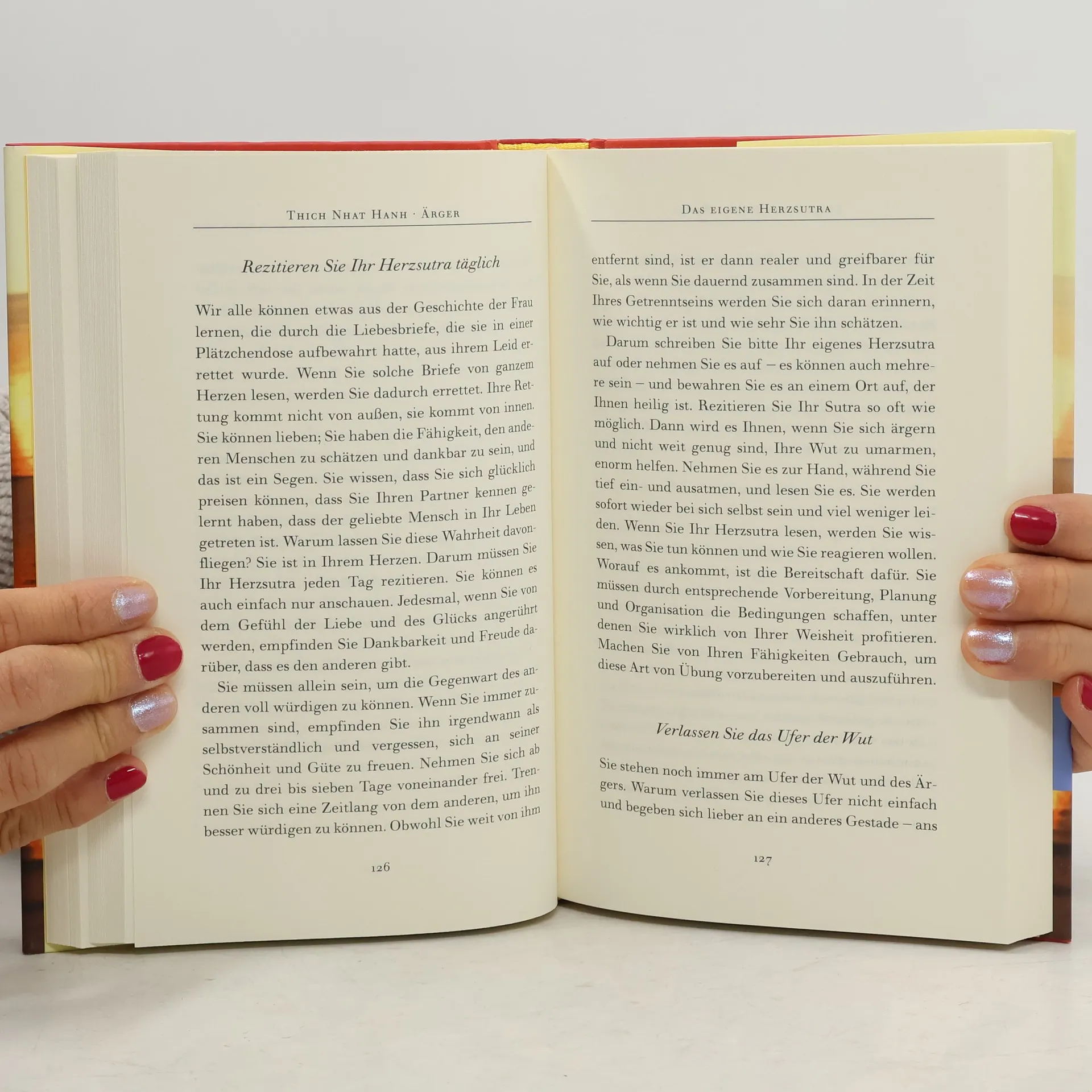 Wer Ärger empfindet, leidet. Voll Bitterkeit beschuldigt er andere für seine Probleme. Aber es sind nicht die anderen, die Schuld an unserem Leid tragen. Wir selbst sind es, die zulassen, dass der Ärger unseren Geist und unseren Körper vergiftet. Thich Nhat Hanh lehrt uns, Ärger nicht zu unterdrücken oder zu verstecken, sondern ihn in die positiven Energien des Verstehens und des Mitgefühls umzuwandeln. Anhand zahlreicher Beispiele belegt er, wie sich Frustketten innerhalb der Familie oder über Generationen hinweg bilden. Thich macht deutlich, dass die grundlegende Bedingung für Glück Freiheit ist, nicht nur politische Freiheit, sondern vor allem Freiheit von eigenen Verhaftungen, von Ärger, Kummer, Eifersucht und anderen negativen Gefühlen. Sein Buch vermittelt die Kraft der Erkenntnis und enthält eine Fülle von Übungen, um die Flammen des Ärgers zu löschen und emotionale Verwundungen zu heilen.