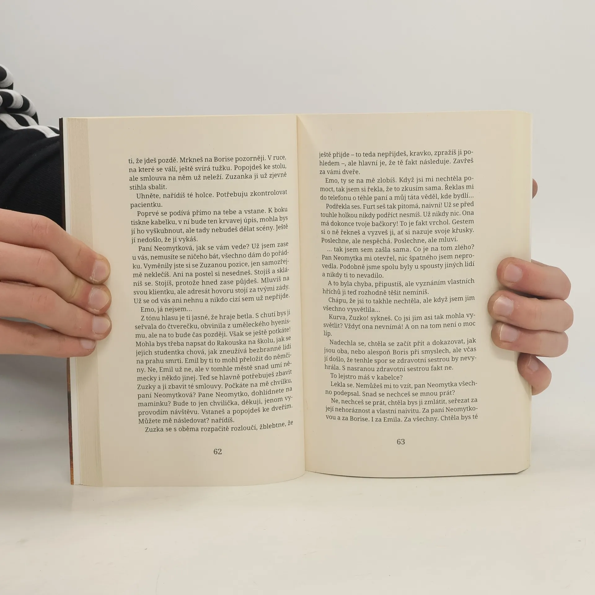 Nový román známého publicisty a spisovatele Aleše Palána zavádí čtenáře do prostředí domácího hospice. Ema, pracovnice domácího hospicu, který poskytuje péči umírajícím klientům v jejich domovech, zažívá během jediného dne několik zásadních životních zvratů. Po rozchodu se svým přítelem míří neplánovaně k umírající klientce paní Neomytkové a jejímu psychicky labilnímu synu Borisovi. Stará paní není jen pacientka, ale zná také tajemství propojující obě rodiny, které Emě až doposud zůstávalo skryté. Mladou ženu zaměstnává nejen starost o umírající, v patách je jí neustále studentka Zuzana, která si jako místo svého studijního projektu vybrala právě domácí hospic a jeho klienty. Ani Boris není Emě v péči o matku nápomocný, zvlášť když odejde z domu, a místo něj se přede dveřmi objeví policie… Aleš Palán citlivě zachycuje situace kolem odchodu nevyléčitelně nemocného člověka, poutavě a do hloubky odkrývá psychiku ženy procházející náročným životním obdobím a zároveň vedle existenciálních problémů odkrývá i ty celospolečenské, jako je dědictví komunismu či privatizace a „podnikání“ v devadesátých letech.