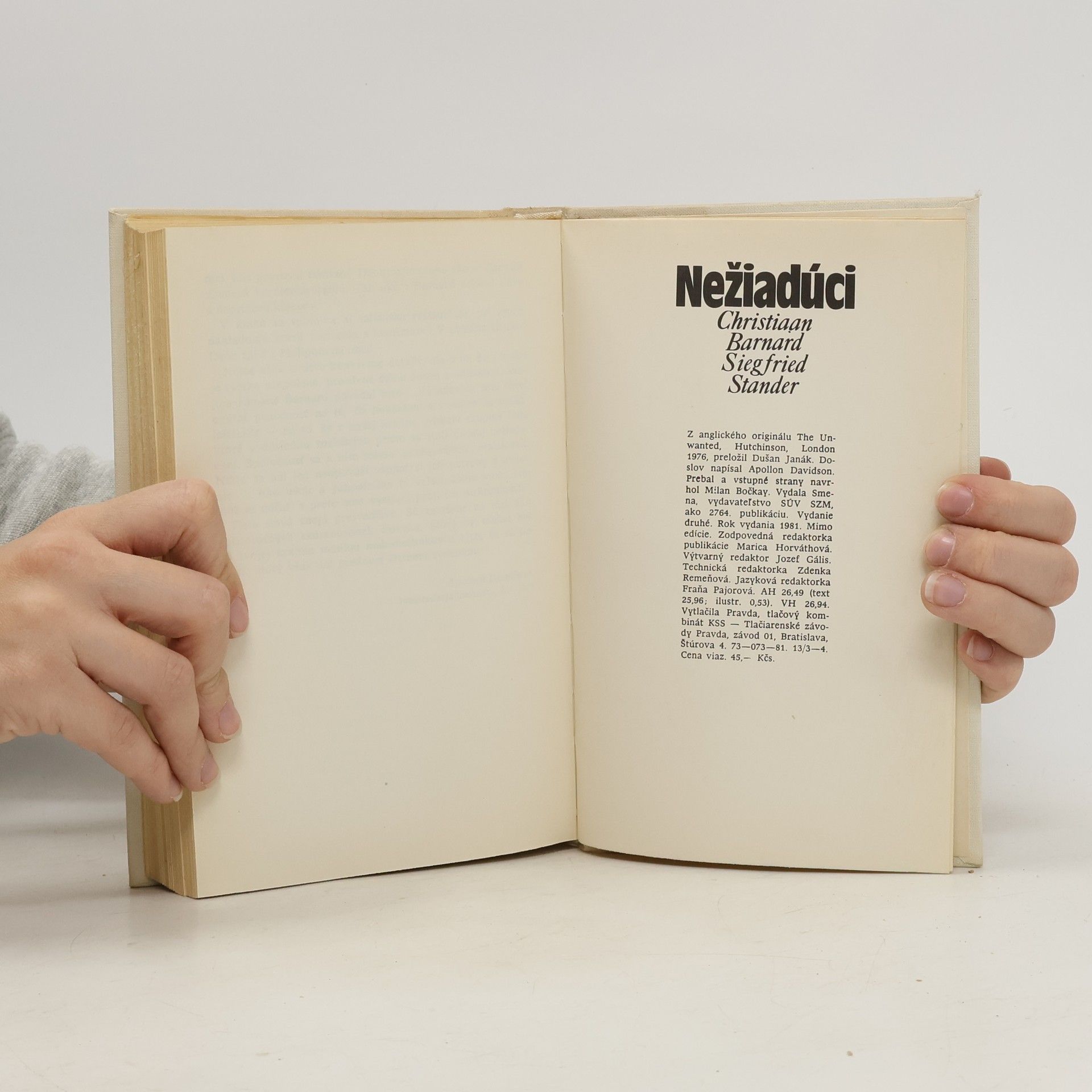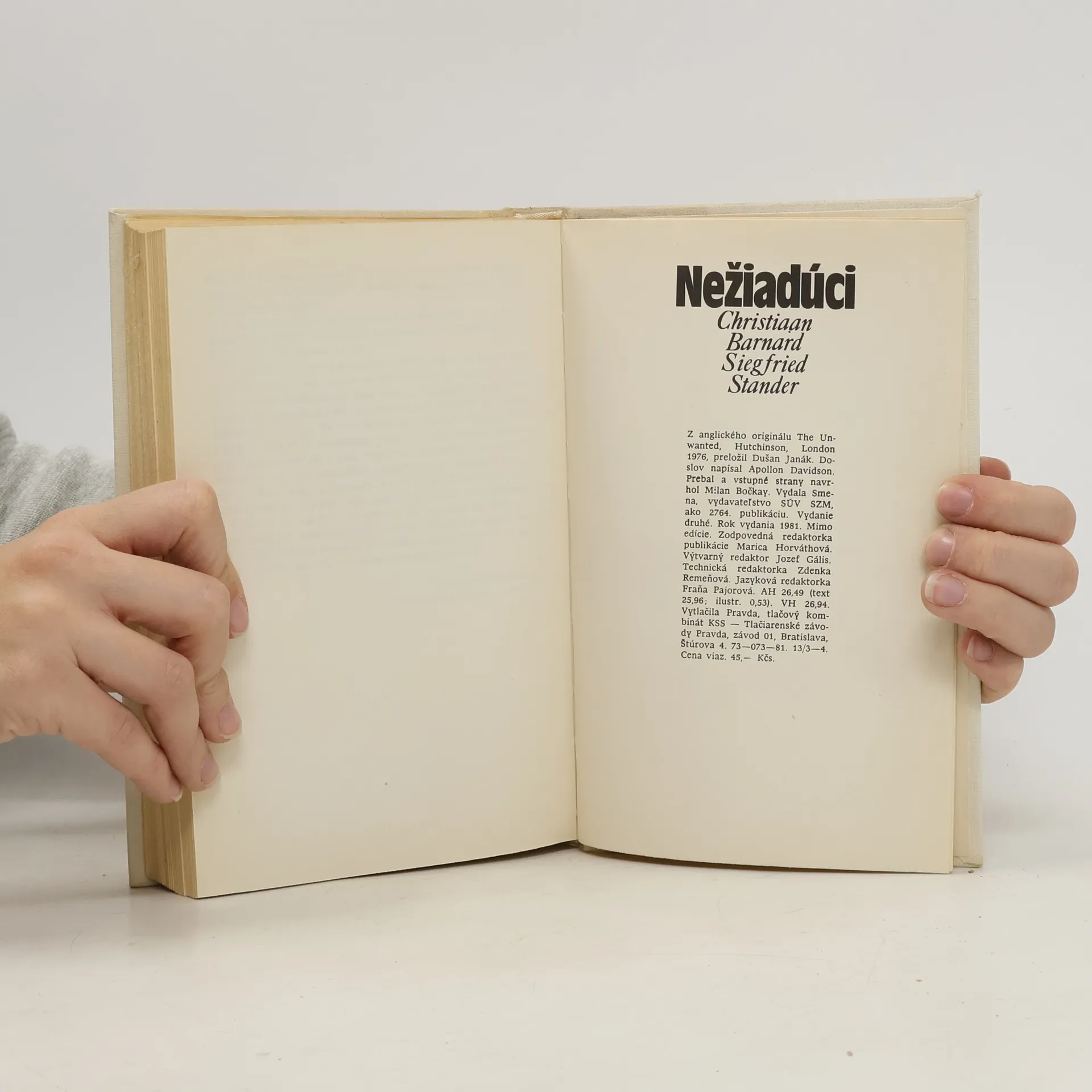 Christiaana Barnarda pozná svetová verejnosť nielen ako znamenitého chirurga, ktorý urobil prvú úspešnú transplantáciu srdca, ale aj ako smelého bojovníka proti rasovej diskriminácii v Juhoafrickej republike. Boj o záchranu ľudského života sa snúbi u tohto muža s bojom o ľudské podmienky preň. Tieto dva ciele sú tematickou osnovou románu, ktorý napísal autor spolu s úspešným novinárom a spisovateľom Siegfriedom Standerom. Dalo sa očakávať, že slávny lekár napíše román z lekárskeho prostredia. A predsa on sám nemá rád, ak spájajú jeho úspech lekára s touto knihou. Chcel by, aby sa tieto skutočnosti rozlišovali. Lenže autor Barnard by zaručene nebol napísal román Nežiadúci, keby nebol mal zároveň skúsenosti lekára Barnarda. Lebo to, čo iní autori s toľkou námahou zbierajú, je pre Barnarda jeho každodennou prácou. Čo chcel svojím románom povedať, to vložil so Siegfriedom Standerom presvedčivo a umelecky účinne do konania románových postáv. Hoci nás autori hneď na začiatku upozorňujú, že udalosti aj hlavné postavy sú vymyslené, ani celkom neskúsený čitateľ nemôže nezbadať, že v románe je veľa autobiografických prvkov. Iste má pravdu recenzent New York Book-Review, keď napísal: „Je to román plný srdca. Bude ho čítať celý svet. " A skutočne, odkedy vyšiel, podnikol víťaznú cestu okolo sveta.