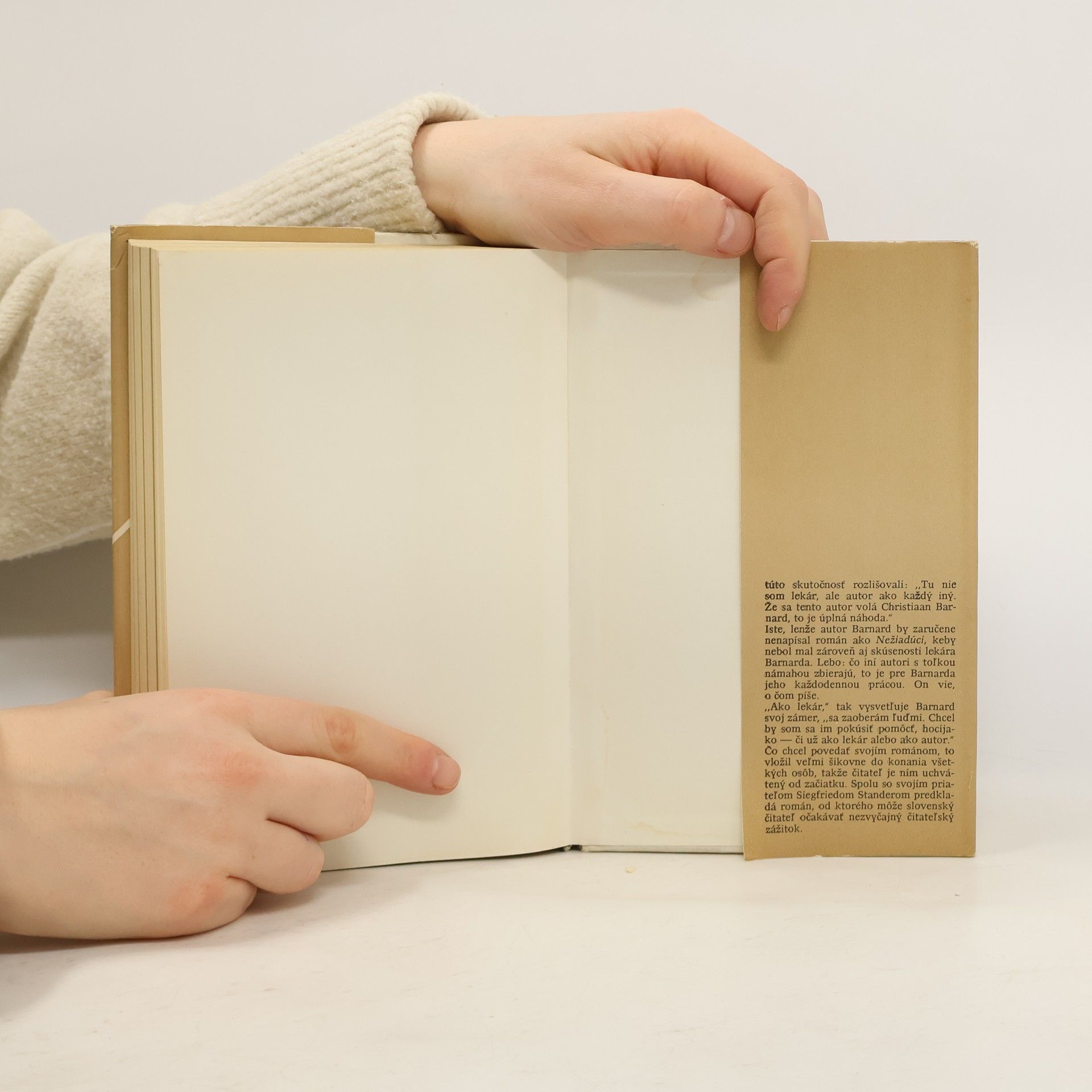 Christiaana Barnarda pozná verejnosť ako výborného chirurga, ktorý urobil prvú úspešnú transplantáciu srdca, a ako bojovníka proti rasovej diskriminácii v JAR. Boj o záchranu ľudského života a boj o ľudské podmienky pre ľudský život - to sú hlavné témy tohto románu, ktorý napísal spolu súspešným novinárom a spisovateľom Siegriedom Standerom.