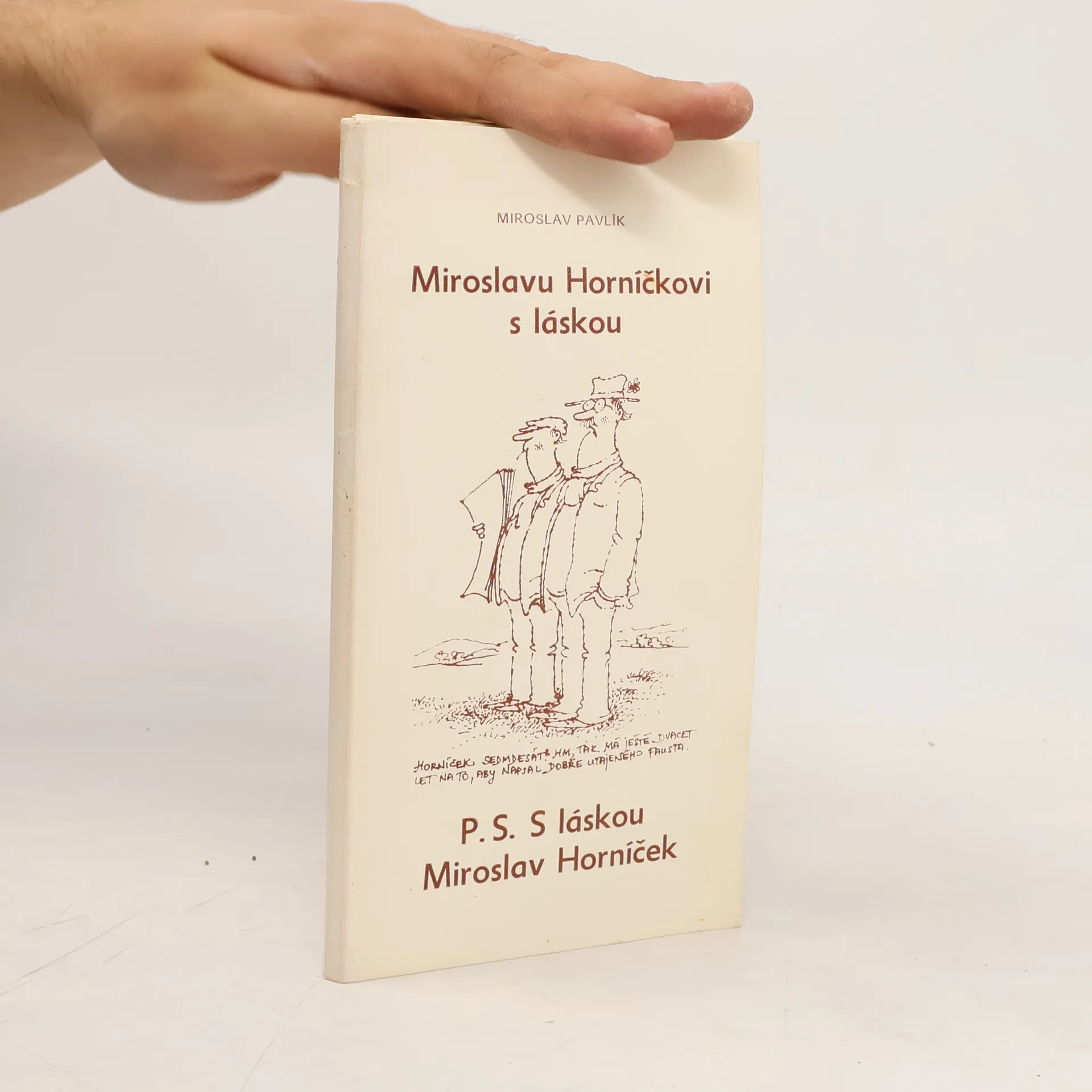 P.S. S láskou Miroslav Horníček. Sborníček dedikací různých umělců M. Horníčkovi k jeho sedmdesátinám a jeho odpovědi na ně (obsahuje příspěvky umělců jako J. Werich, J. Suchý, J. Sovák, V. Chochola, M. Kopecký, M. Lasica, L. Lipský, Fr. Nepil, B. Polívka ad.) Volné listy v přebalu.