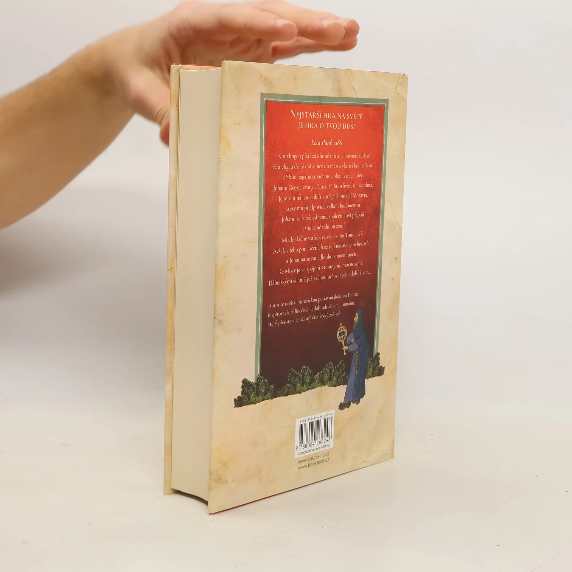 1486: Knittlingen platí za klidné místo v hornaté oblasti Kraichgau do té doby, než do města vkročí komedianti. Najednou se v okolí začnou ztrácet děti. Johann Georg, zvaný „Faustus“, Šťastlivec, to nevnímá. Jeho zajímá jen kejklíř a mág Tonio del Moravia, který mu předpovídá velkou budoucnost. Johann se připojí k záhadnému společníkovi a společně táhnou zemí. Mladík lačně vstřebává vše, co ho Tonio učí. Avšak v Toniových ponaučeních se tají netušené nebezpečí a Johanna se brzy zmocní pocit, že jeho Mistr je ve spojení s temnými mocnostmi. Silami, které začnou určovat jeho další život… Oliver Pötzsch, autor bestsellerové série o Katově dceři, se nechal historickou postavou doktora Fausta inspirovat k jedinečnému dobrodružnému románu, který představuje úžasný čtenářský zážitek.