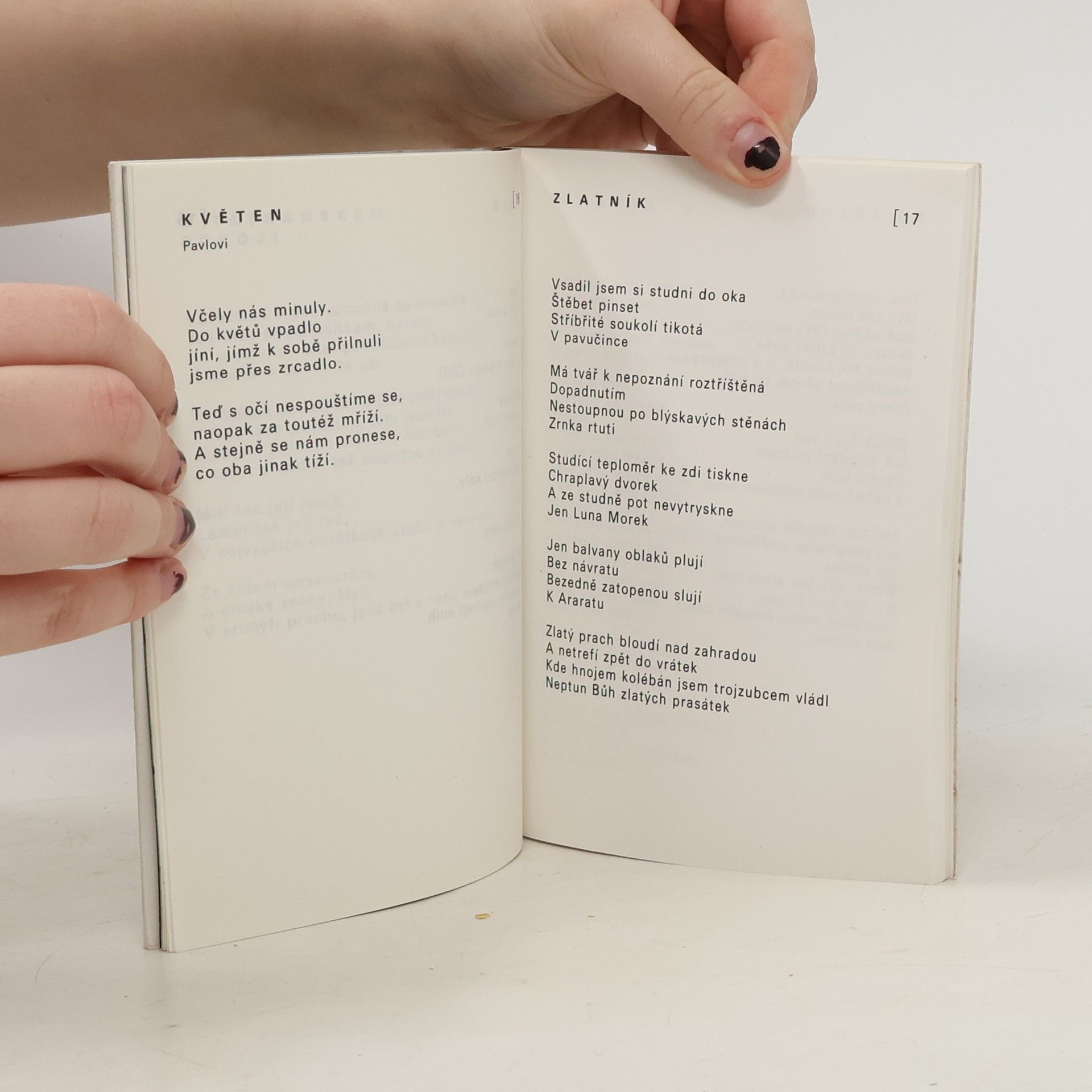 V prvním odd. Slaměnky, přináší intimní a reflexivní lyriku, v níž udivuje jeho práce s klasickým veršem, v odd. Solné sloupy se pak zamýšlí nad některými architektonickými či kulturními dominantami, které naplňují určité životní hodnoty soudobé civilizace. Závěrečný odd. Konec prázdnin - je nelítostnou a hořkou kritikou invaze v srpnu 1968, která ústí v emigraci kulturní elity národa. 30.11.1992 Šink.