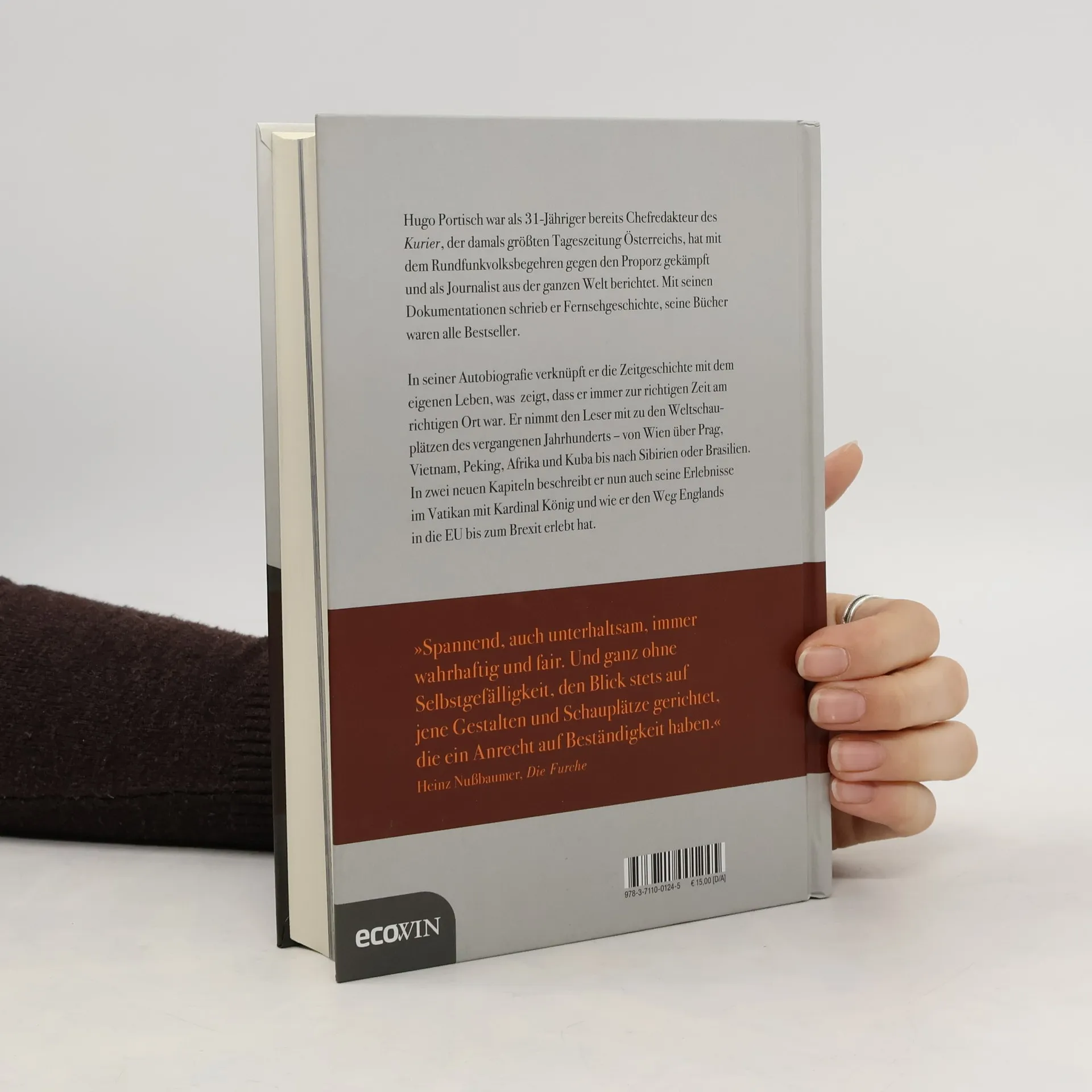 Hugo Portisch war als 31-Jähriger bereits Chefredakteur des Kurier, der damals größten Tageszeitung Österreichs, hat mit dem Rundfunkvolksbegehren gegen den Proporz gekämpft und als Journalist aus der ganzen Welt berichtet. Mit seinen Dokumentationen schrieb er Fernsehgeschichte, seine Bücher waren alle Bestseller. In seiner Autobiografie verknüpft er die Zeitgeschichte mit dem eigenen Leben, was zeigt, dass er immer zur richtigen Zeit am richtigen Ort war. Er nimmt den Leser mit zu den Weltschauplätzen des vergangenen Jahrhunderts – von Wien über Prag, Vietnam, Peking, Afrika und Kuba bis nach Sibirien oder Brasilien. In zwei neuen Kapiteln beschreibt er nun auch seine Erlebnisse im Vatikan mit Kardinal König und wie er den Weg Englands in die EU bis zum Brexit erlebt hat. »Spannend, auch unterhaltsam, immer wahrhaftig und fair. Und ganz ohne Selbstgefälligkeit, den Blick stets auf jene Gestalten und Schauplätze gerichtet, die ein Anrecht auf Beständigkeit haben.« Heinz Nußbaumer, Die Furche