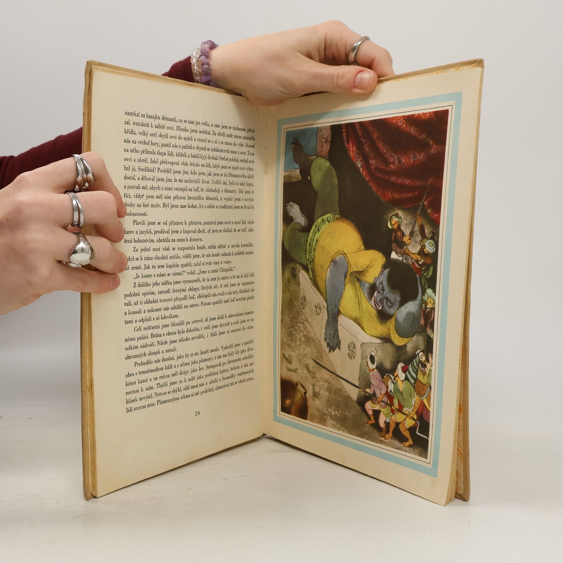 Výbor sedmi nejhezčích pohádek z Tisíce a jedné noci (Pohádka o ebenovém koni, Dobrodružství Sindibáda Námořníka, Pohádka o Džaudarovi a jeho bratrech, Alí Baba a čtyřicet loupežníků, Pohádka o Abdalláhovi Zemském a Abdalláhovi Mořském, Pohádka o Abú Kírovi a Abú Sírovi, Aládín akouzelná lampa). V bohaté fantazii probíhají rušné děje plné překvapivosti, vyjadřující dávné touhy prostých lidí po šťastném životě bez bídy a zla. Básník uvádí výbor půvabnou veršovanou pohádkou o Chytré Šahrazád a malíř vytvořil řadu působivých pohádkových ilustrací, plných barvité cizokrajnosti.