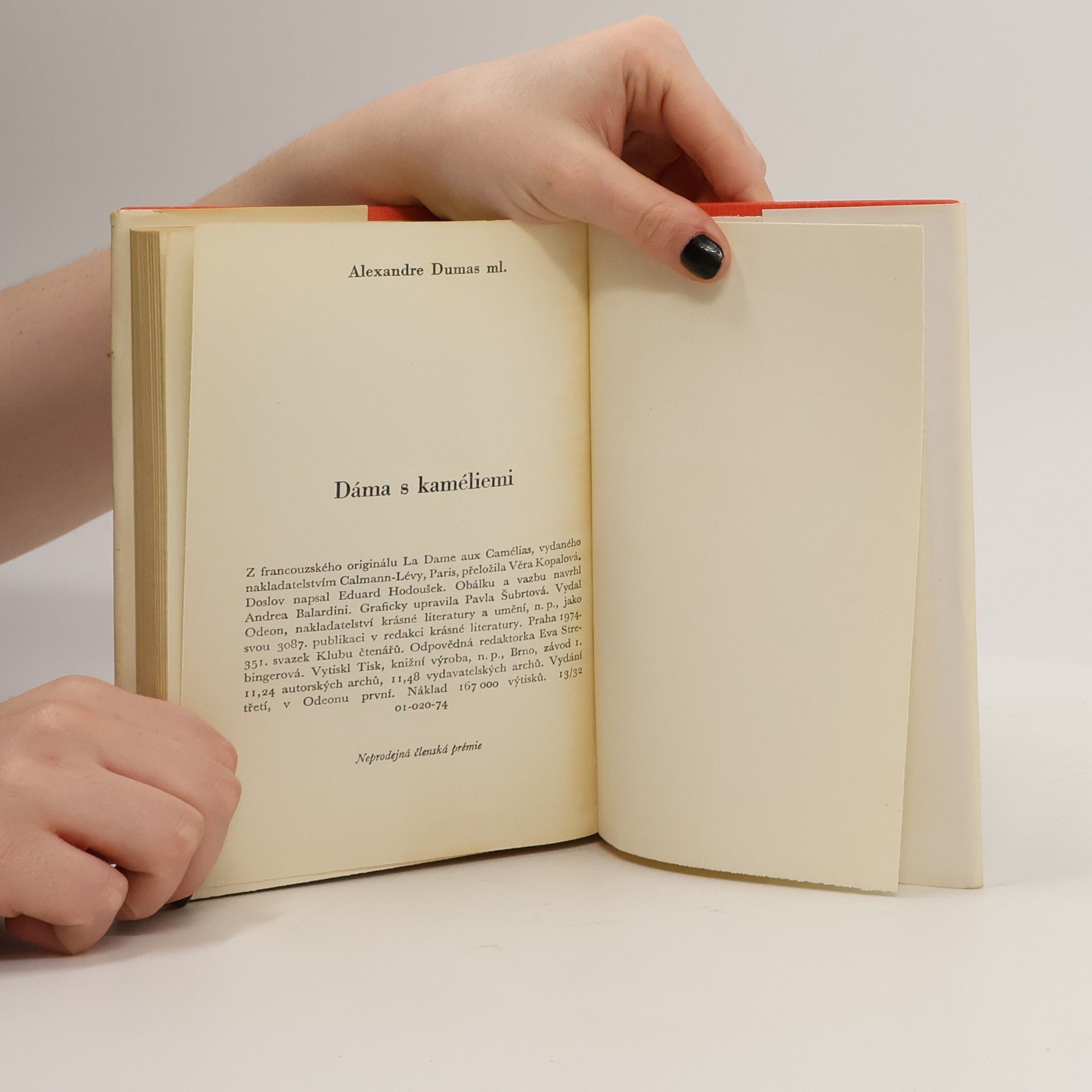 Román o velké lásce a oběti slavné pařížské kurtizány; v zdramatizované podobě se stal jedním z nejdojímavějších divadelních zážitků v 19. století. Slovník světových literárních děl (1988, Odeon)